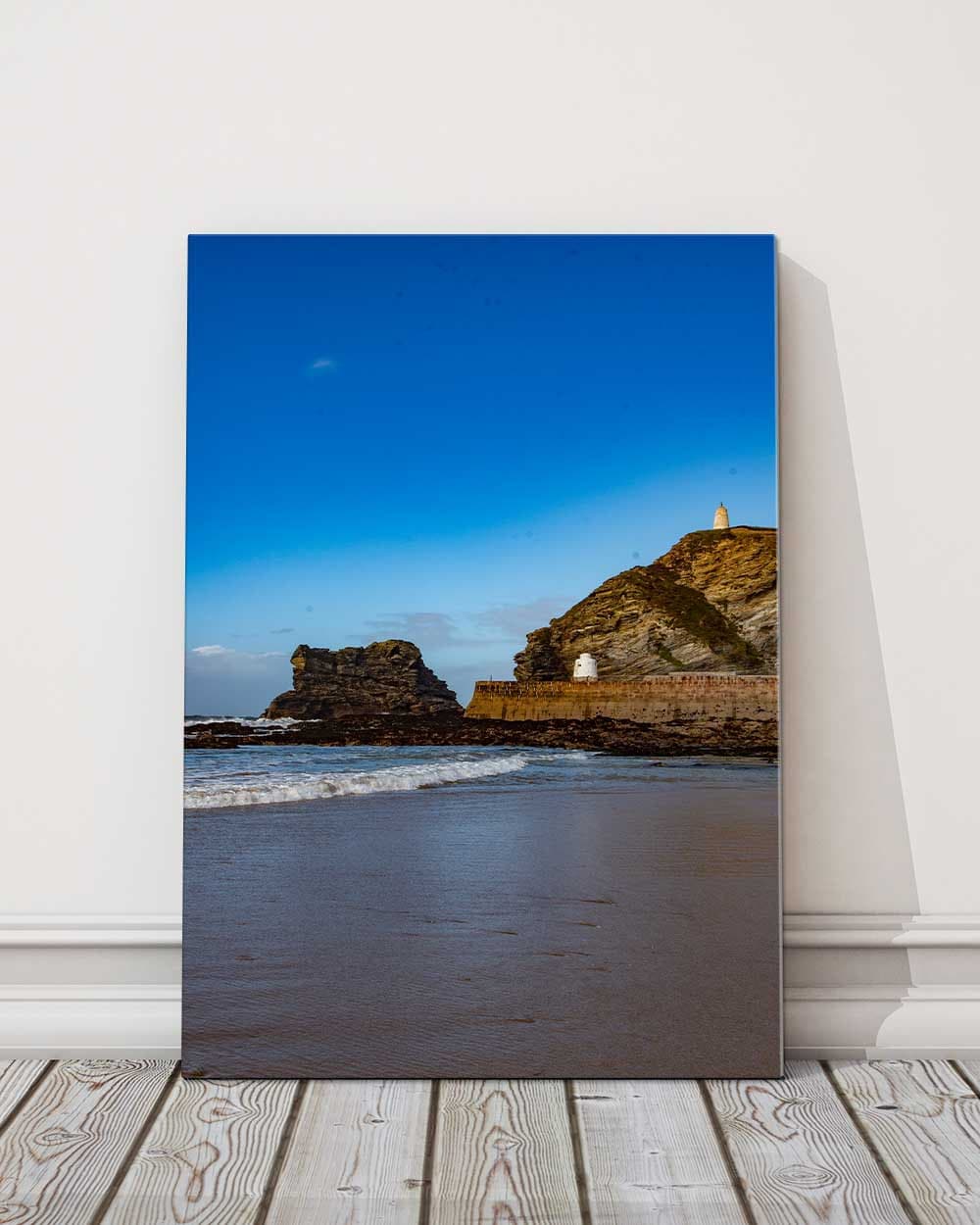 Portreath Beach harbour wall, Cornwall. Canvas picture print stretcher frame