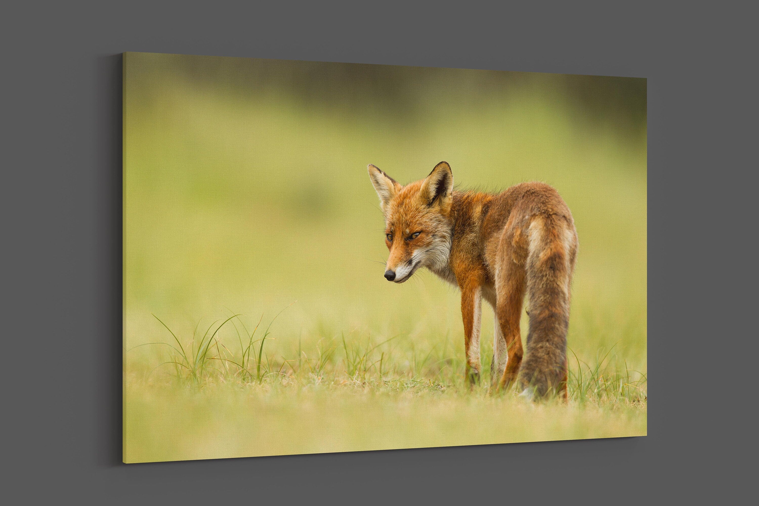 Red fox walking in grass canvas picture print