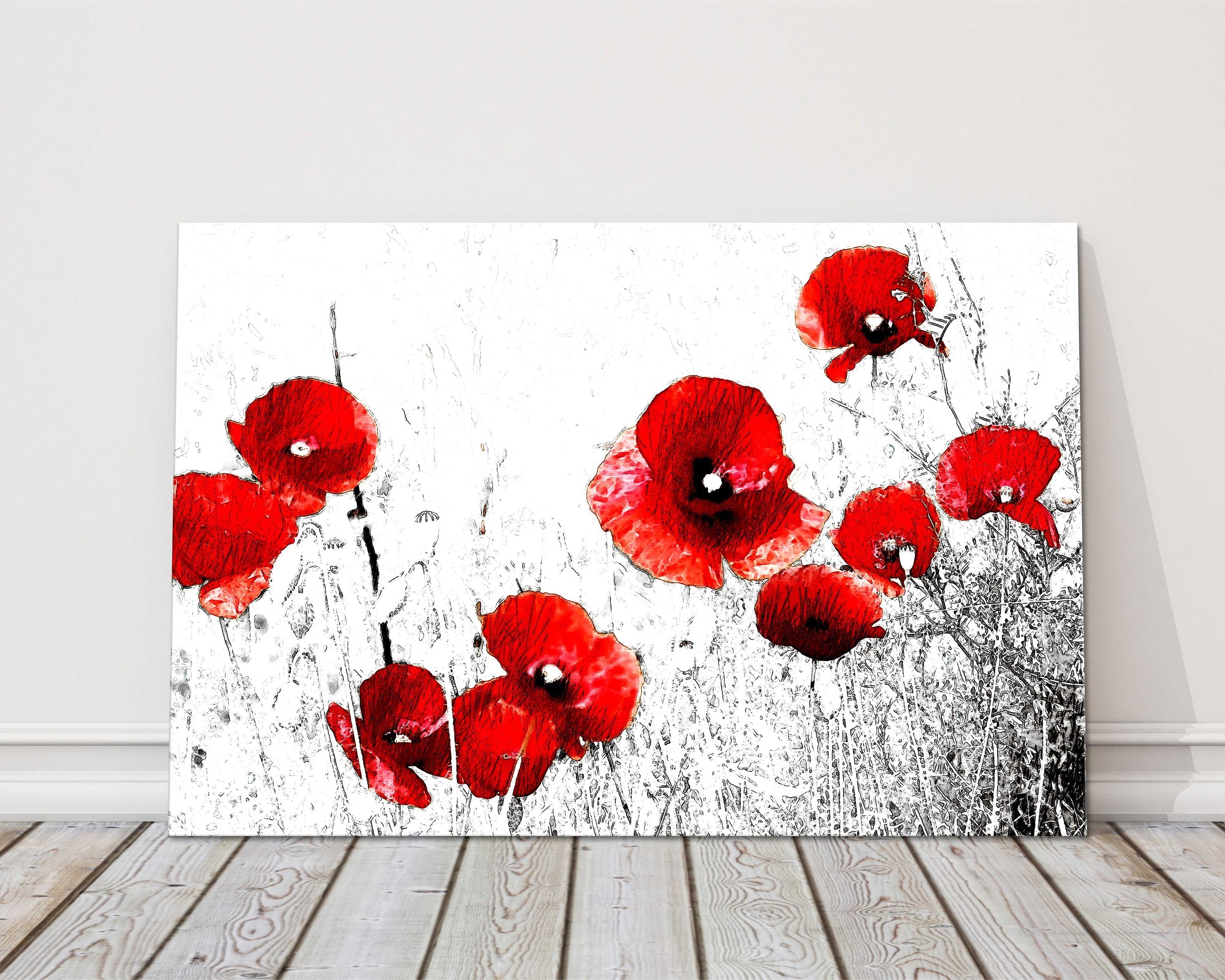 Red poppies sketch artwork. Colour splash of poppy petals on a grey and white background. Striking image, Printed and framed... Read more
