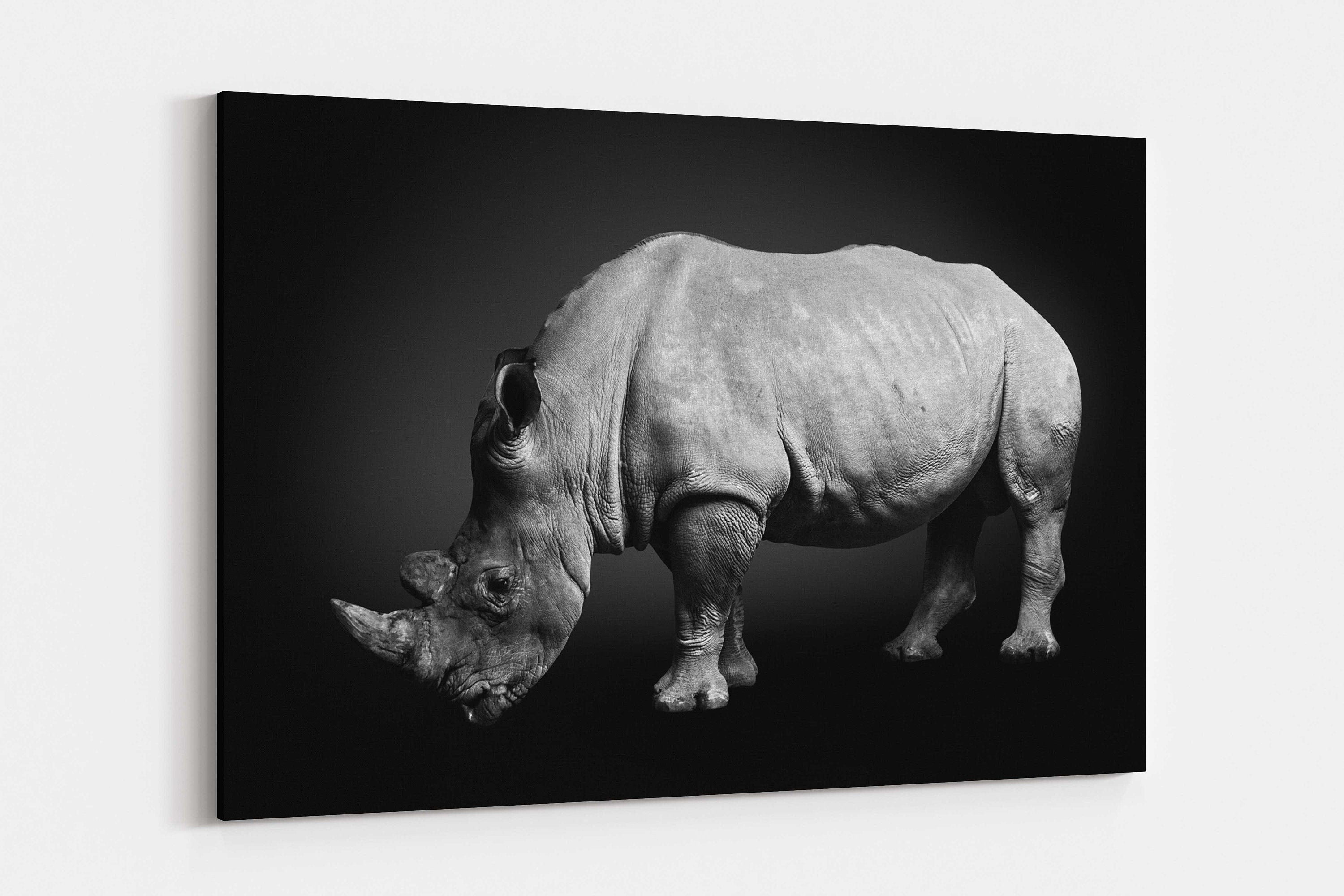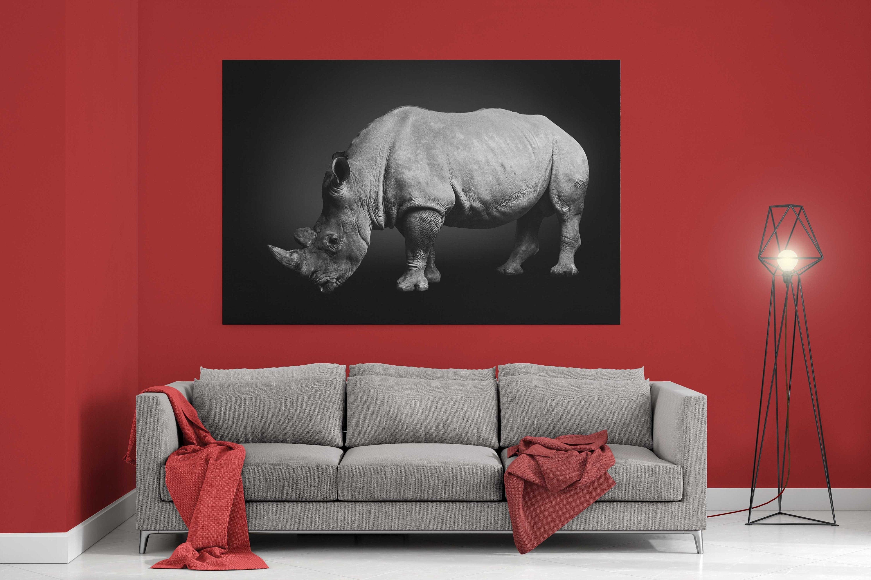 White rhinoceros on a black background. Striking wildlife image. Wall art. A choice of sizes available.
