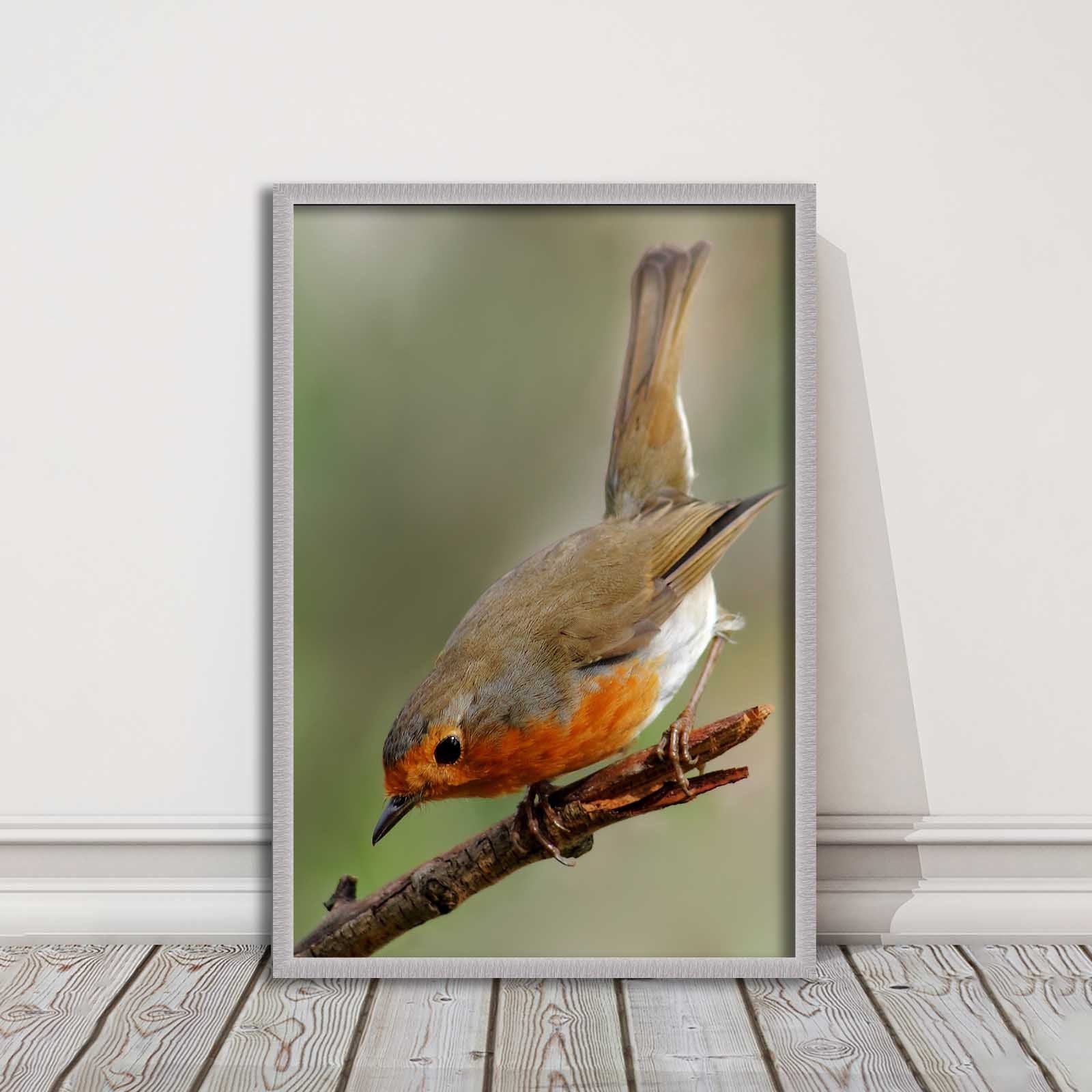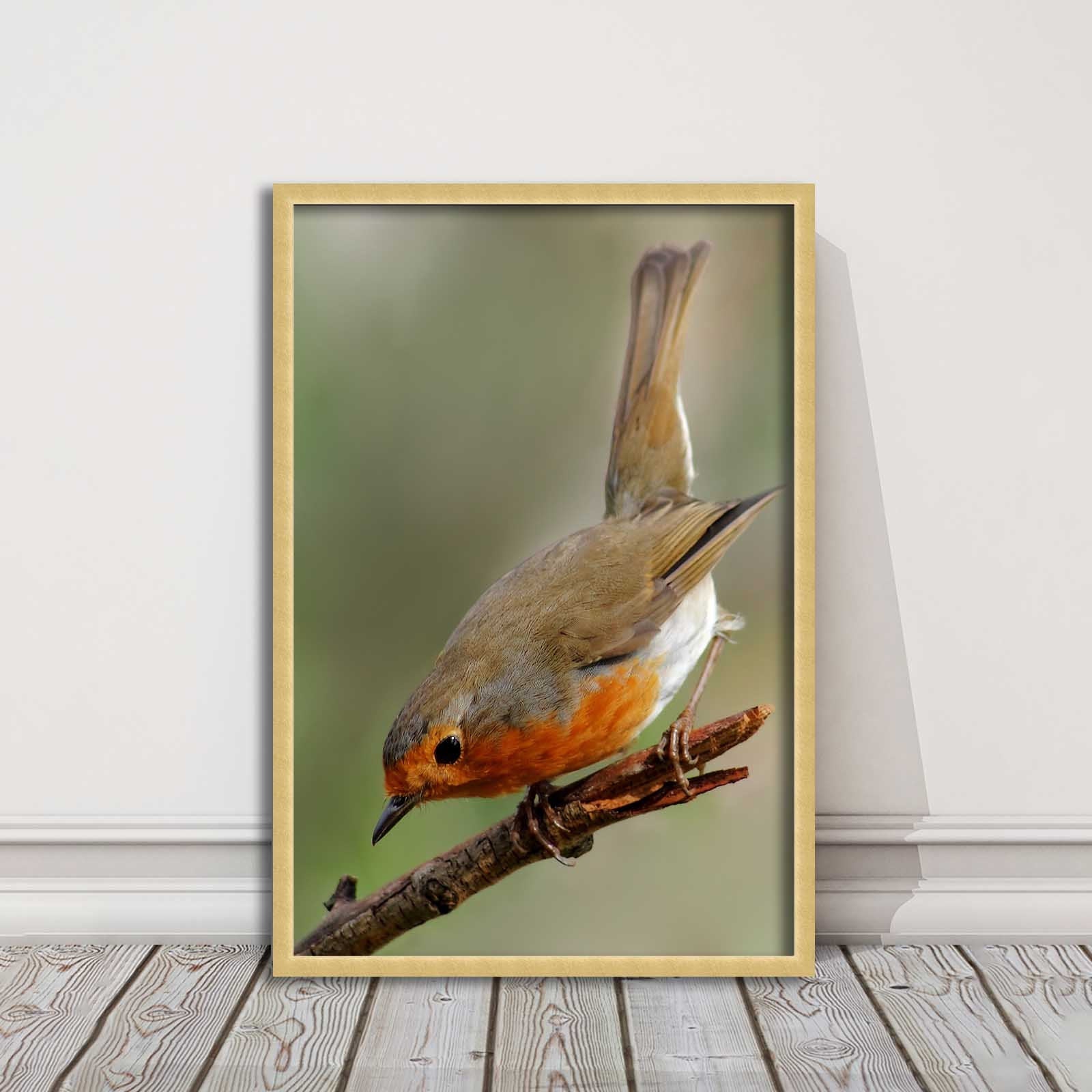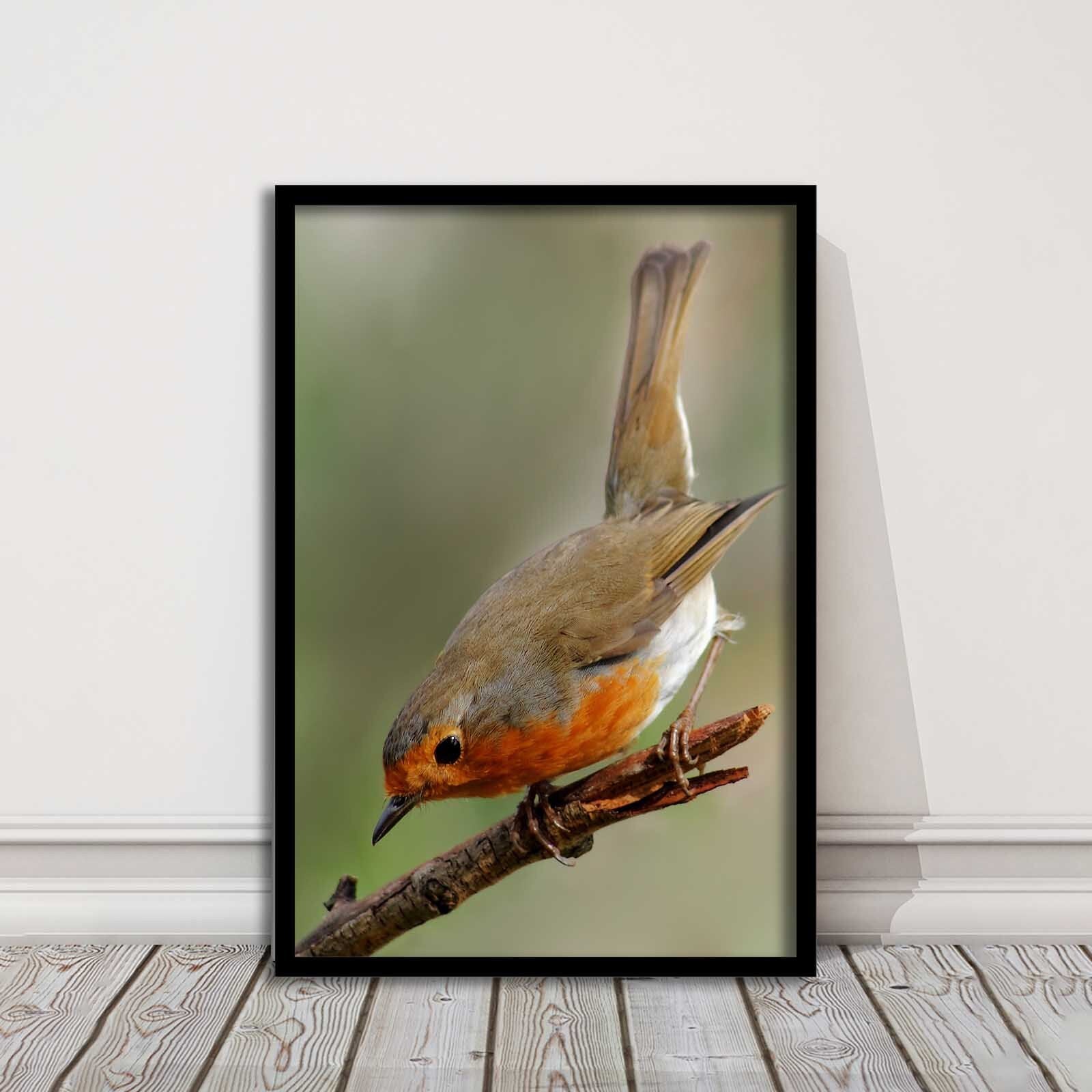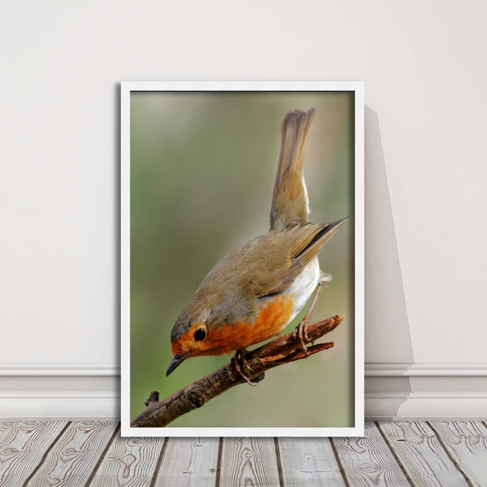 Robin photograph. Printed framed picture. Wildlife image. Birds. A choice of frame styles and borders.