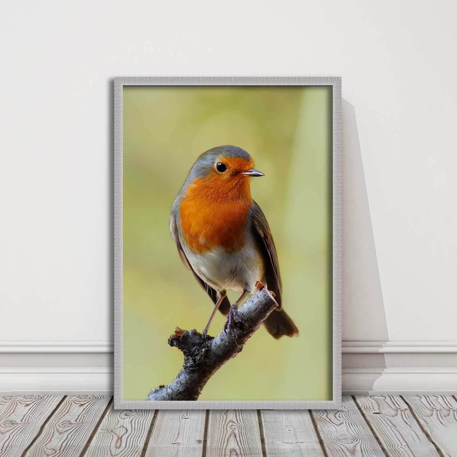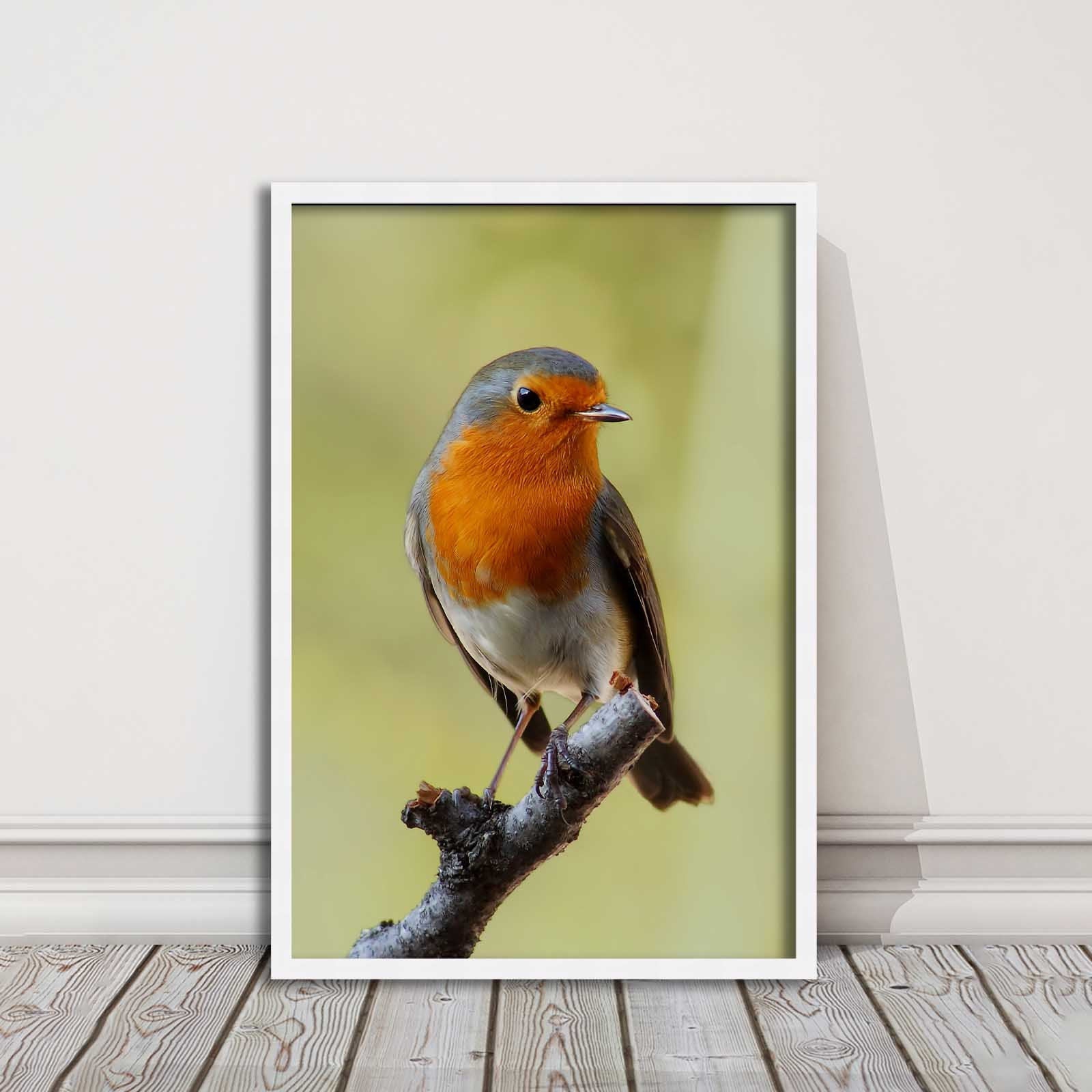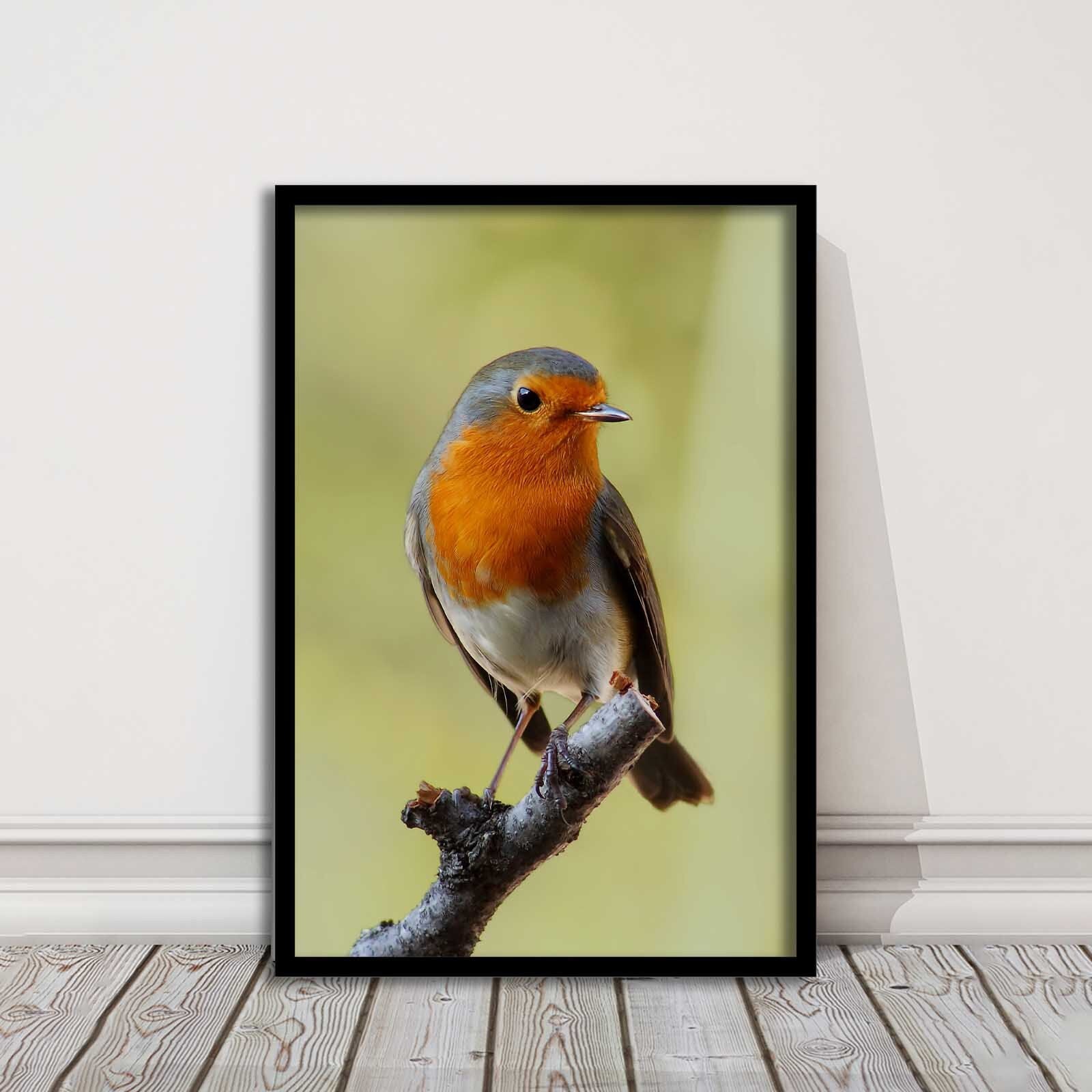 Robin photograph. Printed framed picture. Wildlife image. Birds. A choice of frame styles and borders.