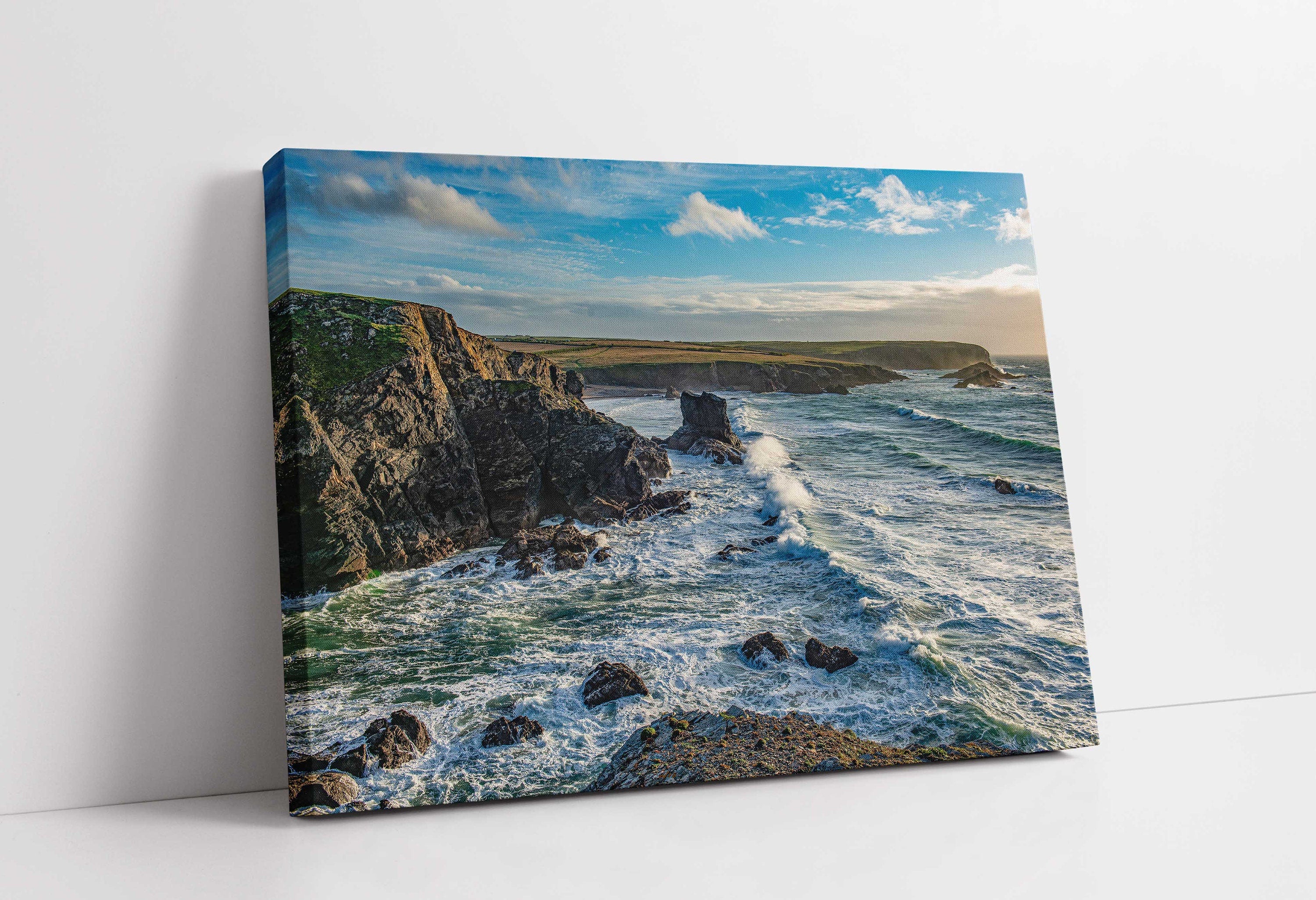 A beautiful landscape of the rugged Cornish coastline. Canvas picture print, North Cornwall. Stunning picture taken from the clifftops, capturing the scenery of the coast.