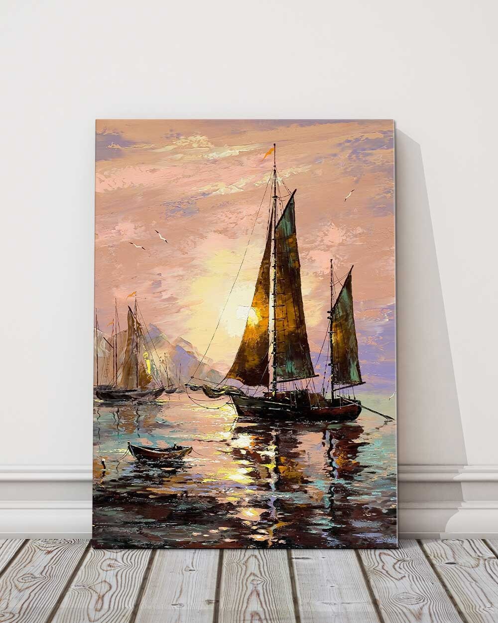 Sailing boats in the sunset. Watercolour painting canvas picture print