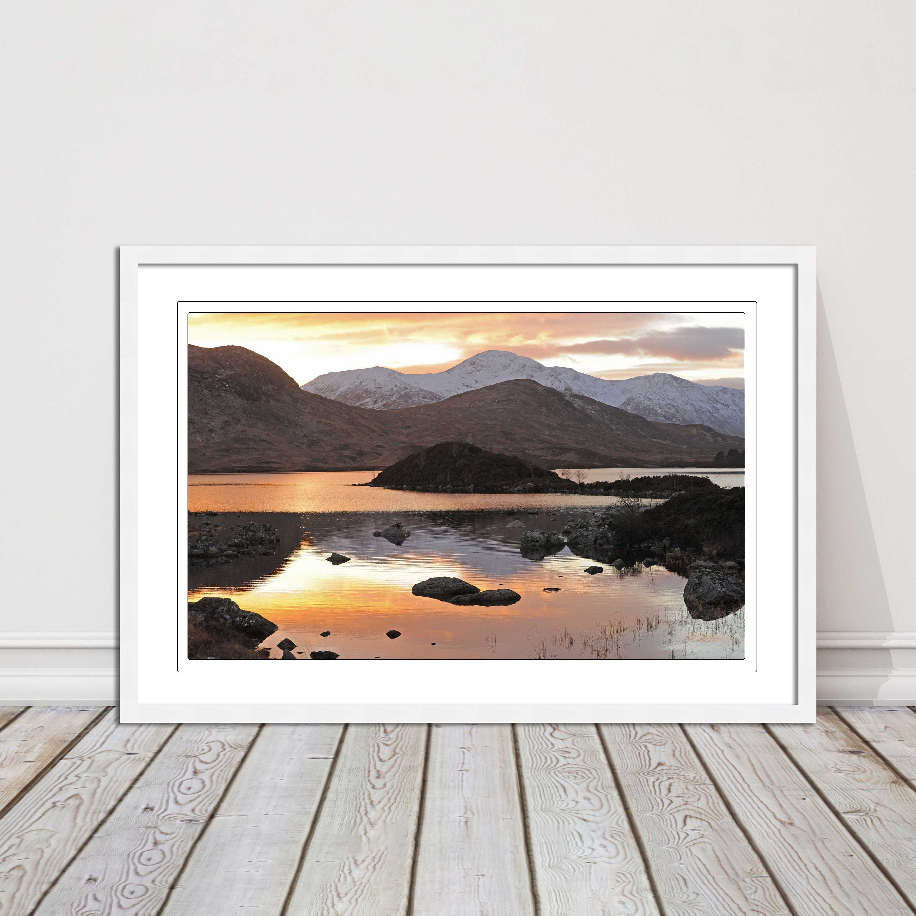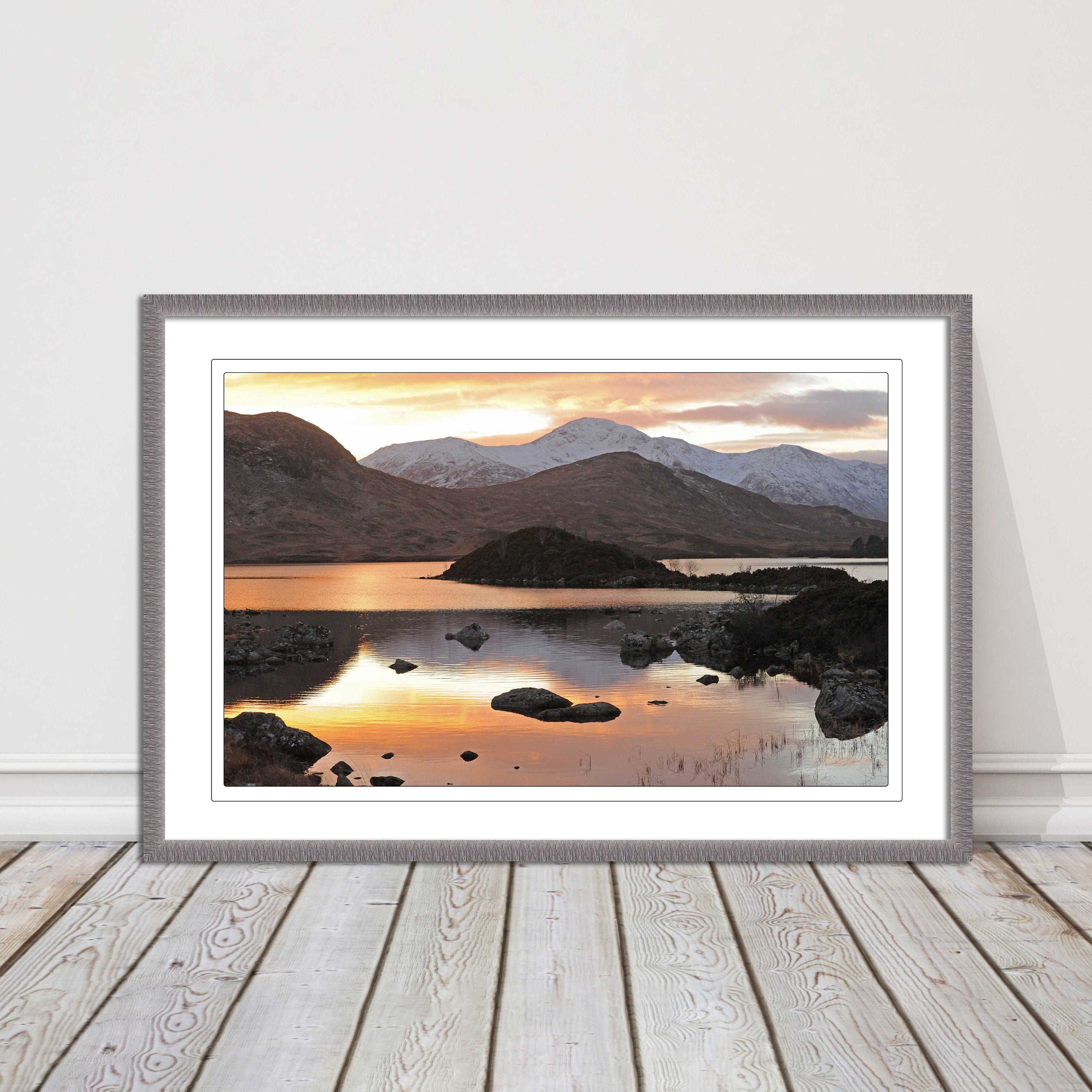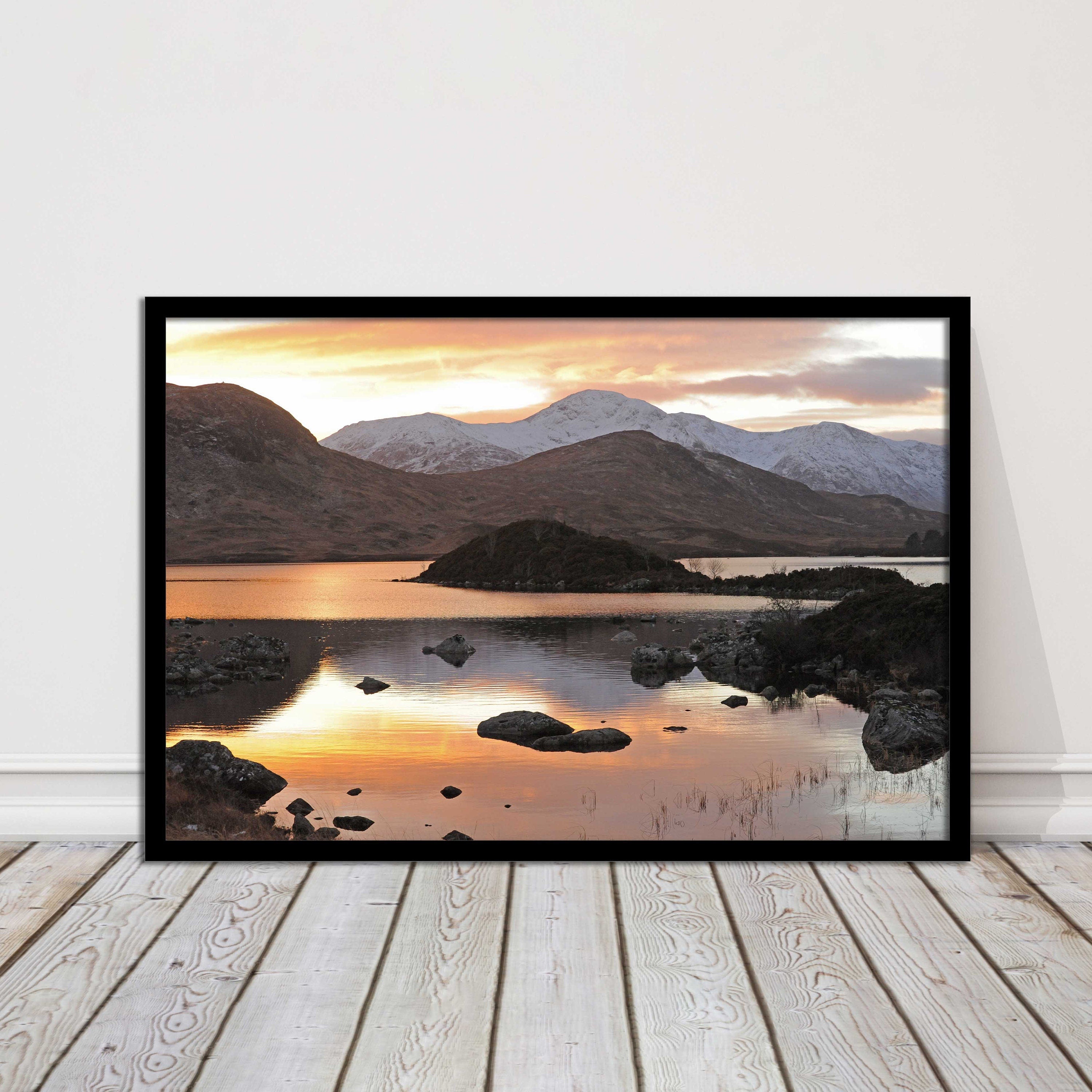 Scottish Highlands sunset. Rannoch Moor, near Loch Lomond. Framed picture print with a choice of frame colours. Beautiful landscape.