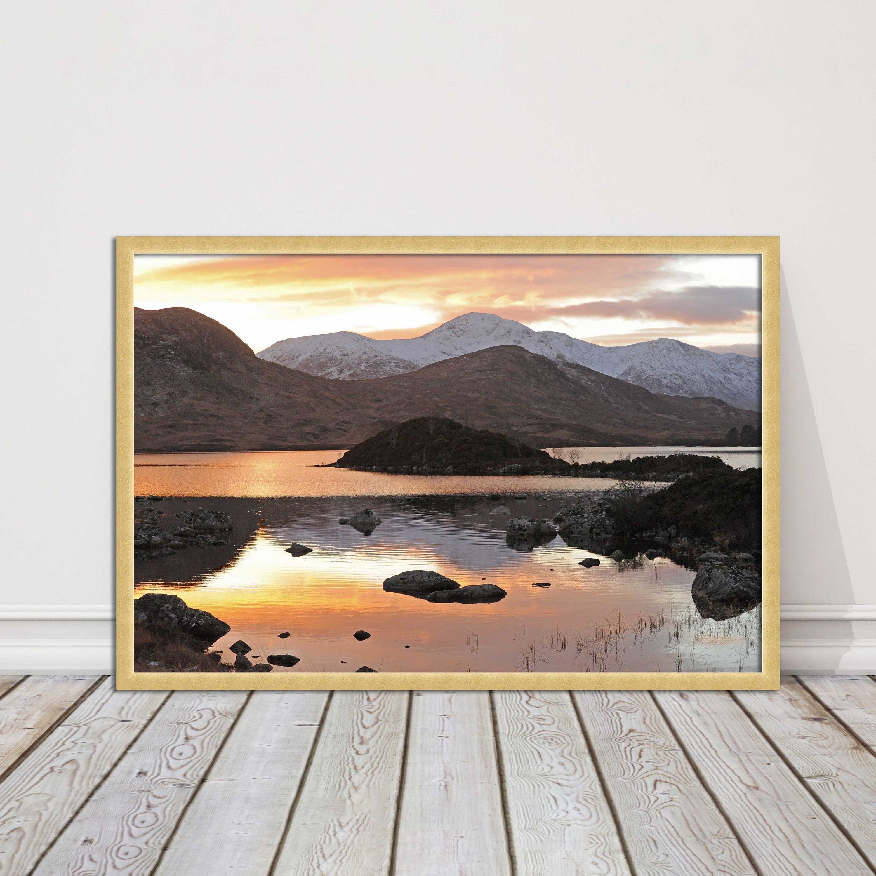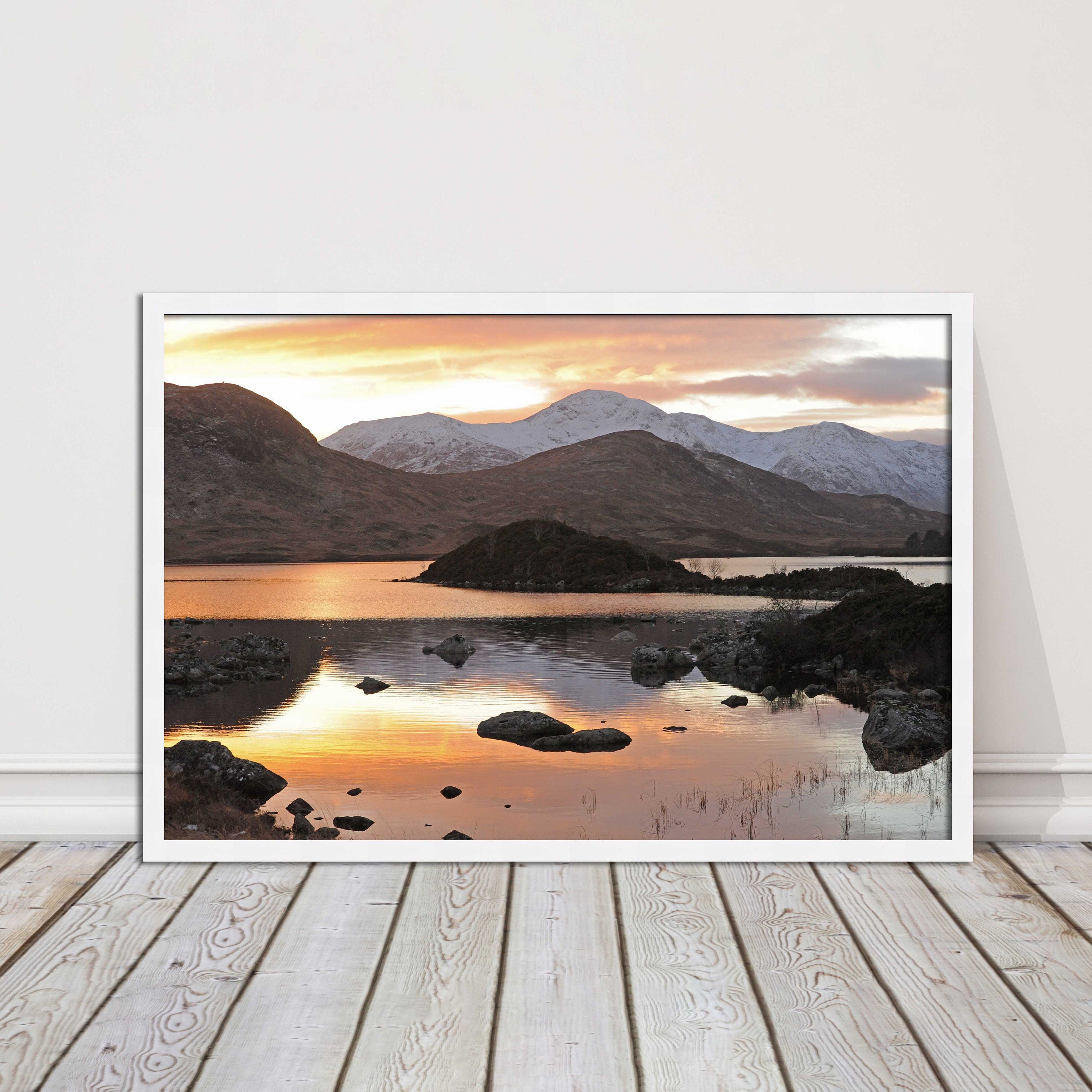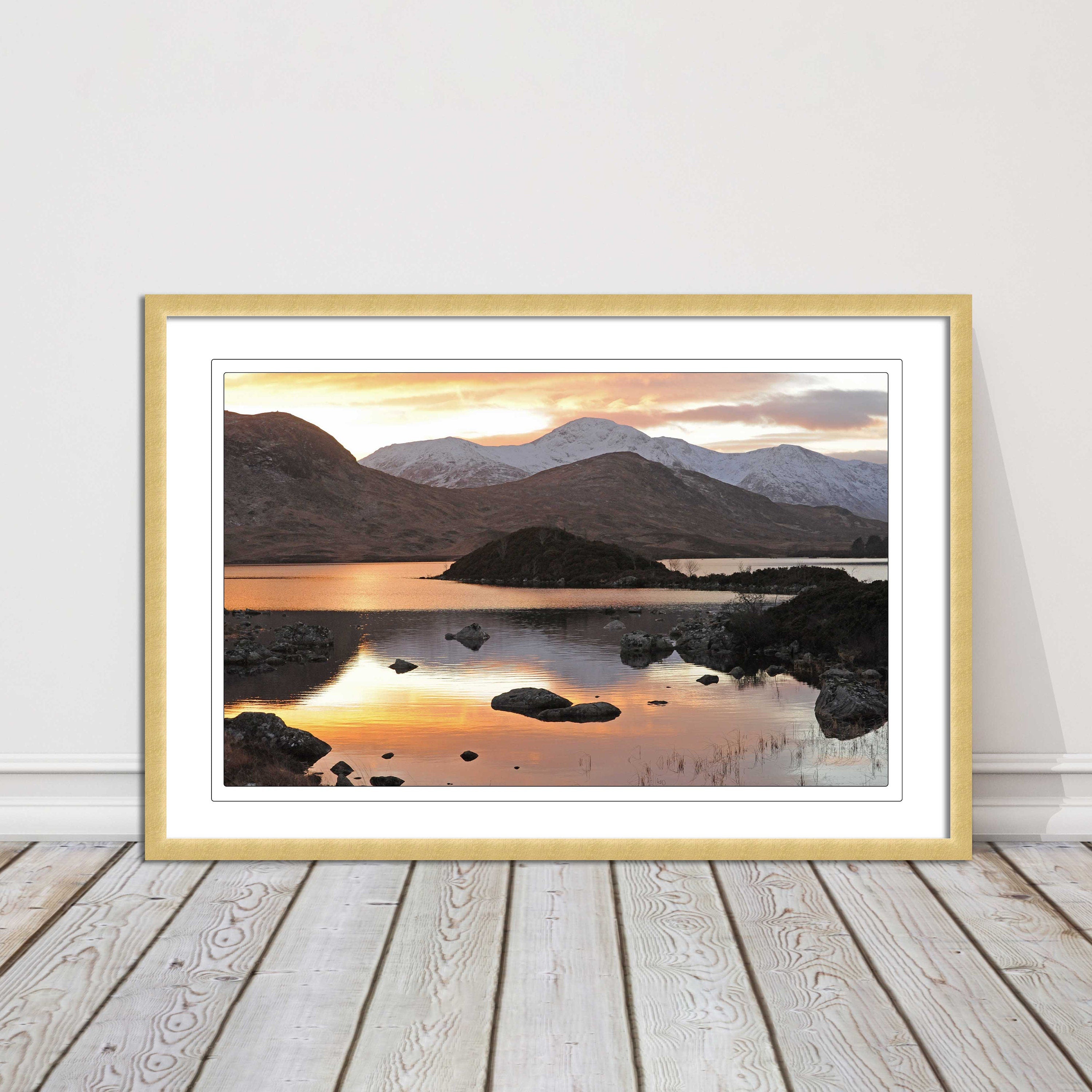 Scottish Highlands sunset. Rannoch Moor, near Loch Lomond. Framed picture print with a choice of frame colours. Beautiful landscape.