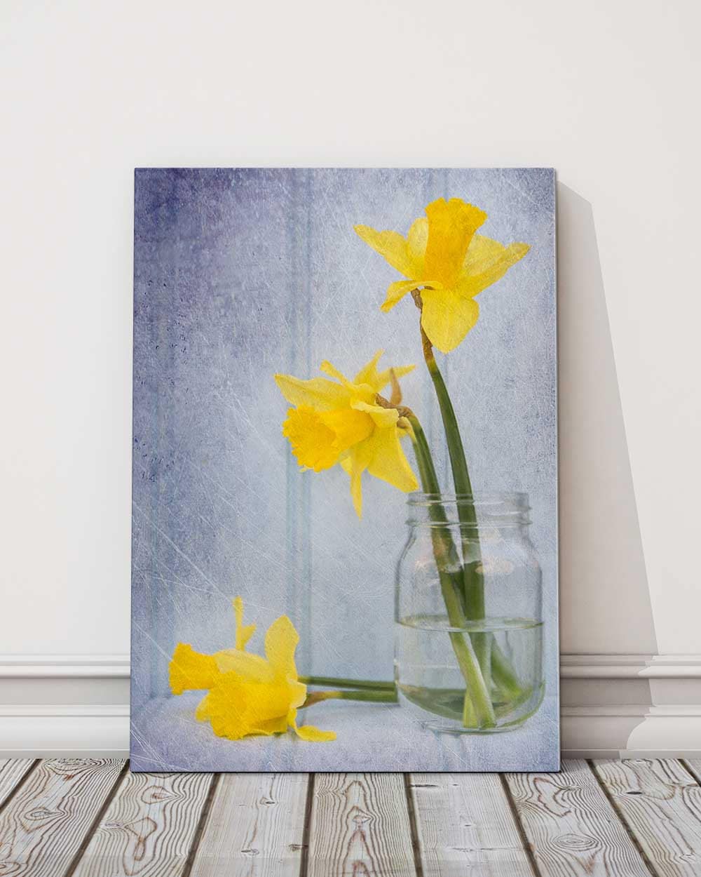 Spring Daffodils. Printed and framed as a canvas picture print. A range of sizes available. Colourful wall art for the home.