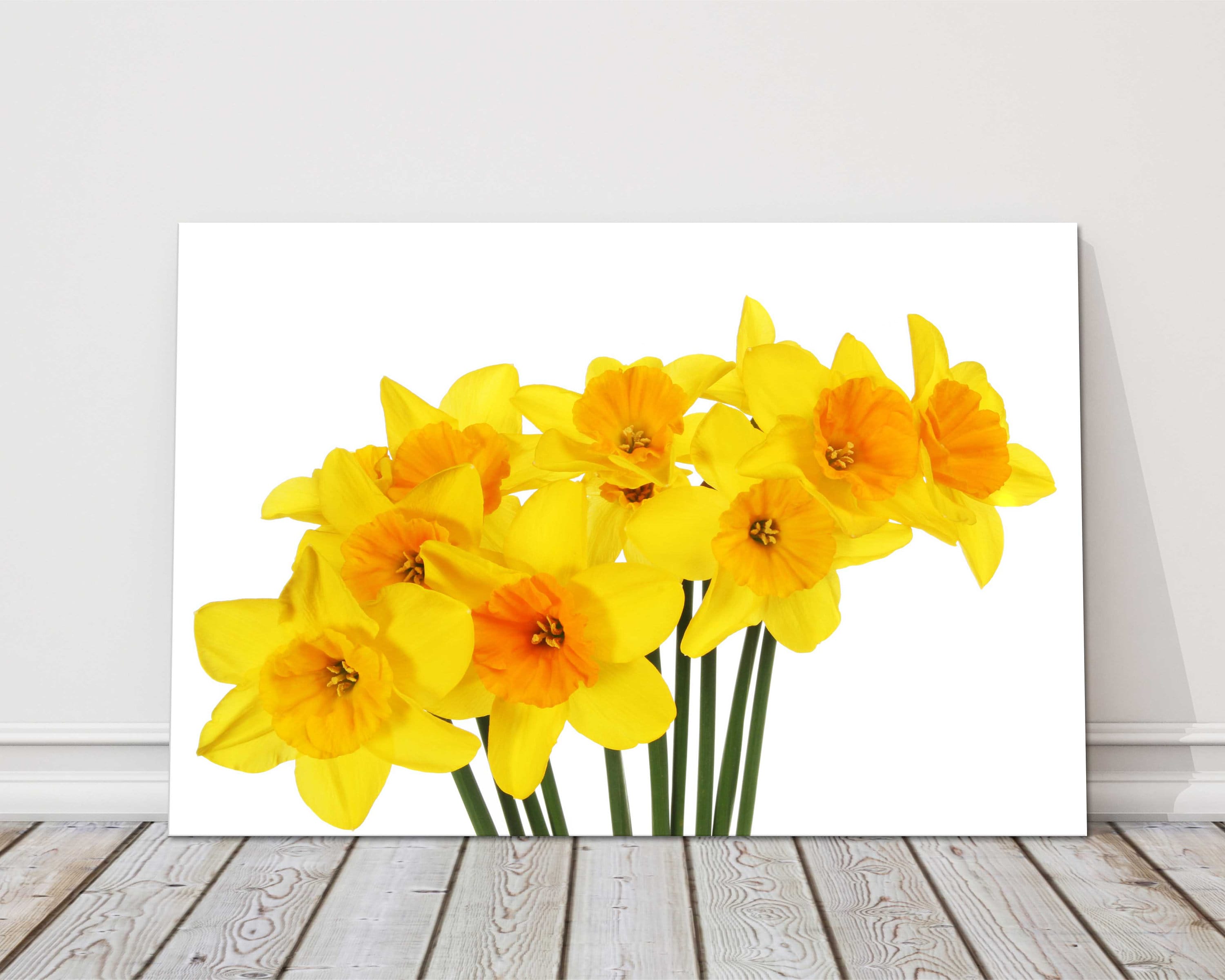Spring Daffodils, on a white background.bright yellow canvas picture print