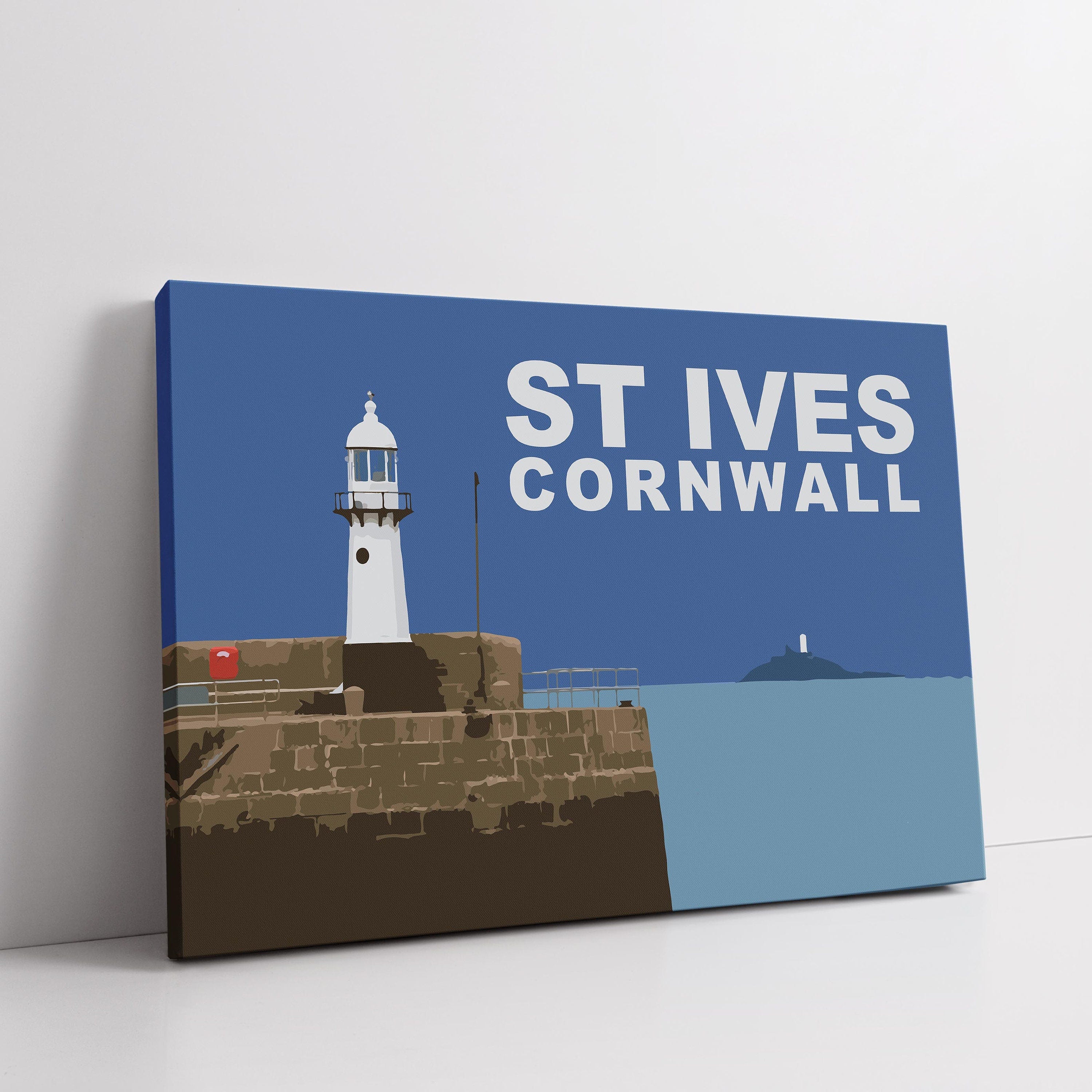 St Ives lighthouse and harbour, Cornwall. Simple design canvas picture print