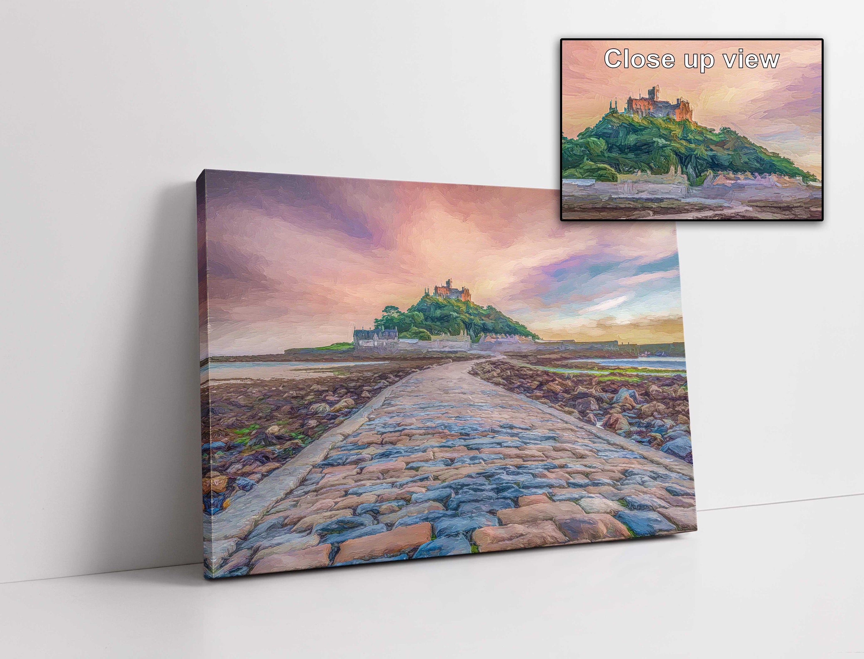 St Michaels Mount Painting effect, Cornwall. Canvas Print. Wall décor.