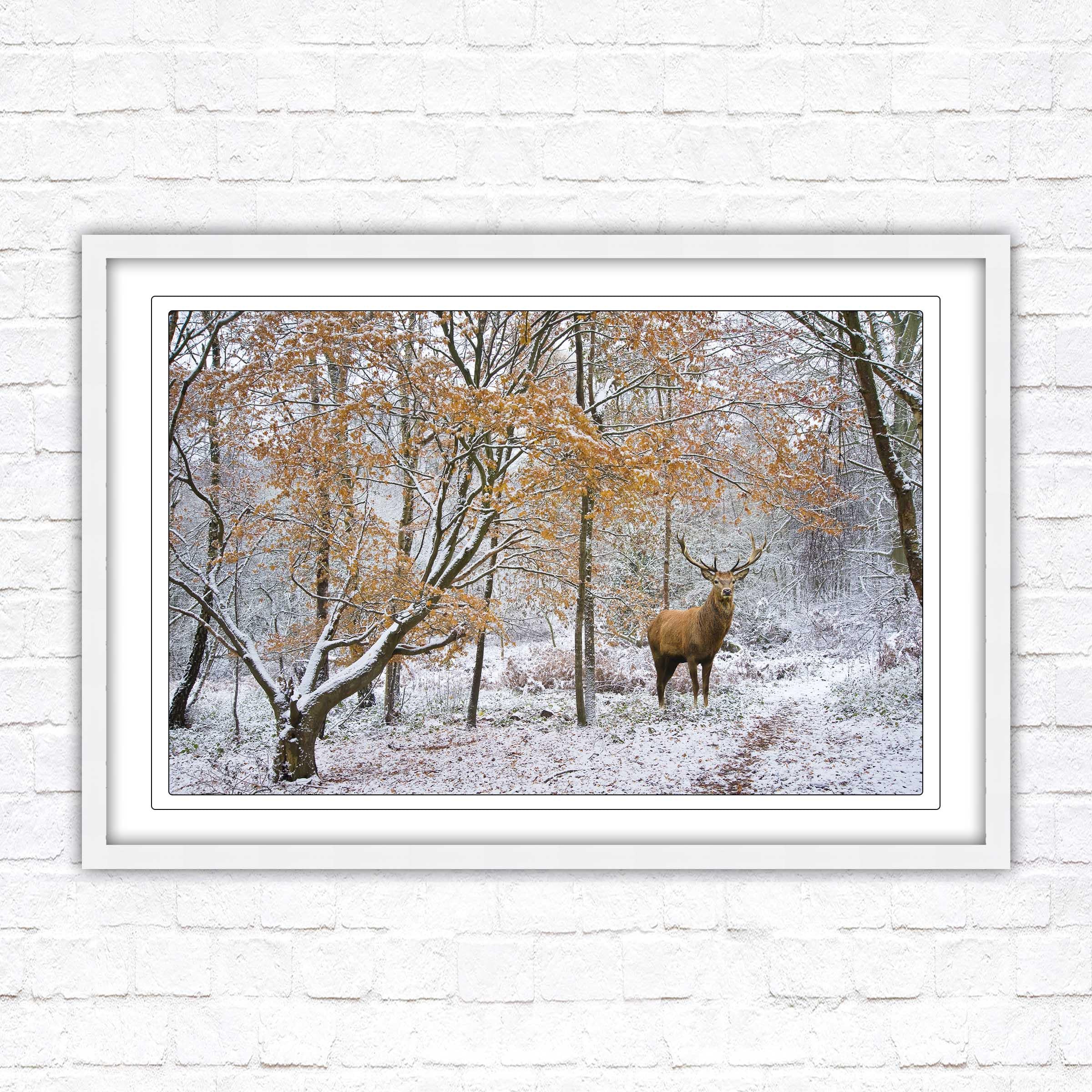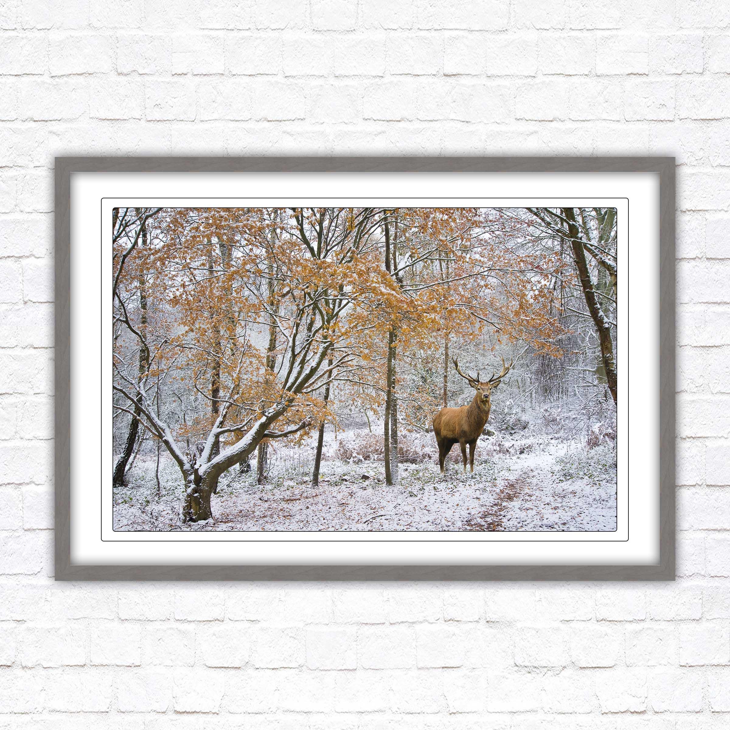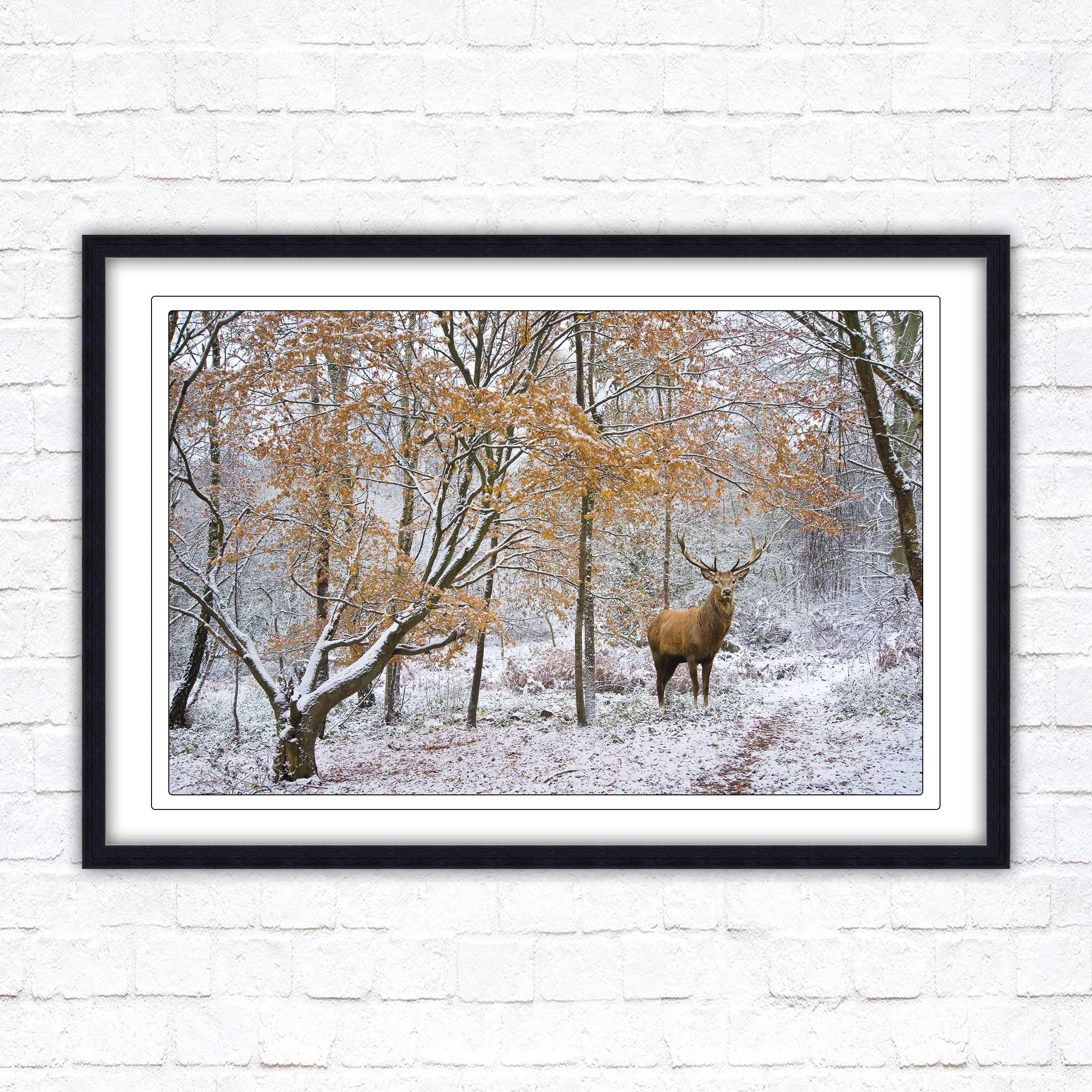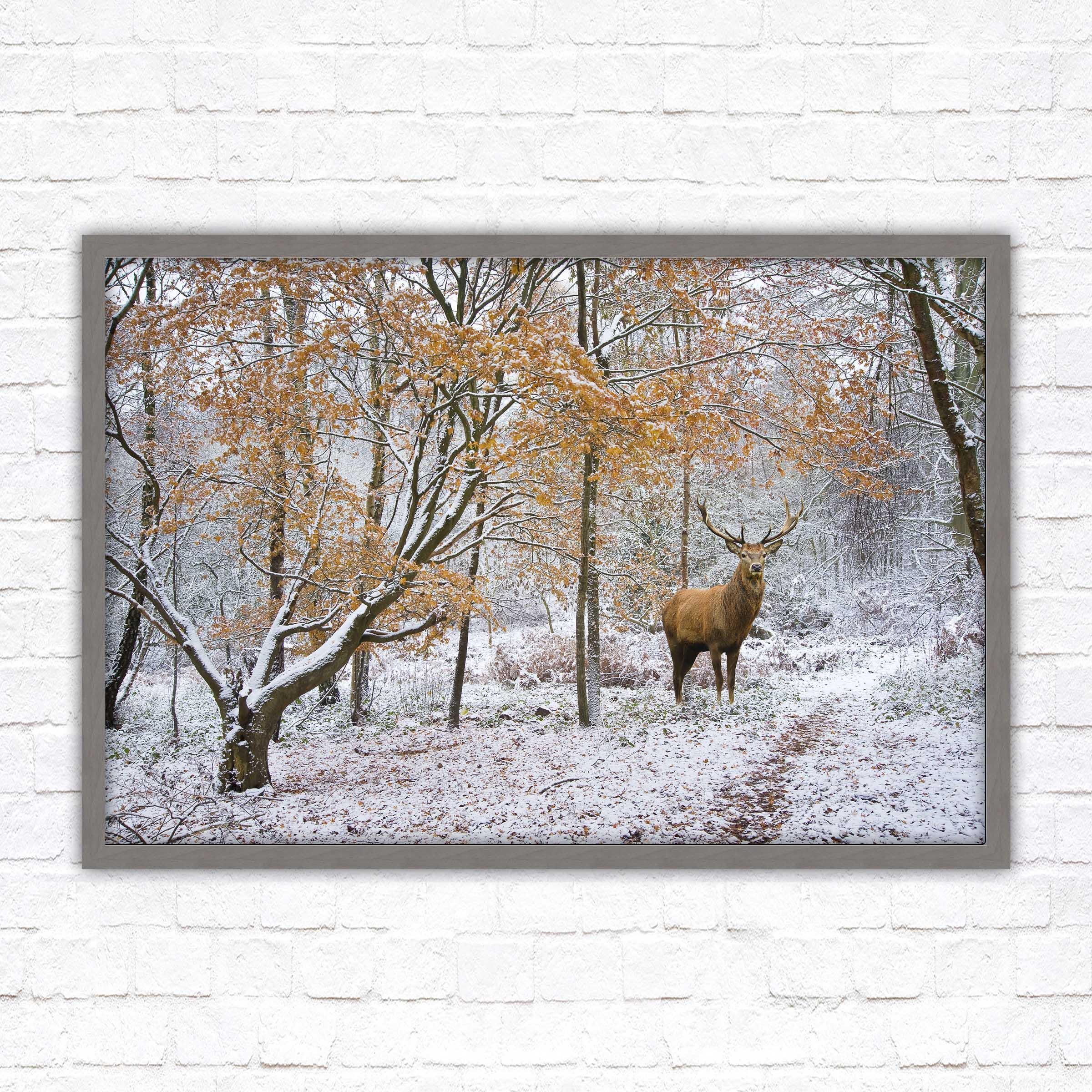 Transform your space with the breath-taking beauty of nature! This stunning framed picture features a regal stag standing proud amidst a serene winter forest, where the snow blankets the trees and the crisp, cold air creates a sense of peaceful solitude.
