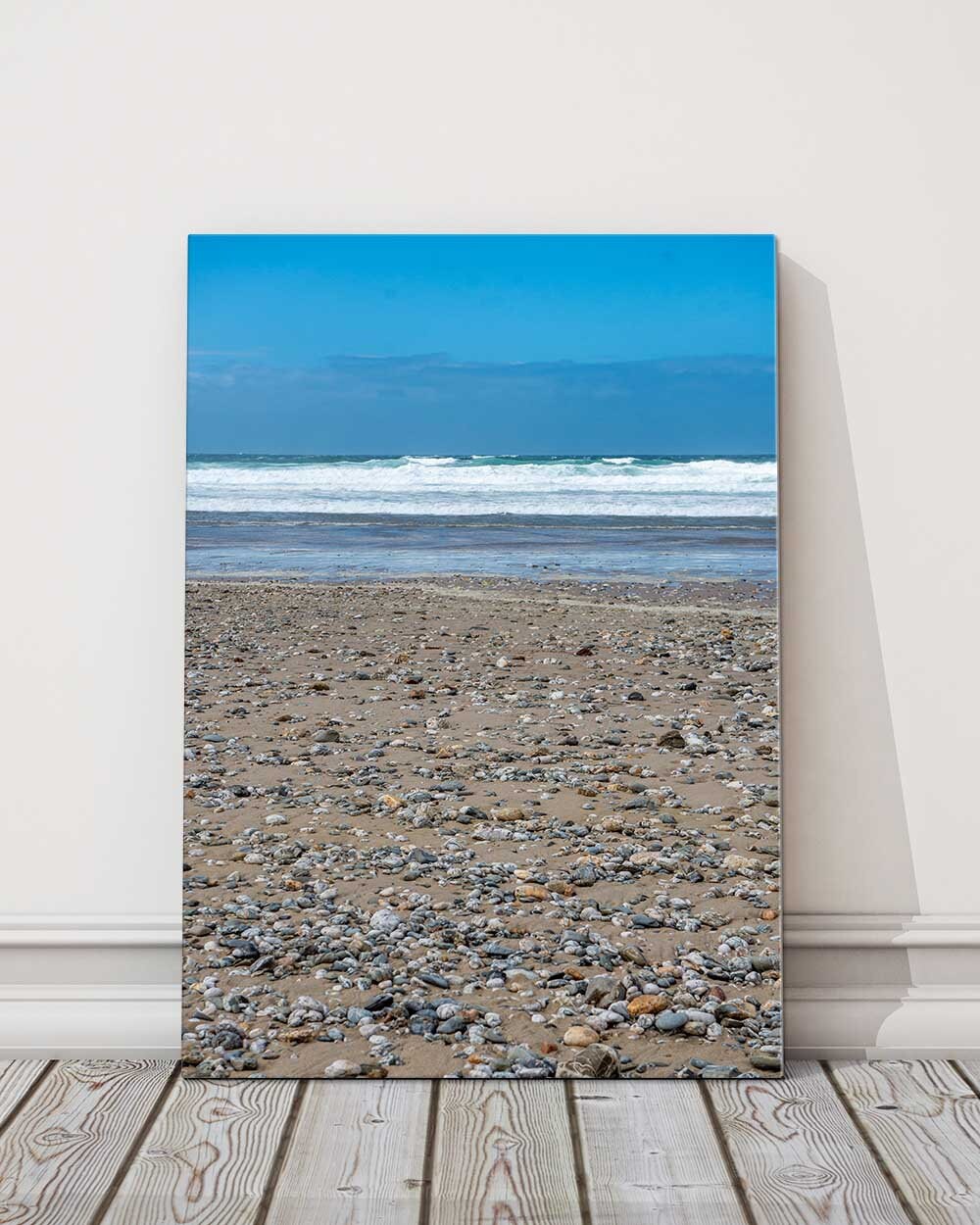 stormy waves, pebbled beach, Portreath, Cornwall canvas picture print portrait
