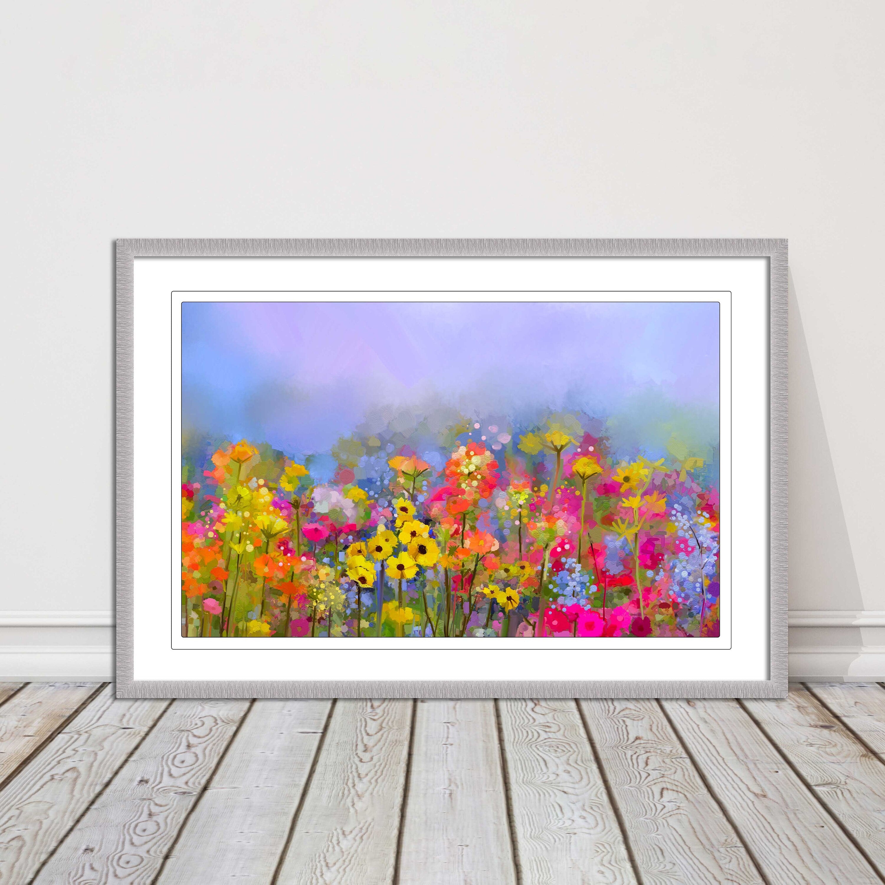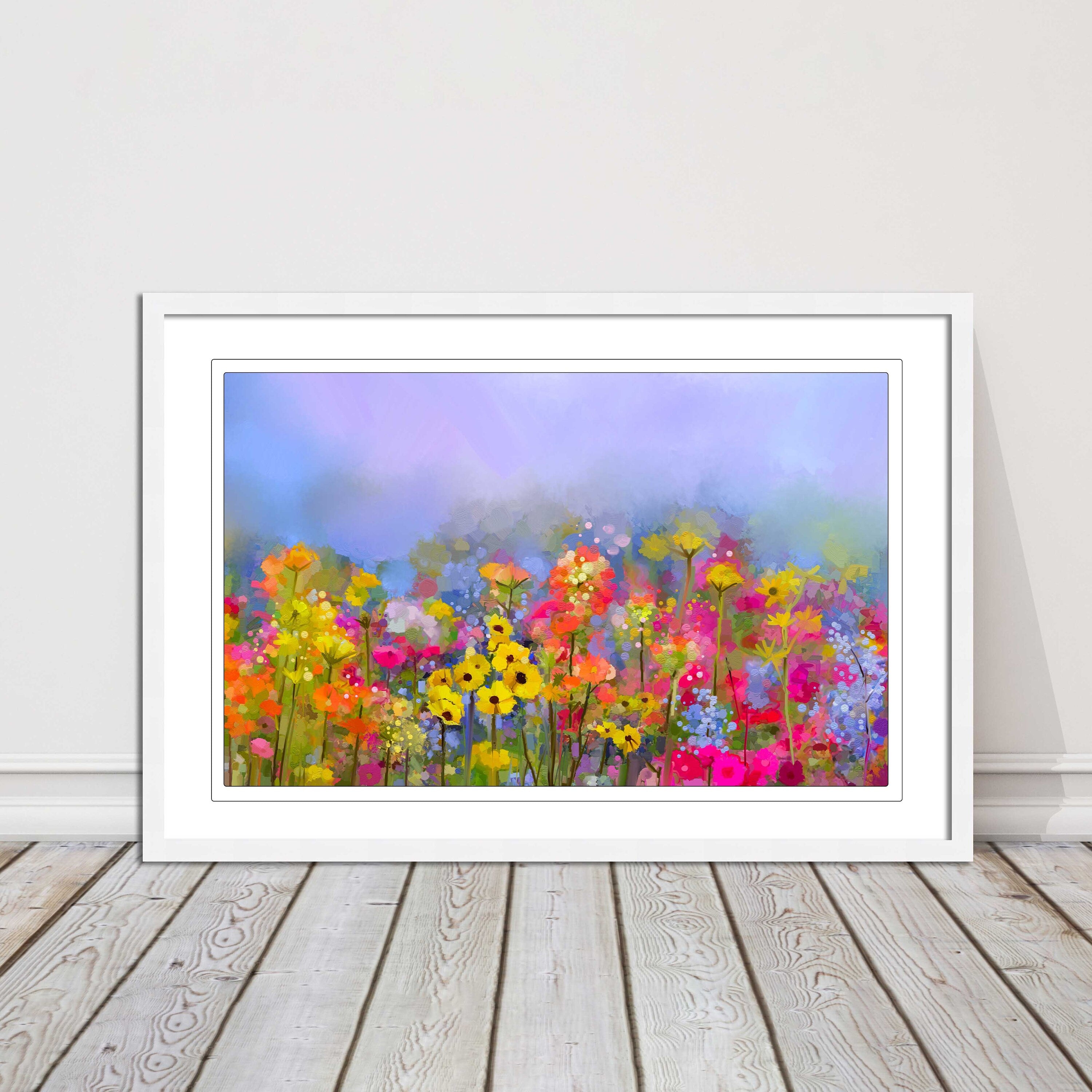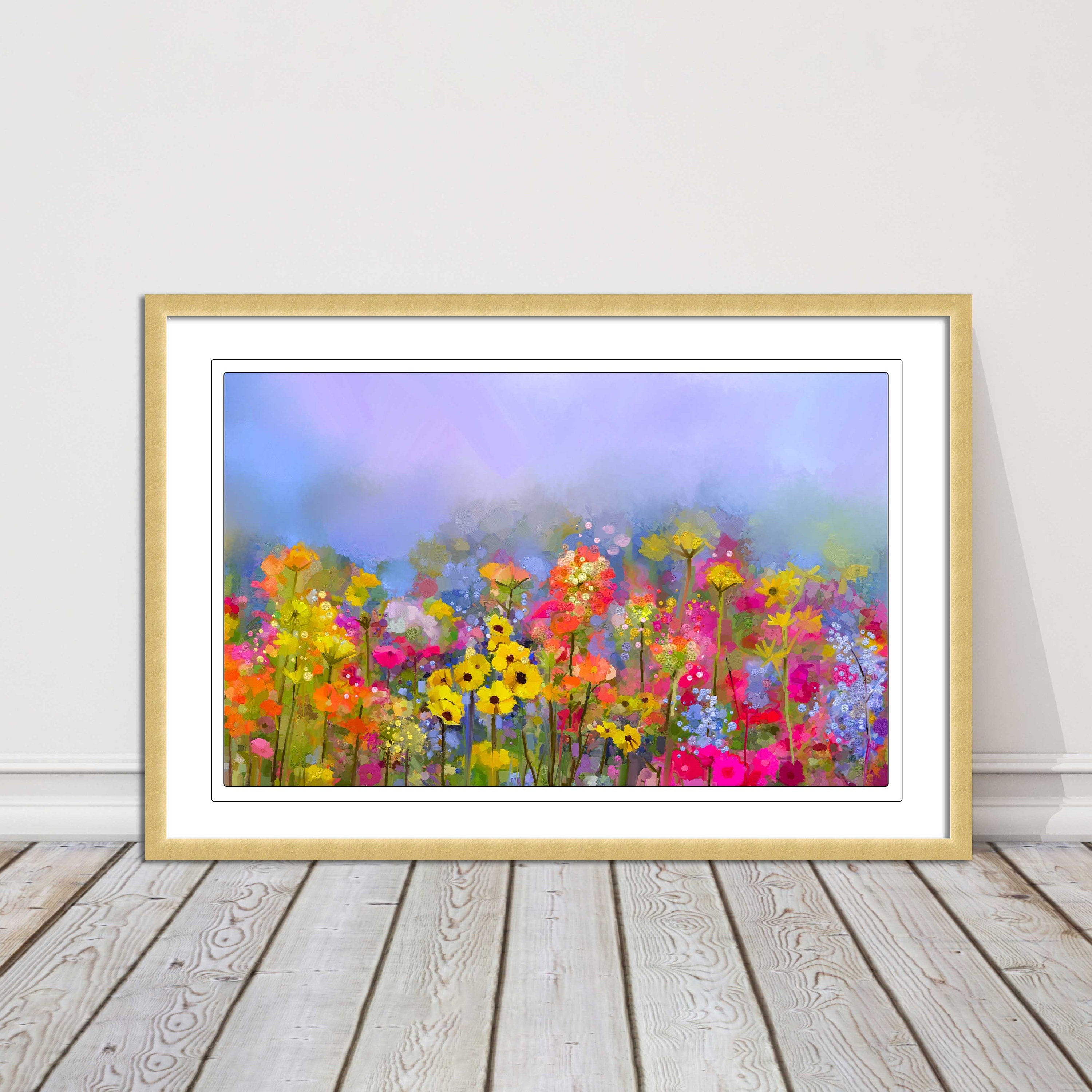A beautiful framed picture of Colourful summer flowers. Oil painting print. Framed picture. Choose from a selection of frame styles.