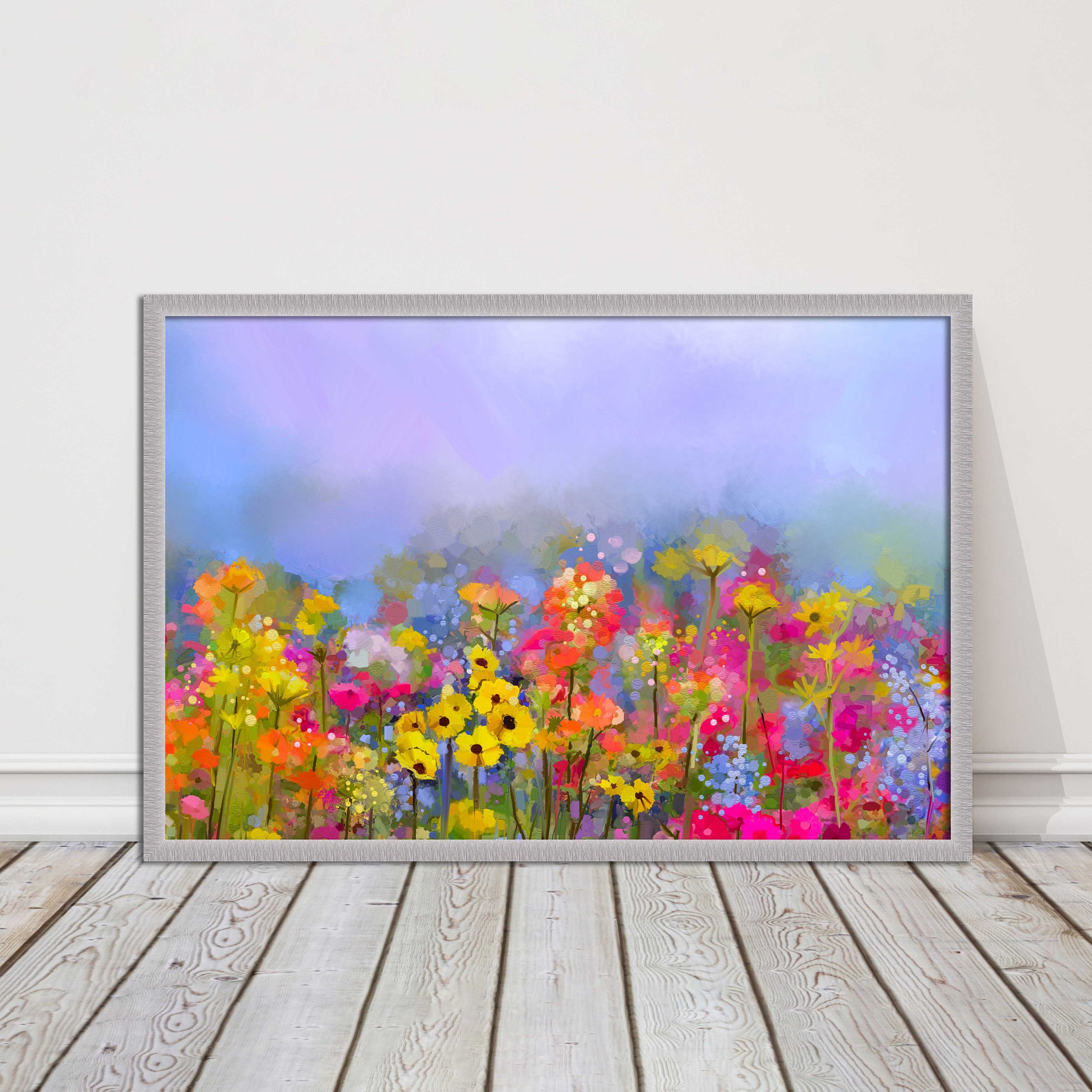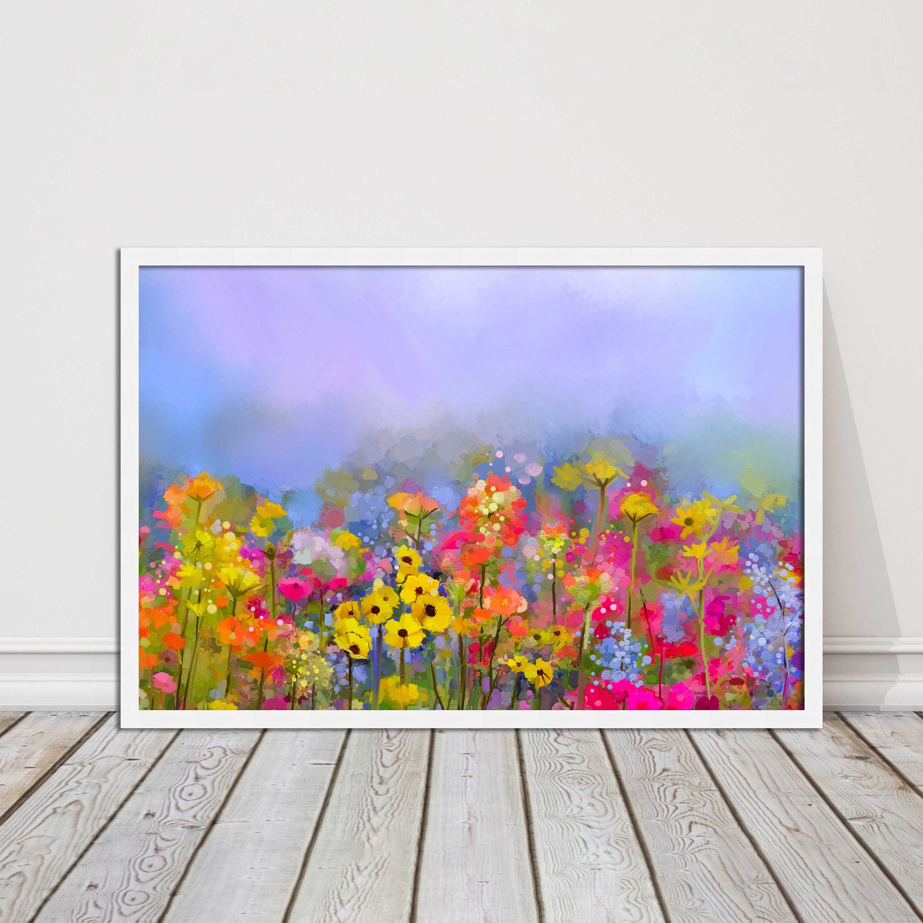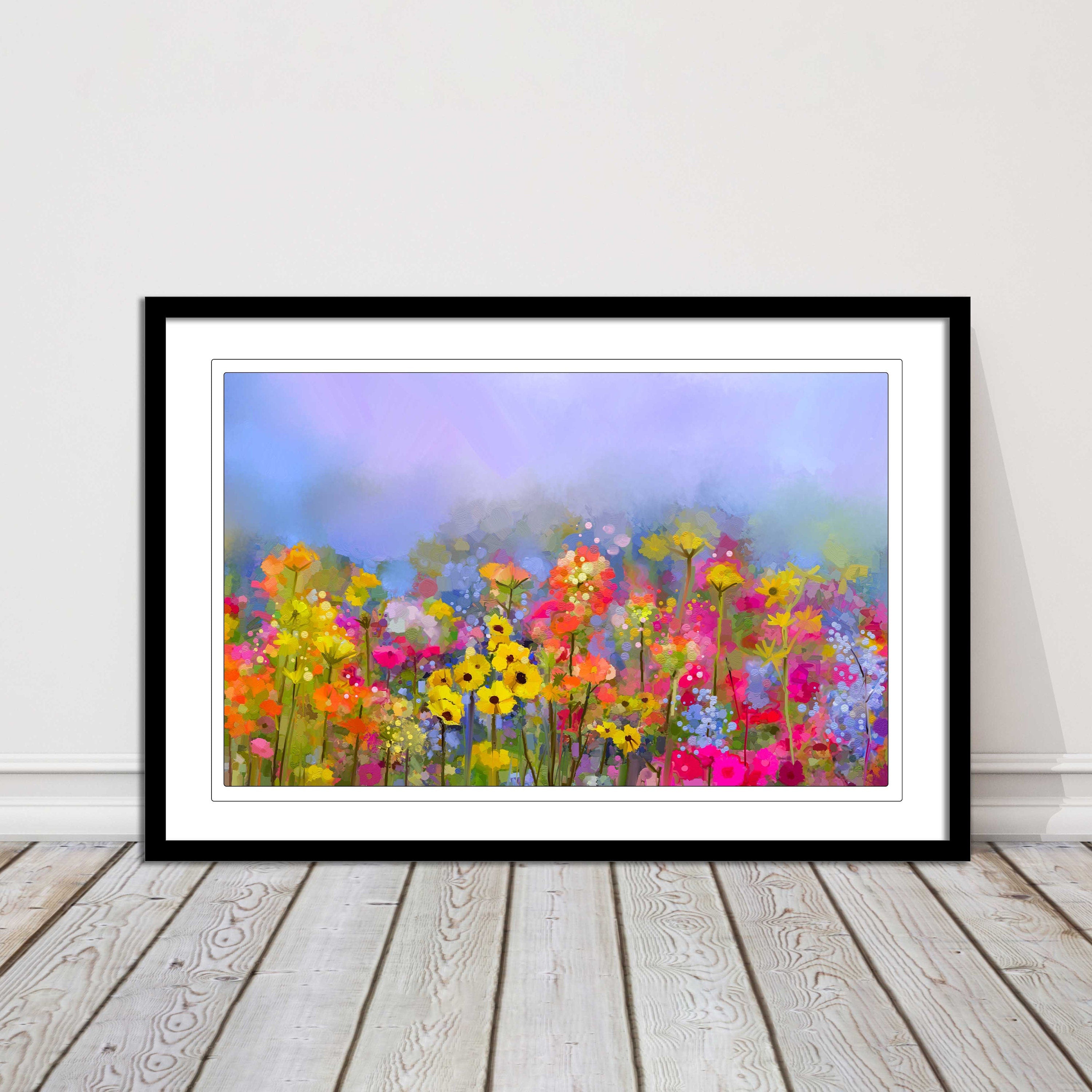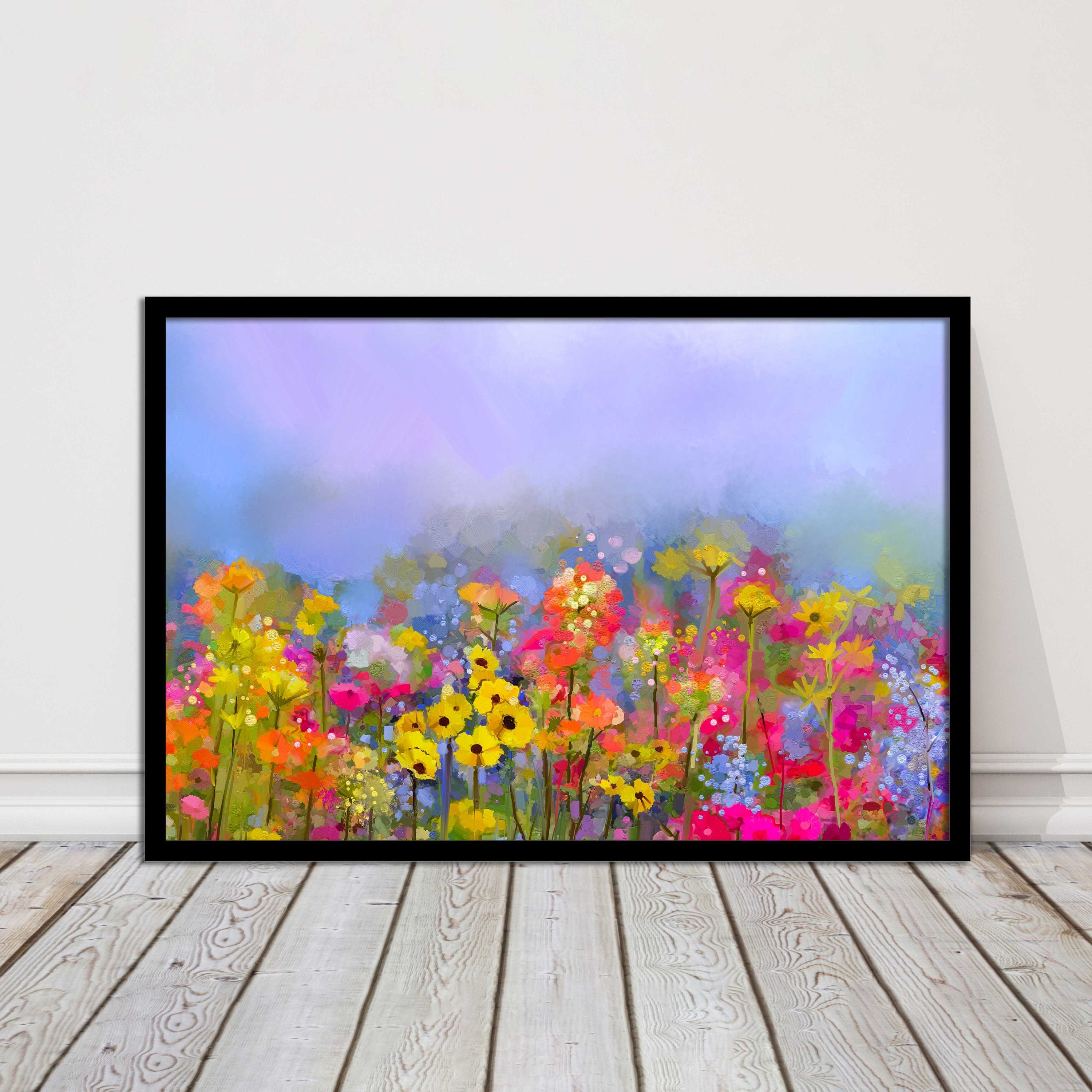 A beautiful framed picture of Colourful summer flowers. Oil painting print. Framed picture. Choose from a selection of frame styles.