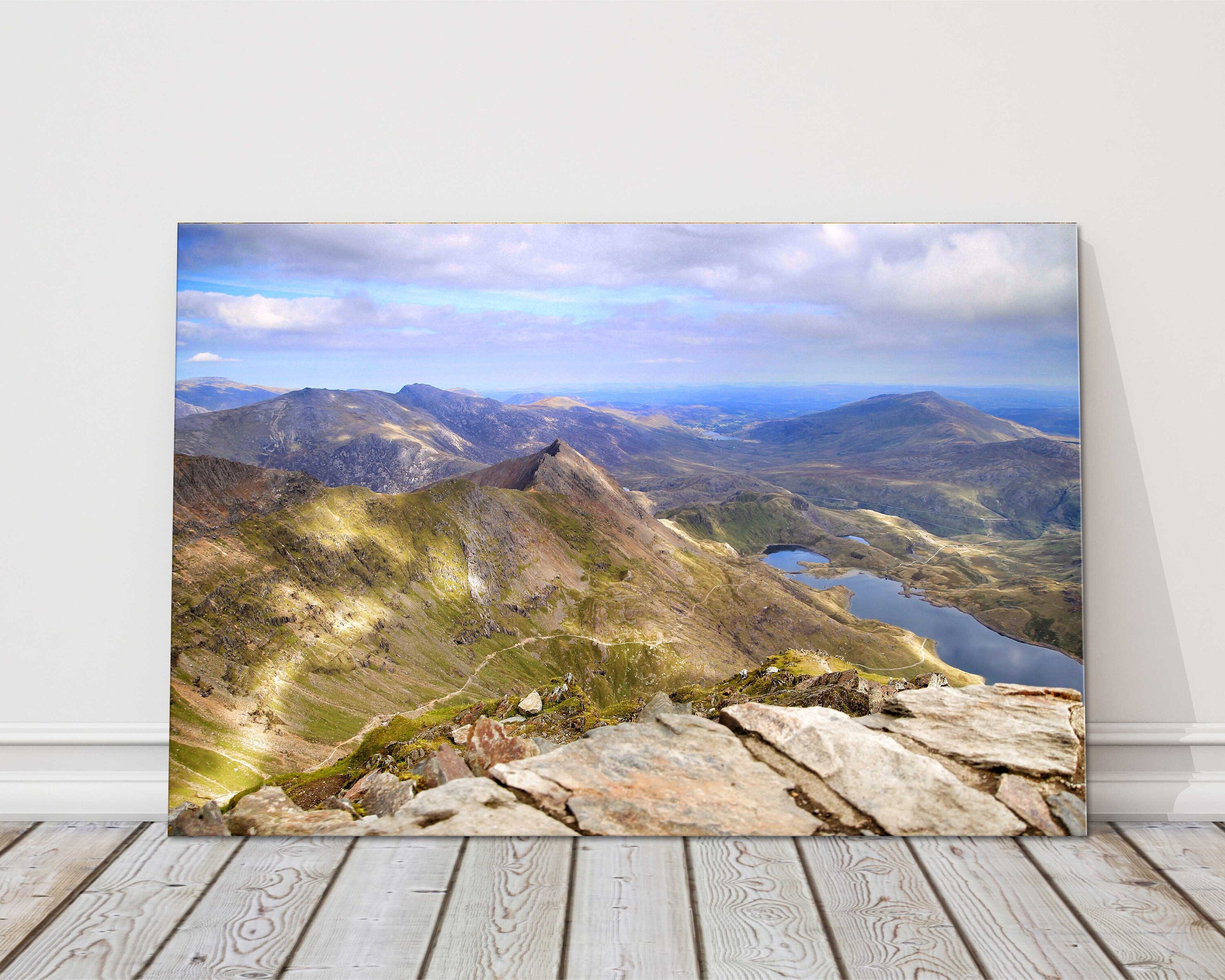 View from Summit of Mount Snowden, overlooking lakes, printed and framed as a canvas picture print. Made using UK sourced... Read more