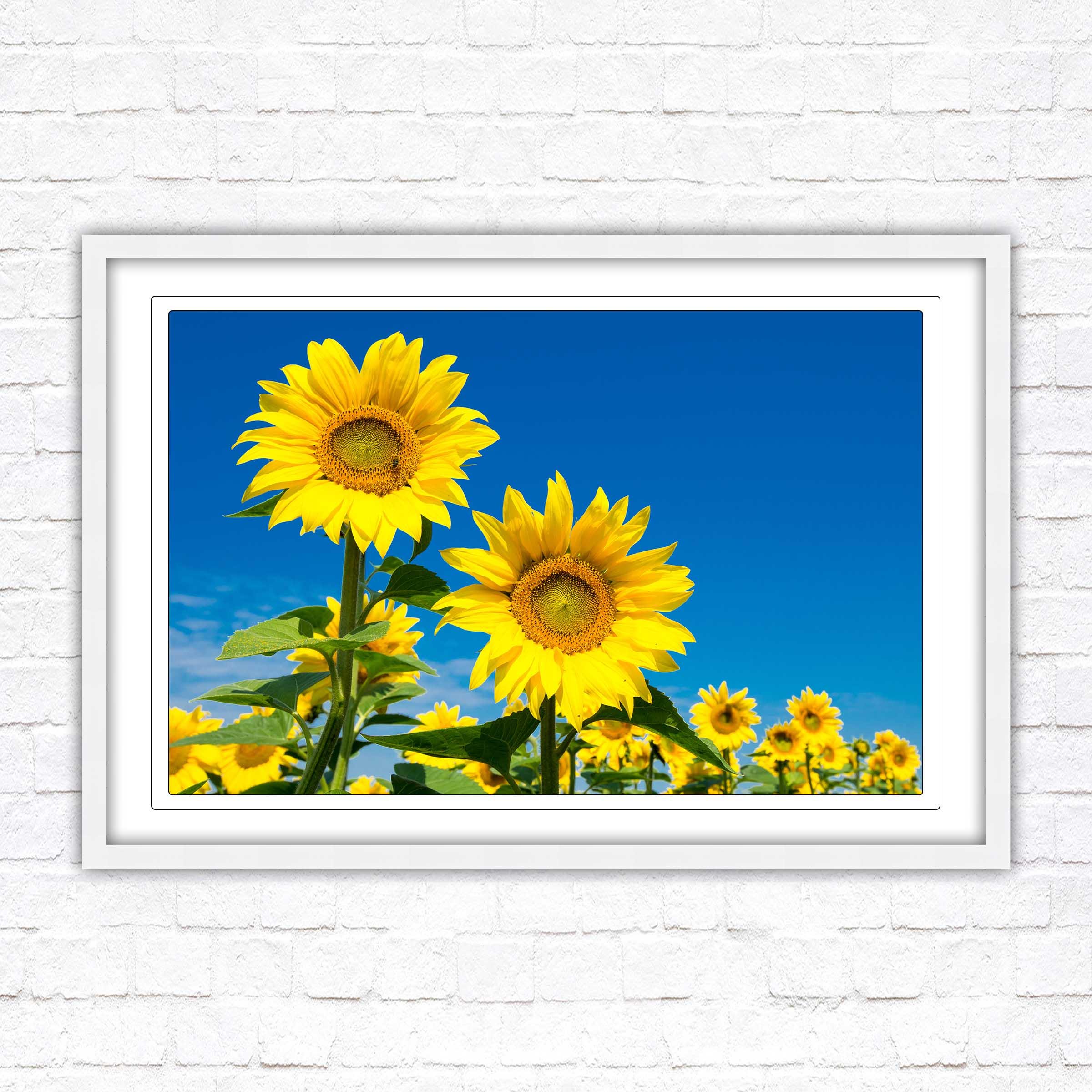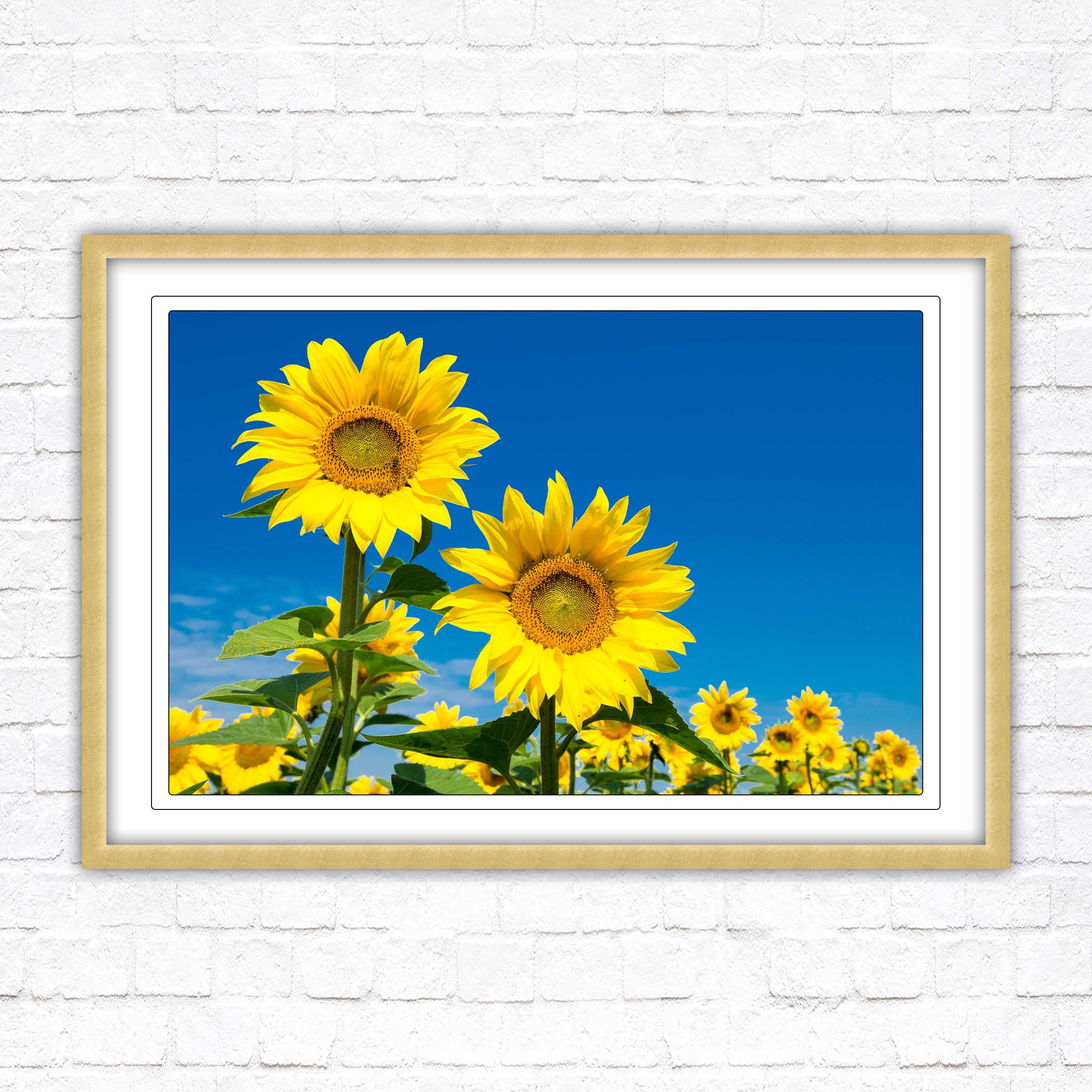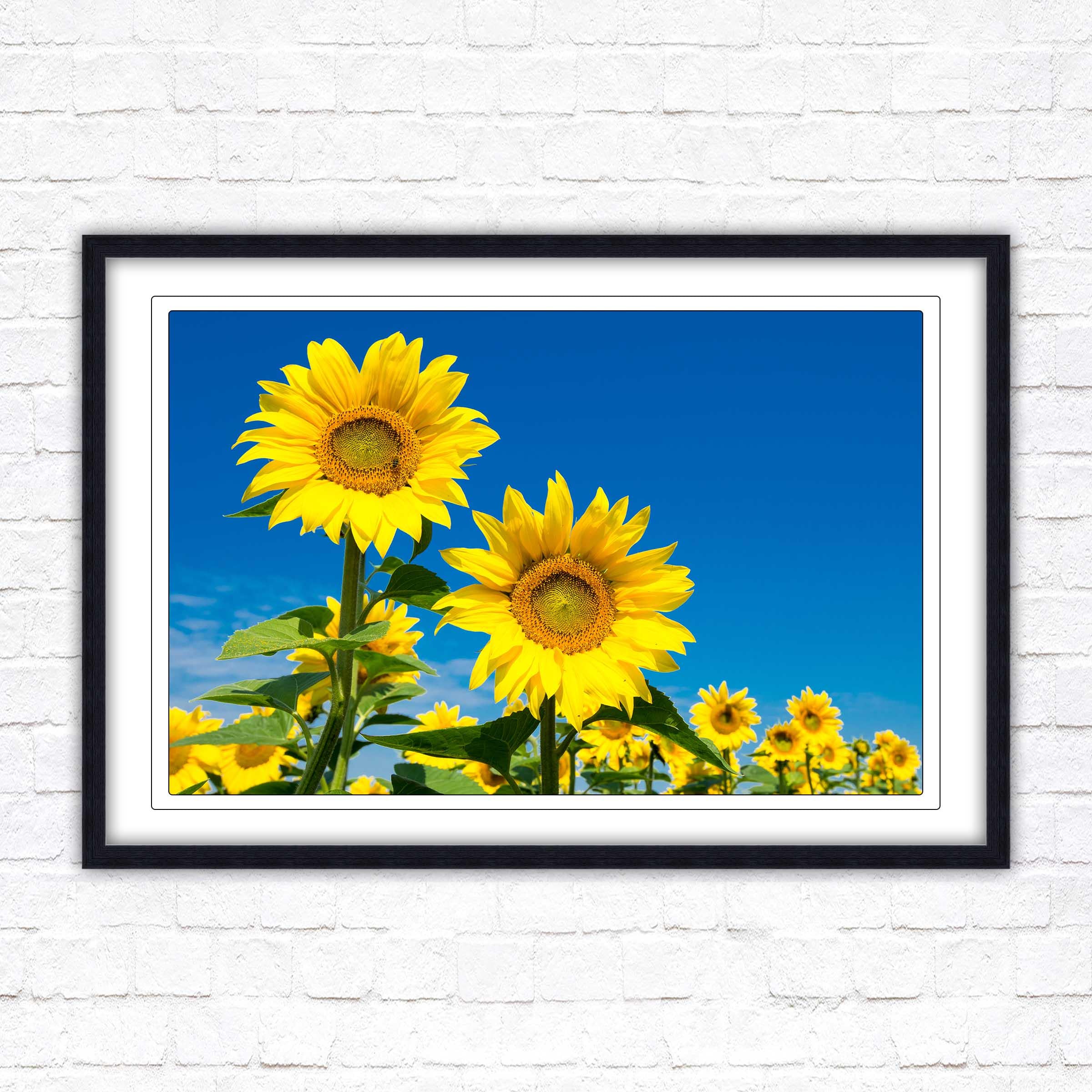 A beautiful framed picture of Sunflowers in the summer sunshine. Choose from a selection of frame styles.