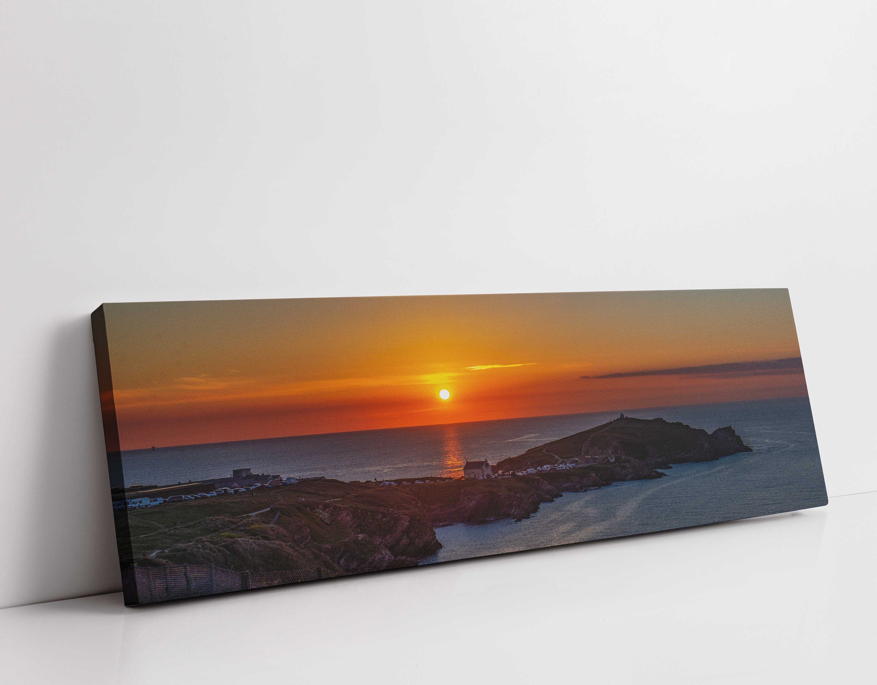 Sunset over Little Fistral and Headland, Newquay. Cornwall. Panoramic picture Printed and framed as a canvas print, available in a choice of sizes.