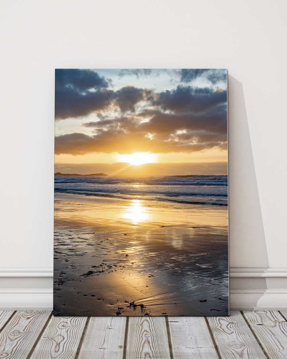 Sunset at Watergate Bay, Cornwall Canvas Print north cornwall near newquay