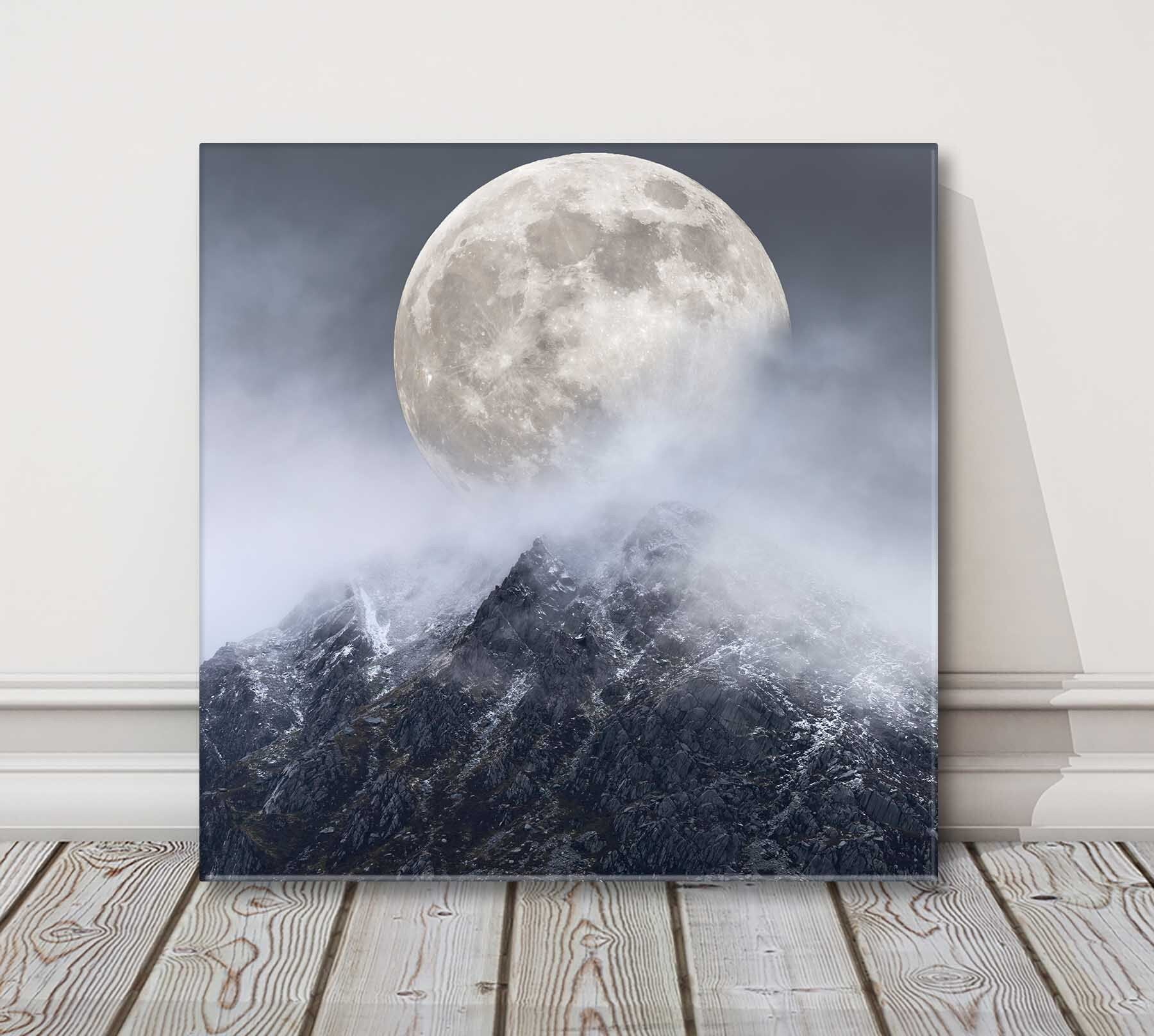 Digital image of a Supermoon over a mountain range. Surreal fantasy, dramatic image. Printed as a canvas picture. A choice of sizes available.