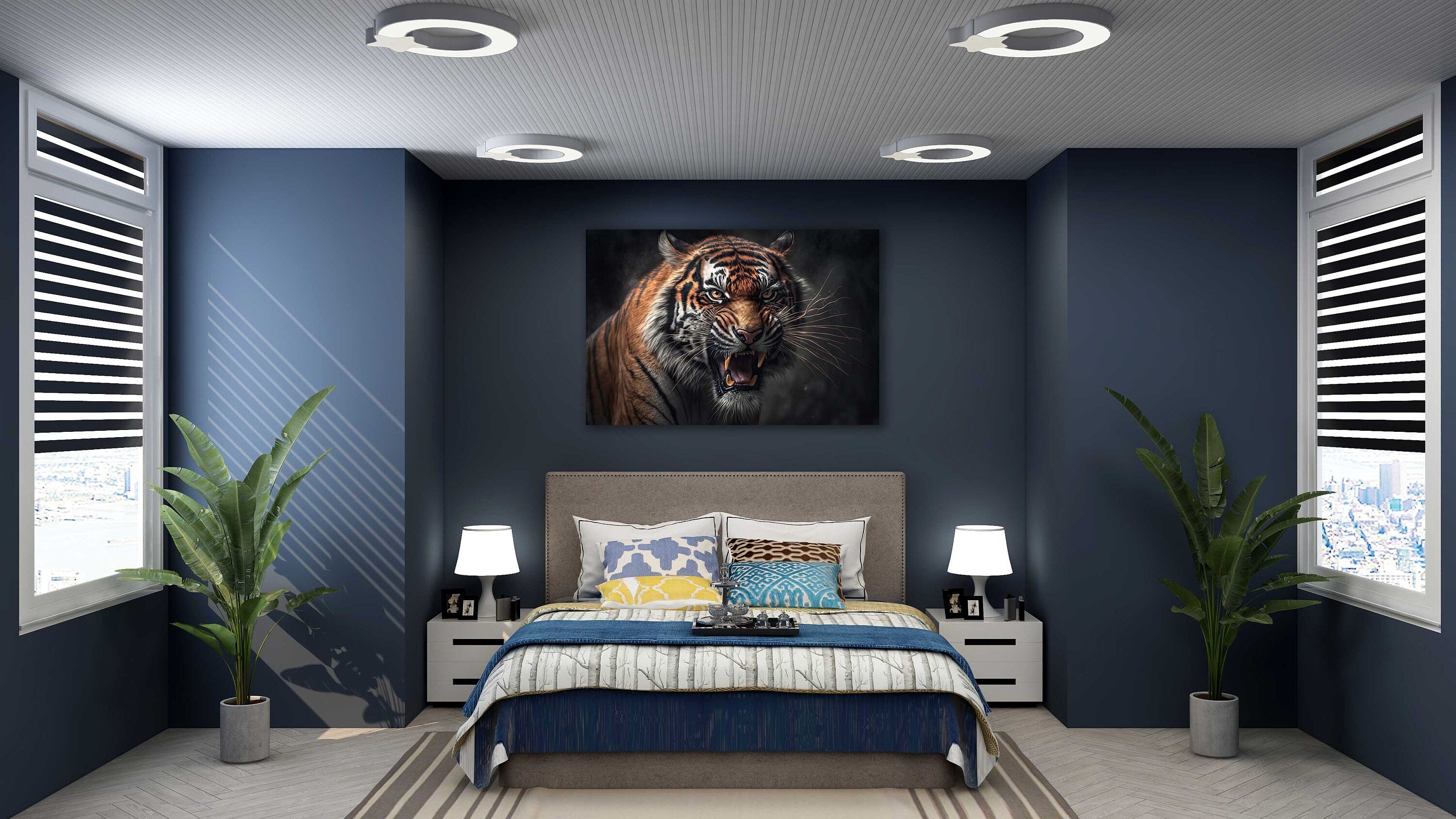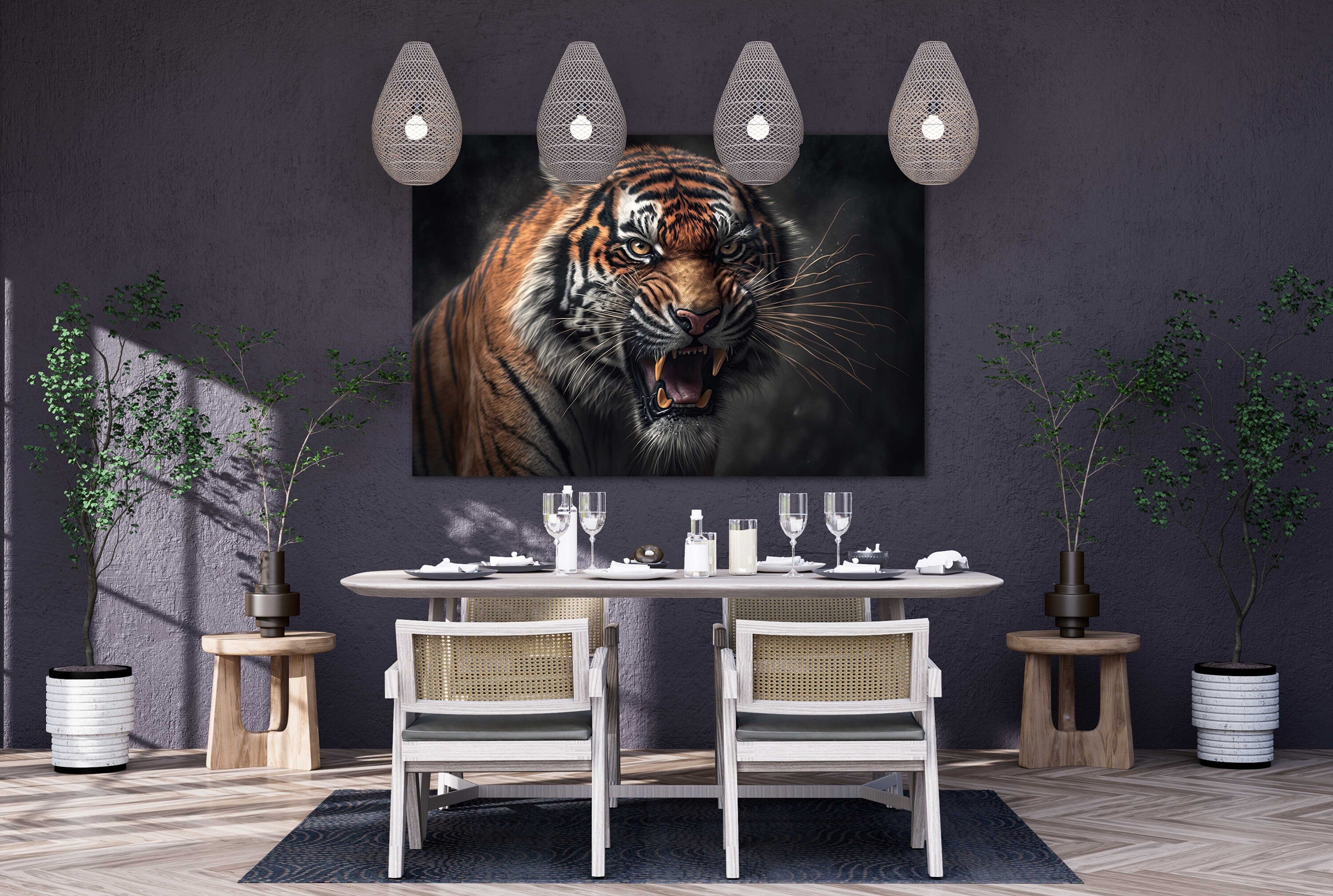 Tiger. Fierce big cat. Wildlife image. Printed Canvas picture print