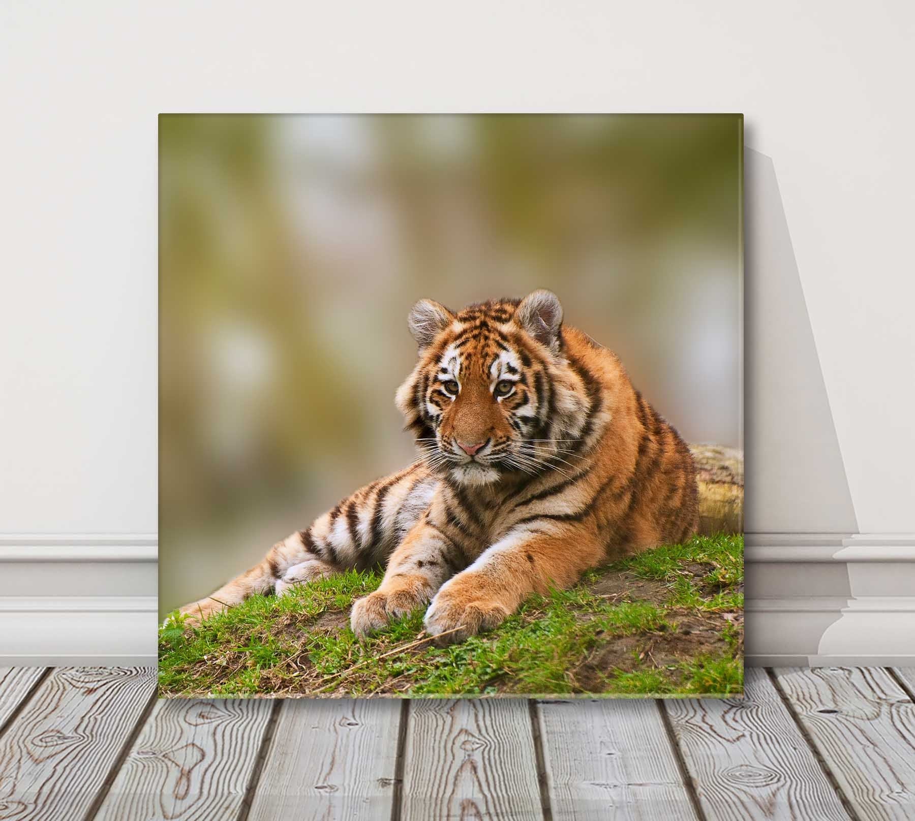 Bengal Tiger resting on a rock. Printed as a canvas picture print. Wildlife picture available in a range of sizes for any home.