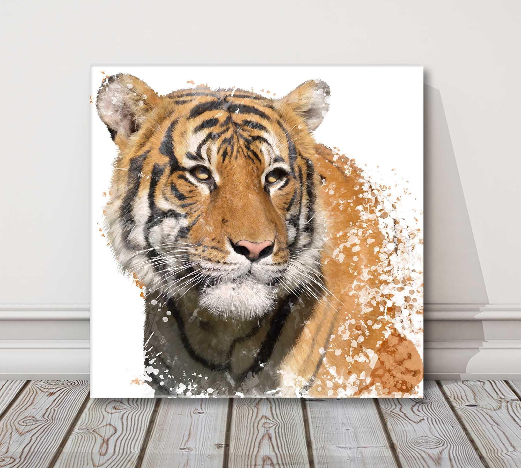 Tiger image printed as a canvas picture print. Wildlife picture available in a range of sizes for any home. Big cats.