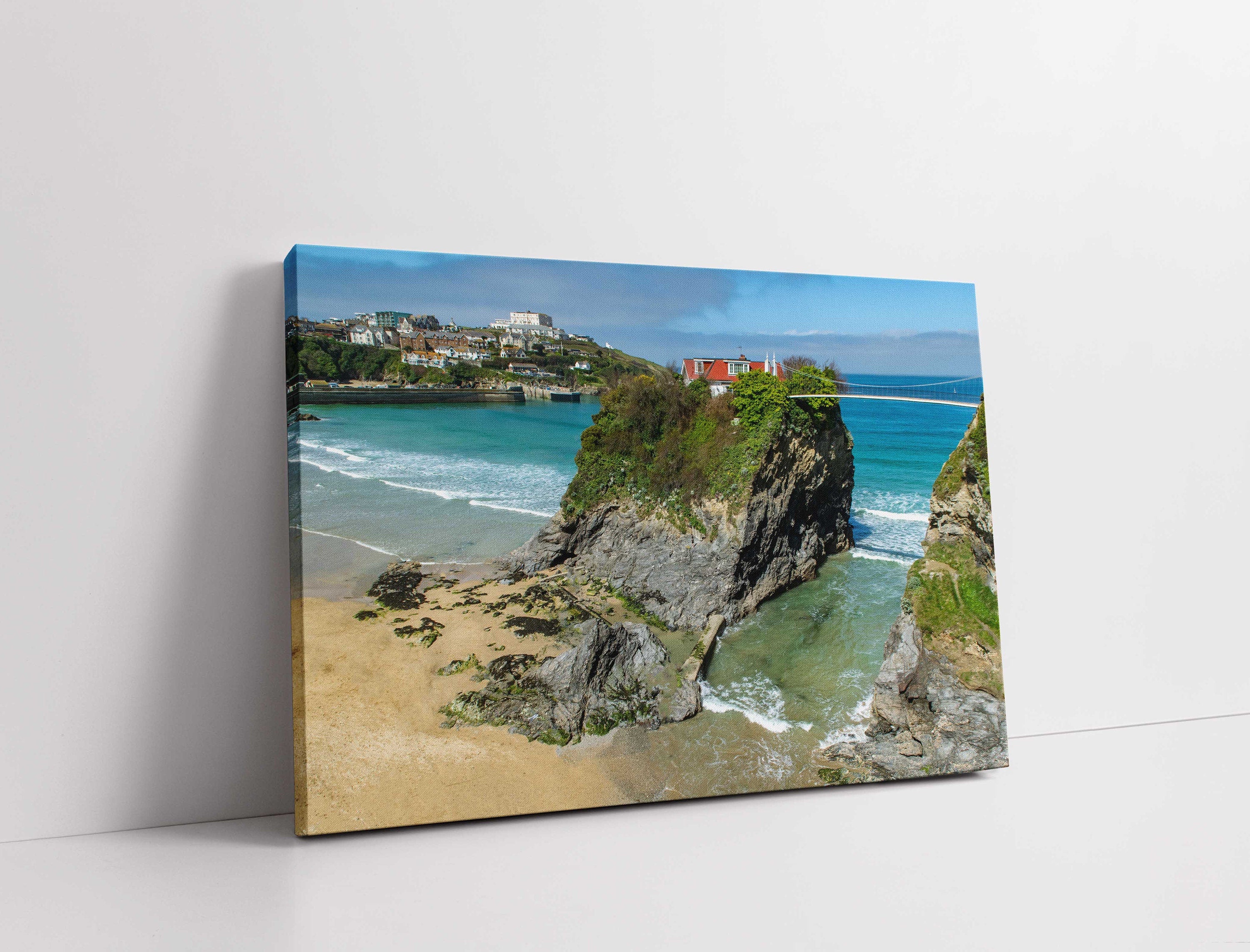 Towan beach Island House Newquay, Cornwall. Harbour and the Atlantic hotel on the headland. North Cornwall. Available to order in a choice of sizes.