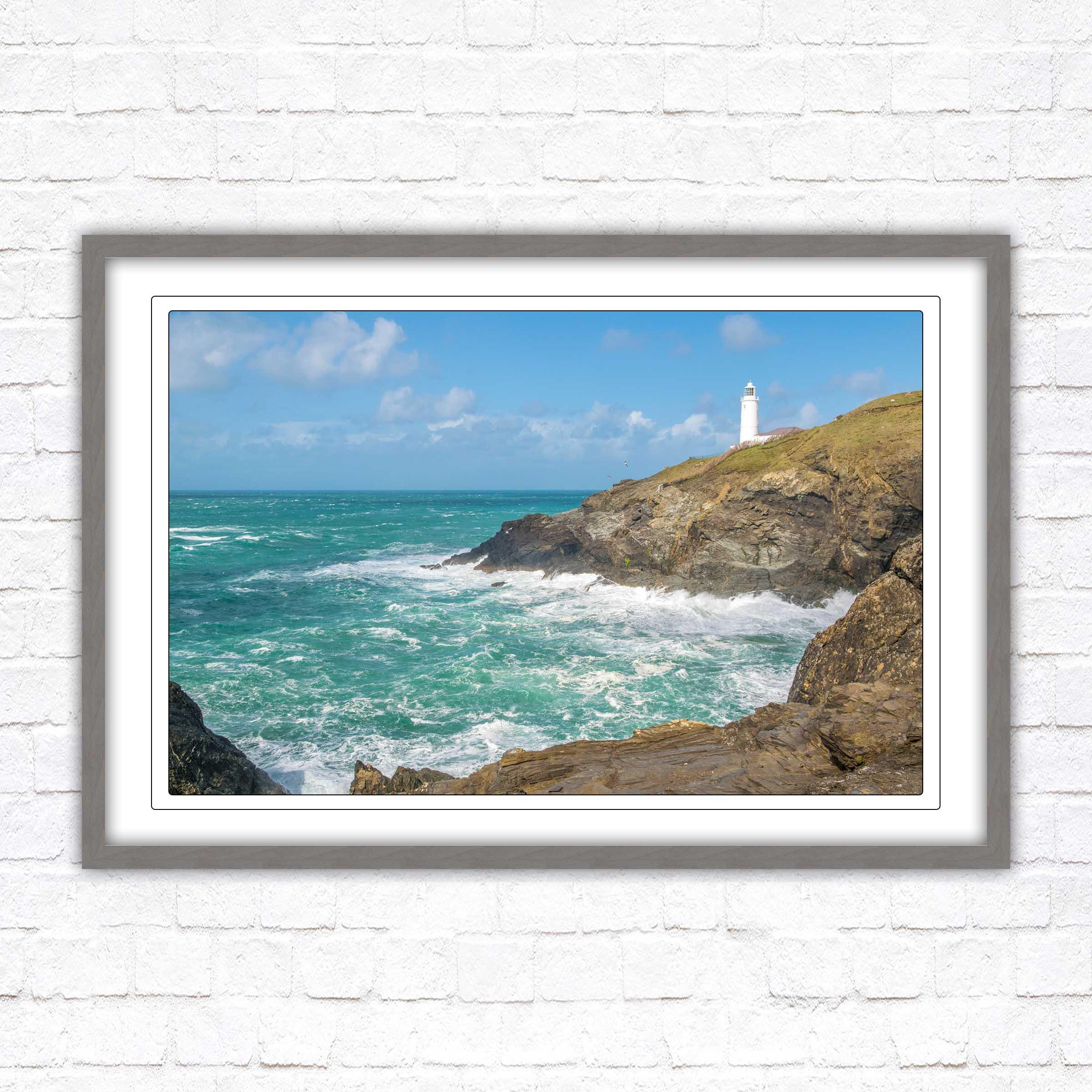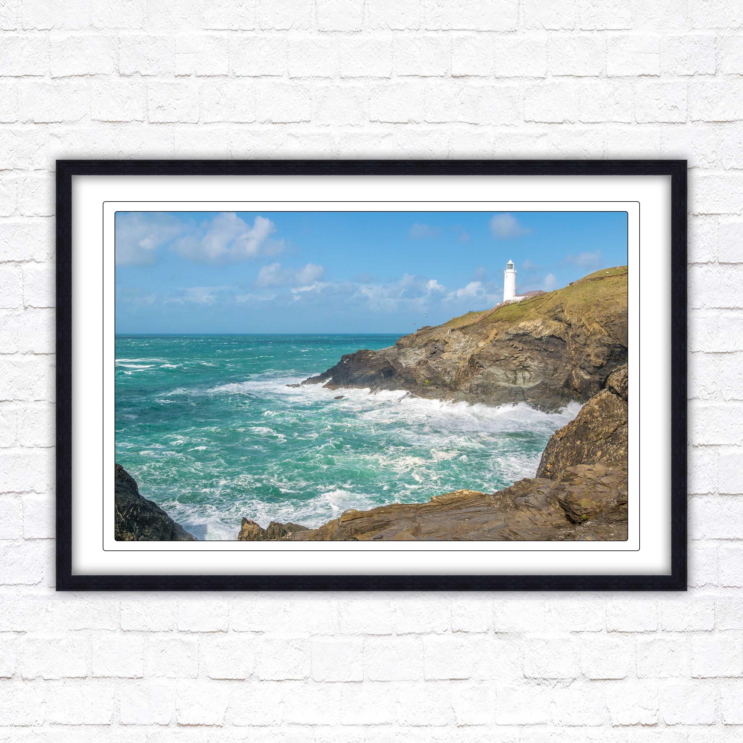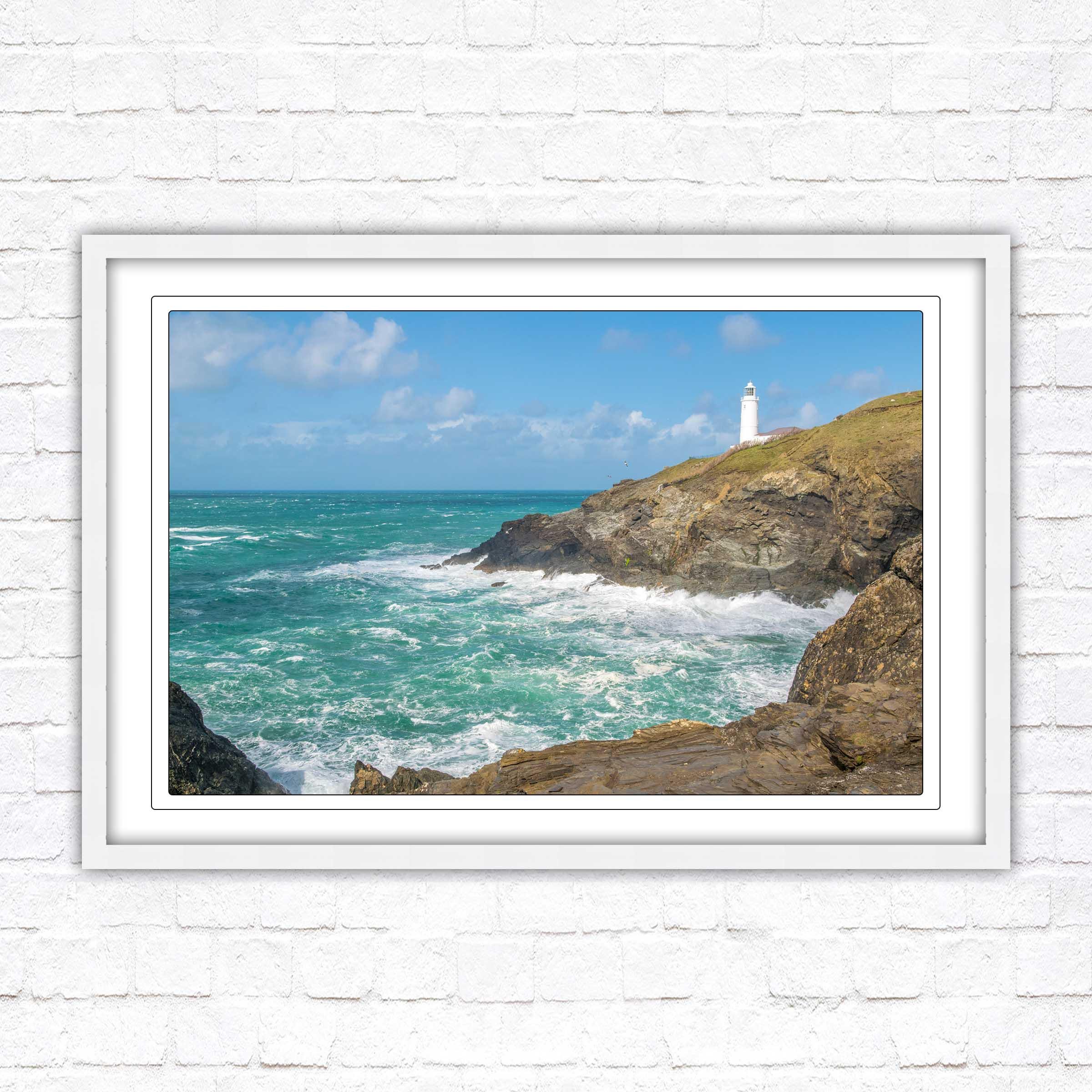 A beautiful framed picture of Trevose Head Lighthouse on the North Cornwall coast. Choose frame colour and with or without border.