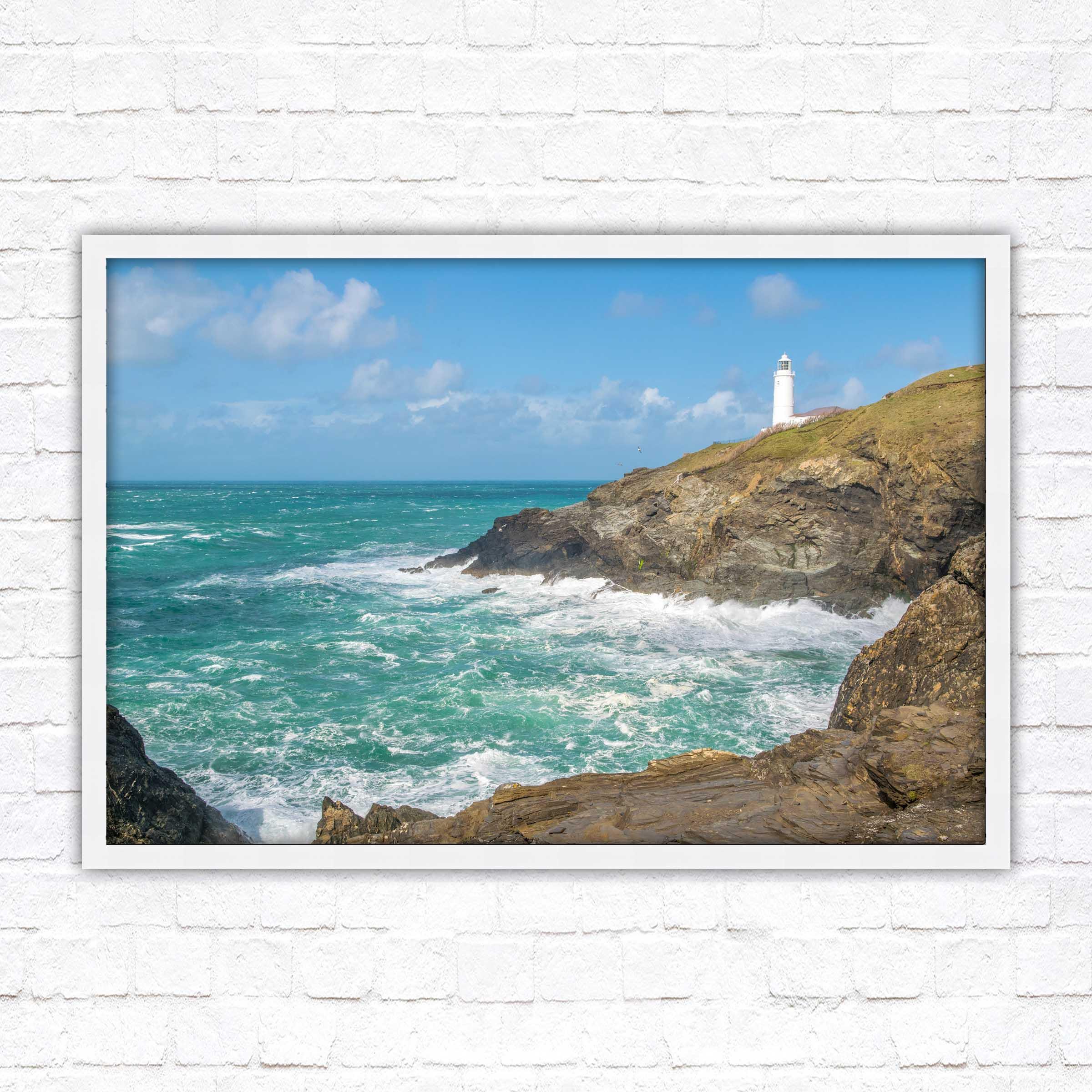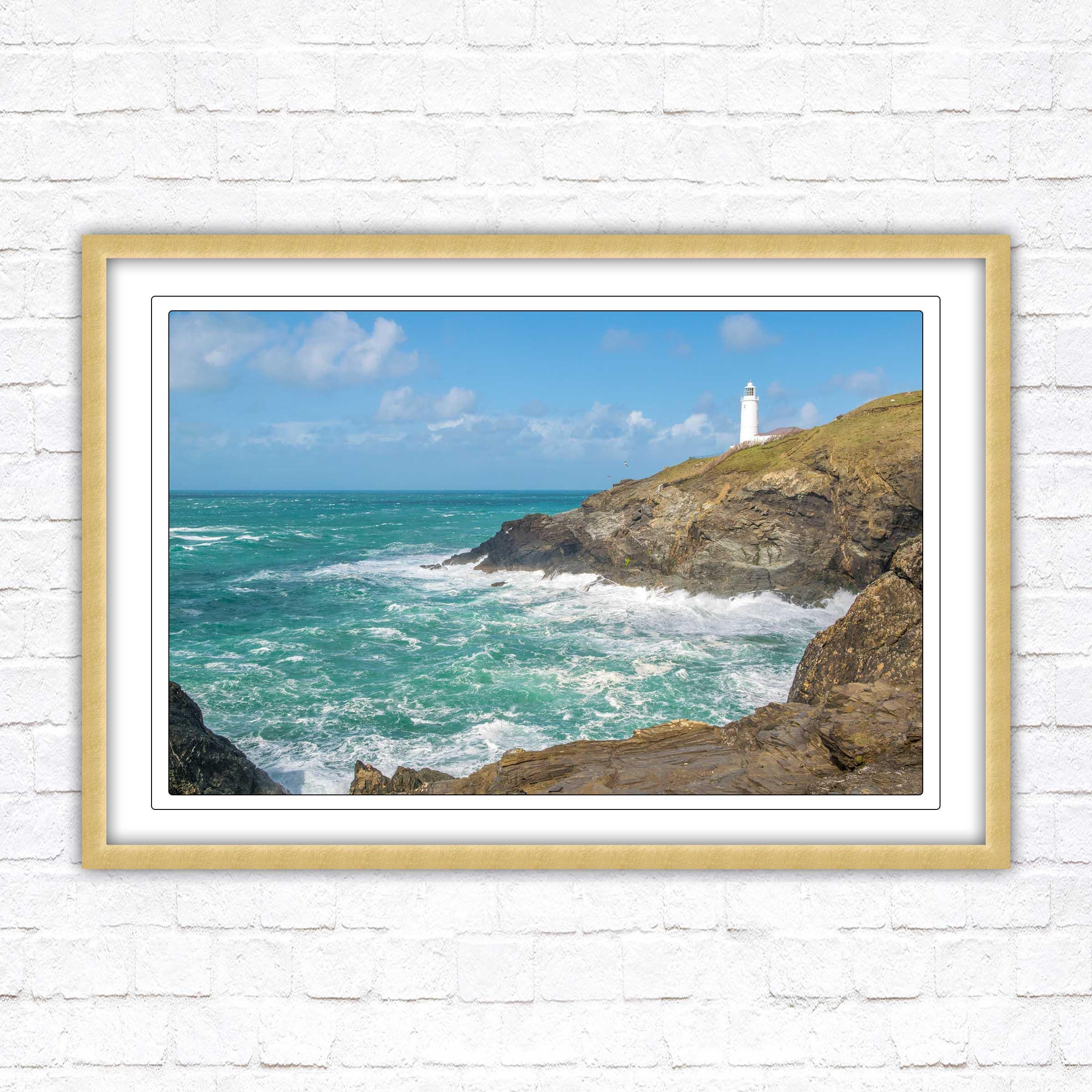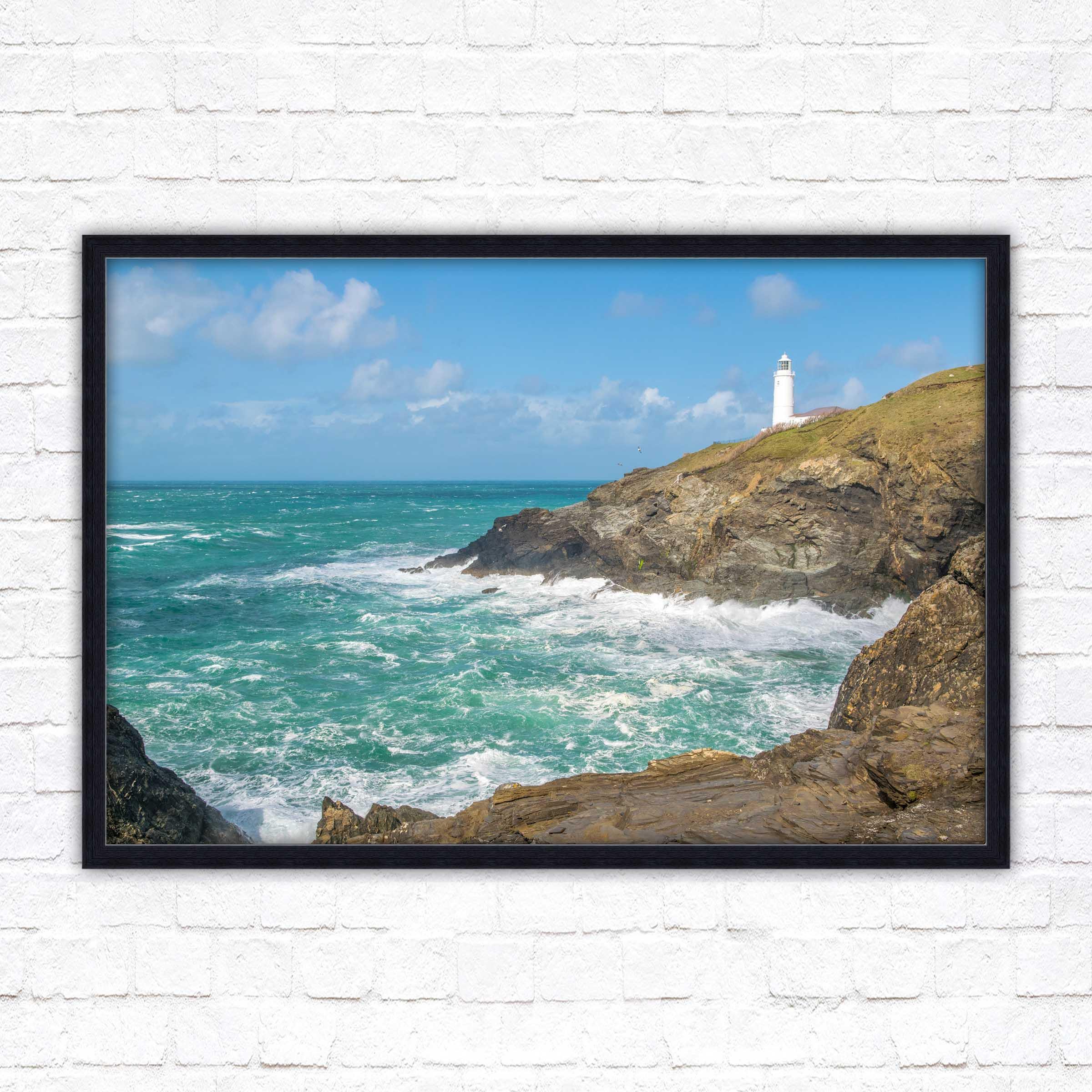 A beautiful framed picture of Trevose Head Lighthouse on the North Cornwall coast. Choose frame colour and with or without border.