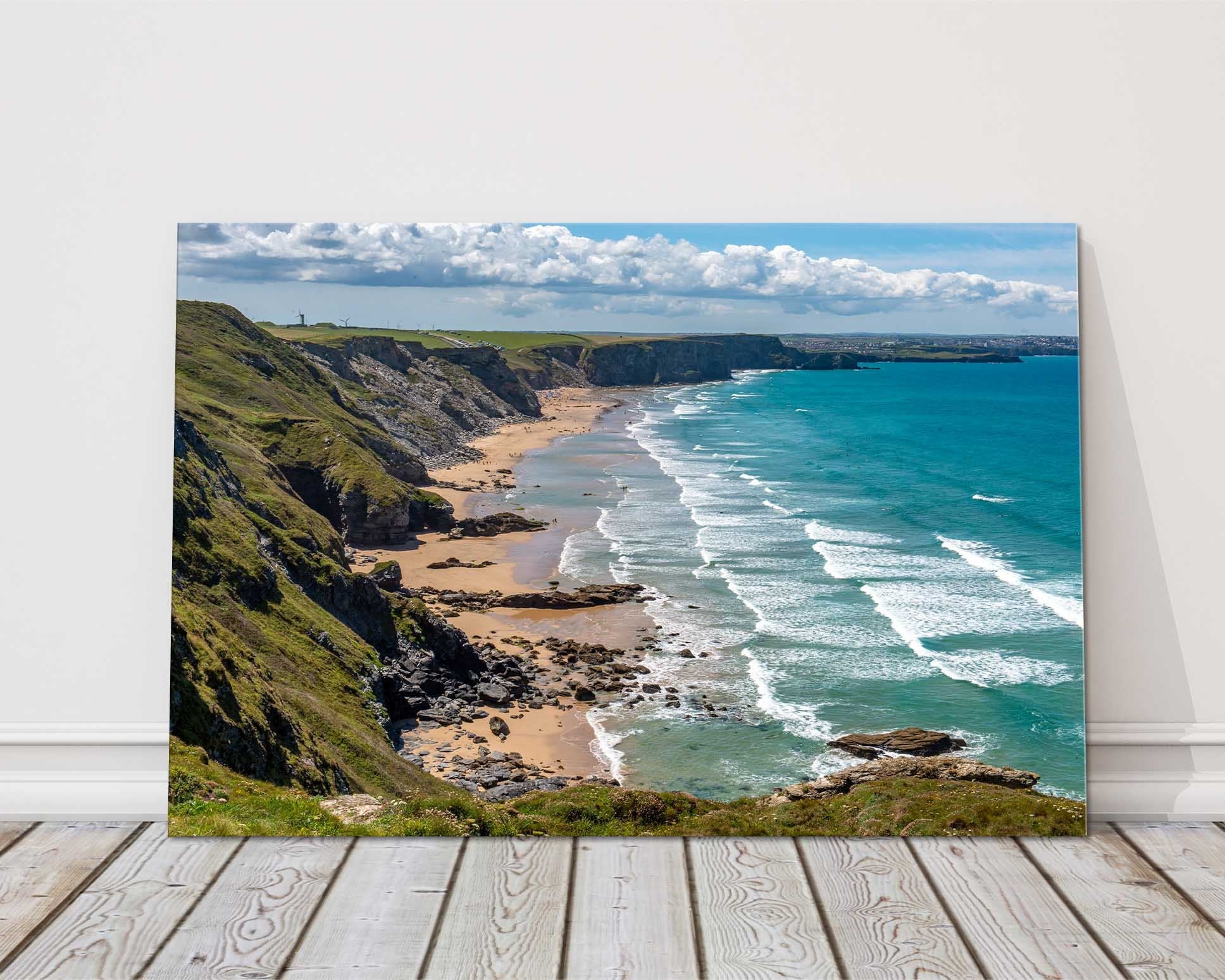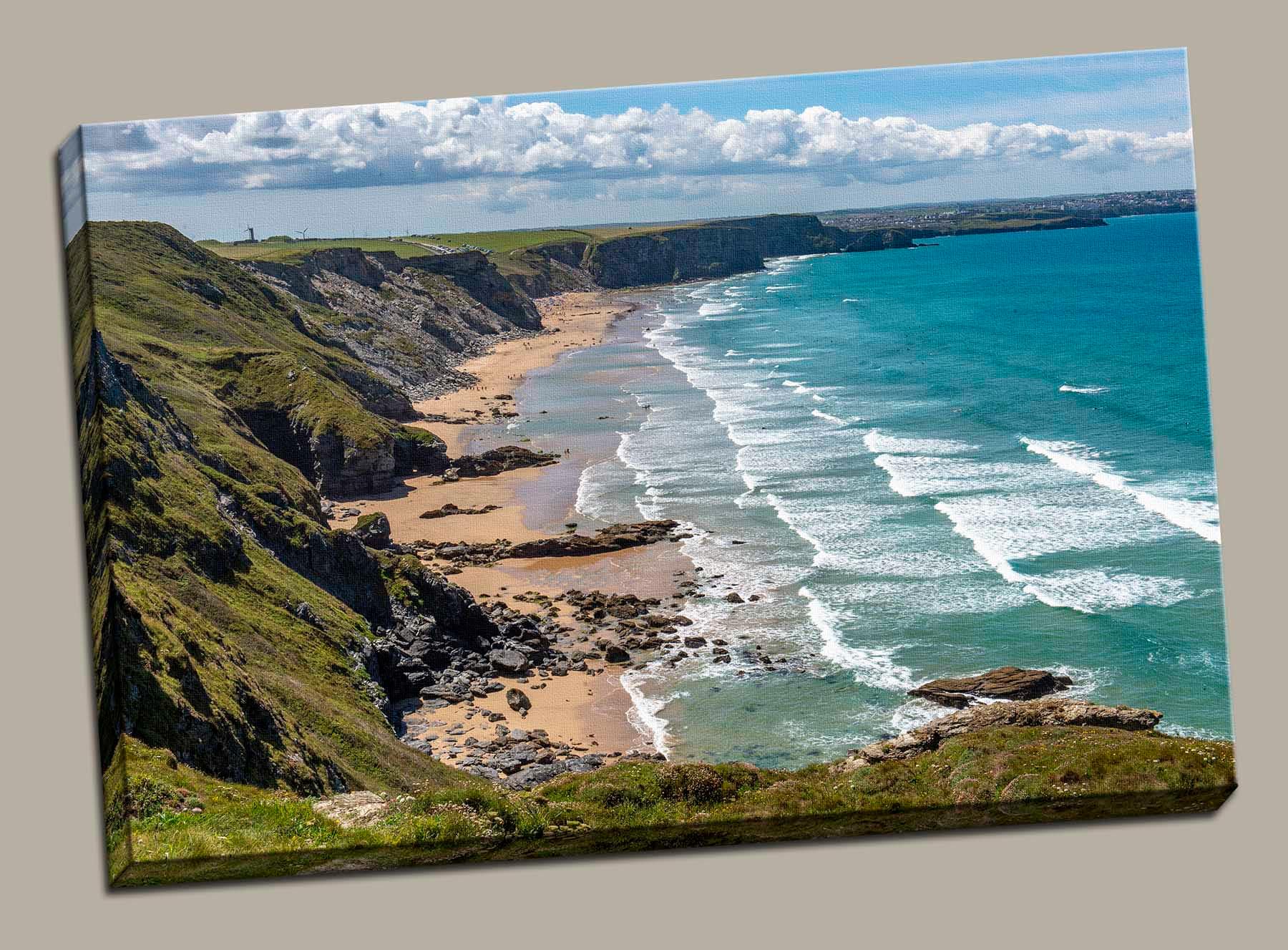 A beautiful landscape canvas picture of Watergate bay Beach, North Cornwall.