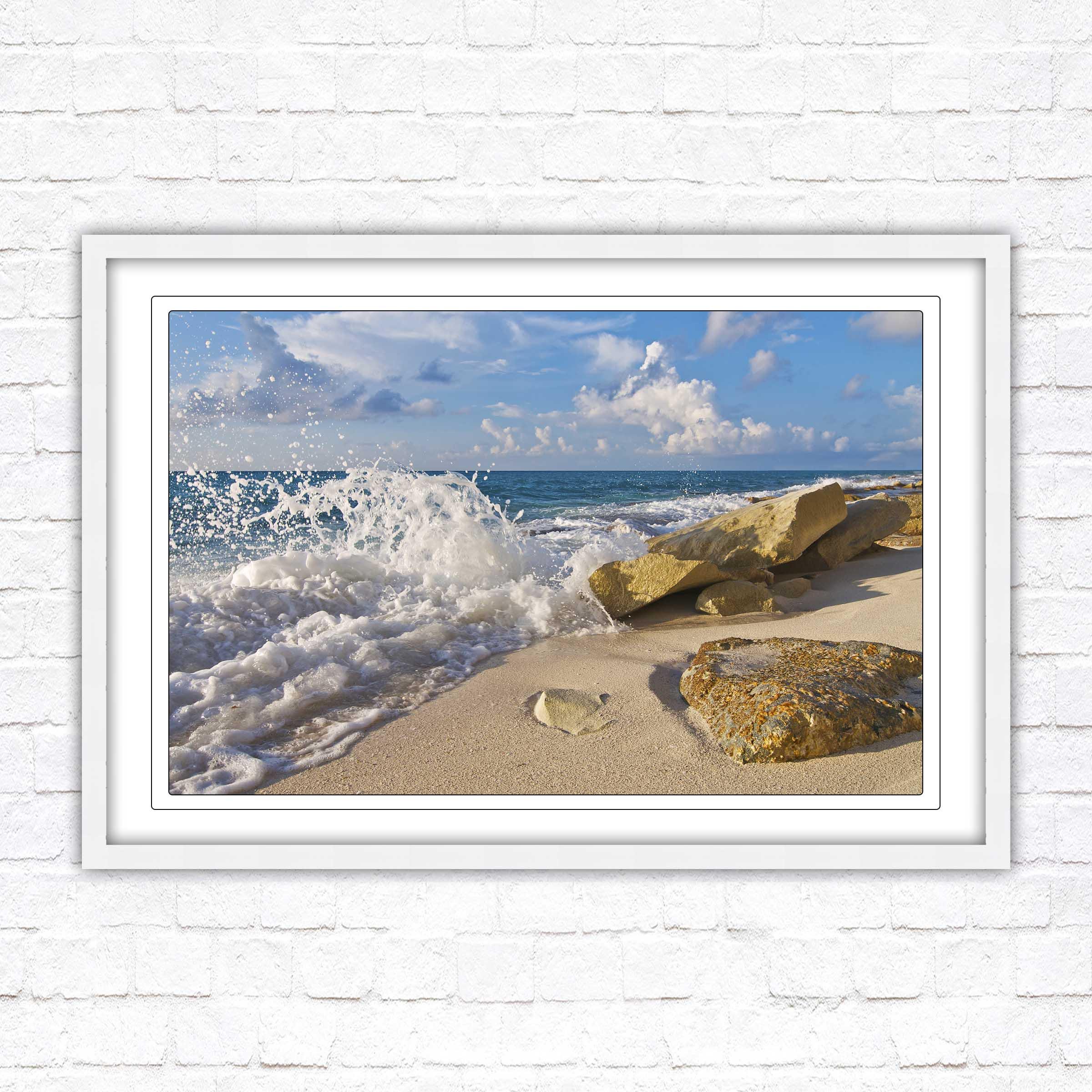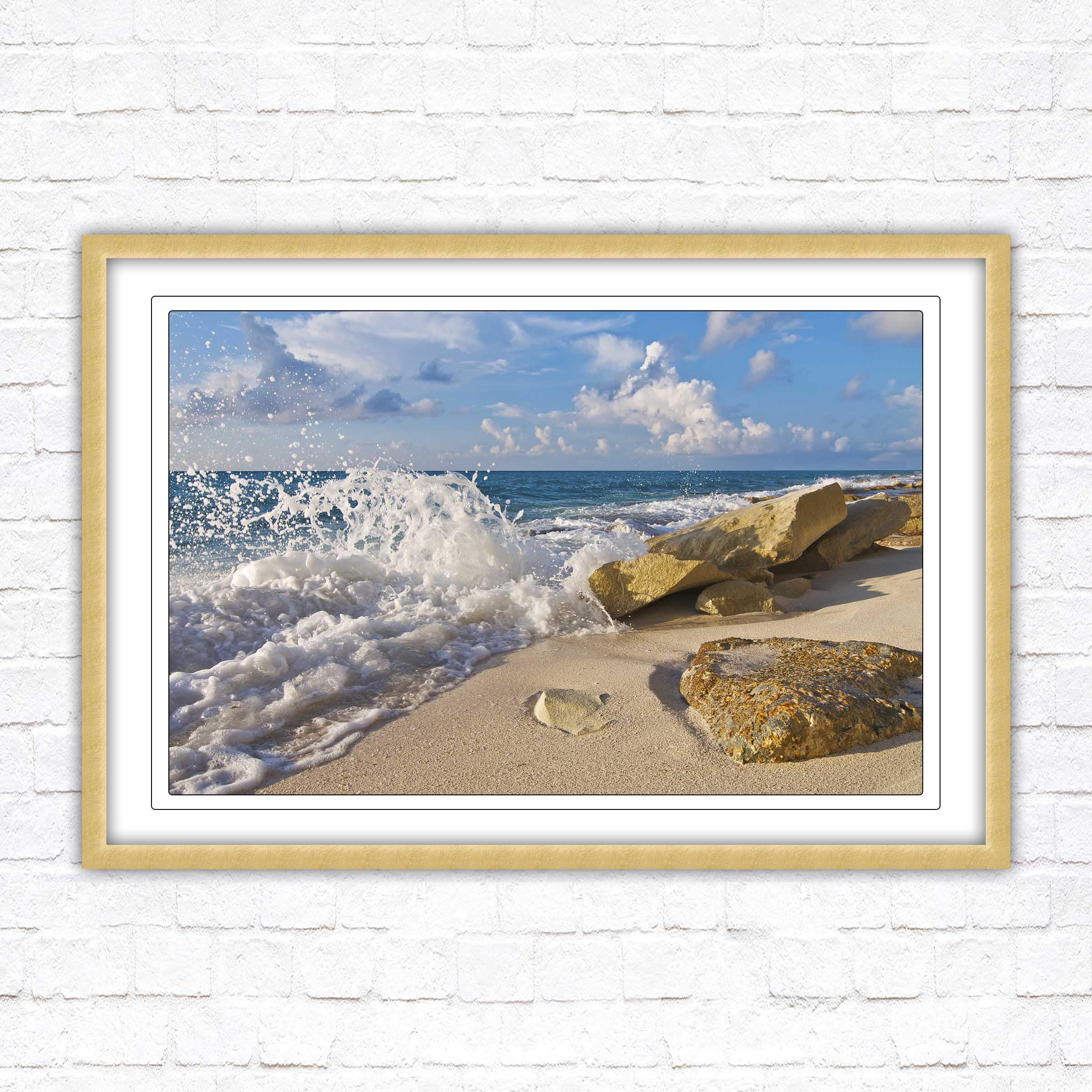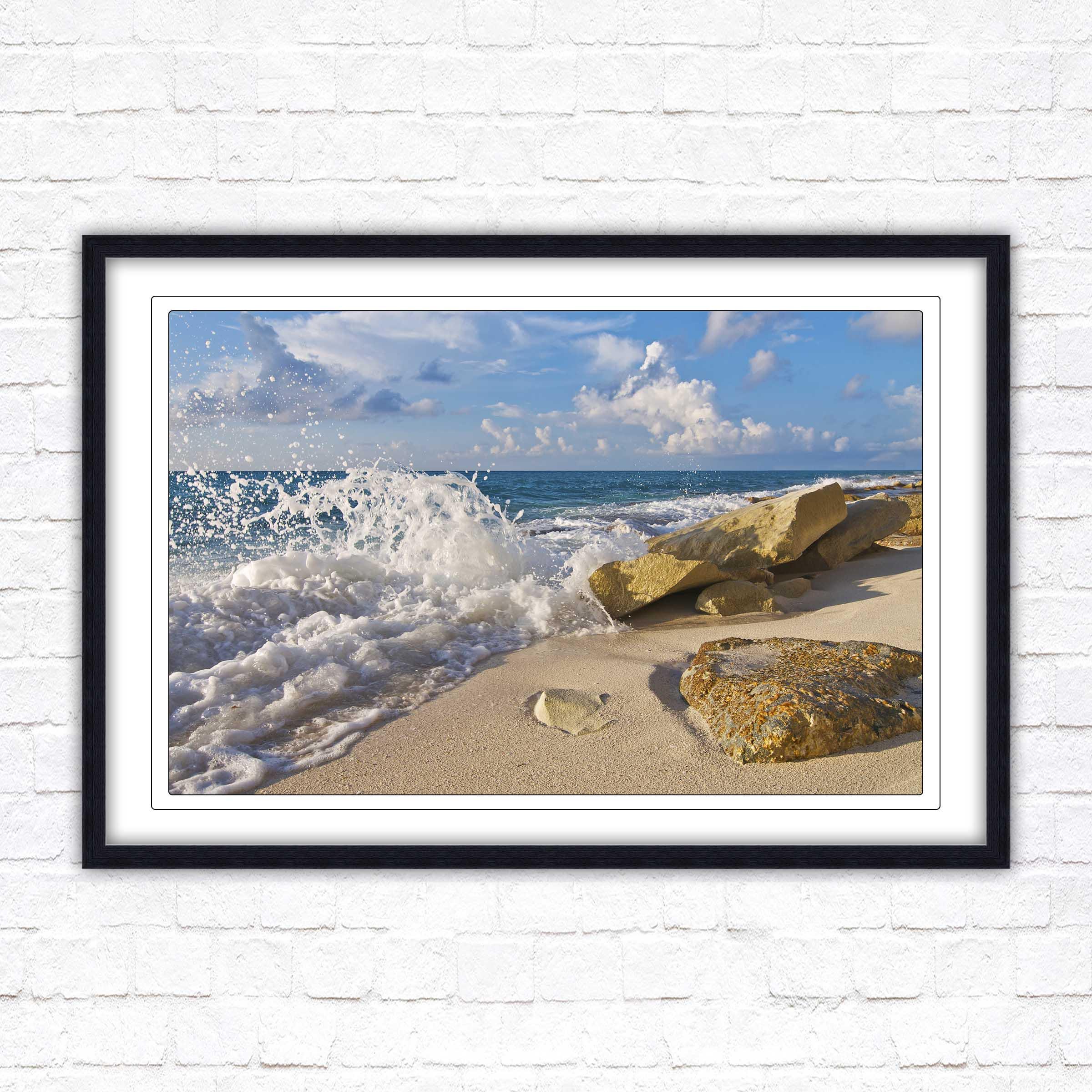 Transform your space with the timeless beauty of the Caribbean! This stunning picture captures the crystal-clear waves crashing over rugged rocks, with golden sands stretching beneath a vibrant, sun-kissed sky. The perfect blend of nature’s power and serene tranquility, this piece transports you straight to paradise.