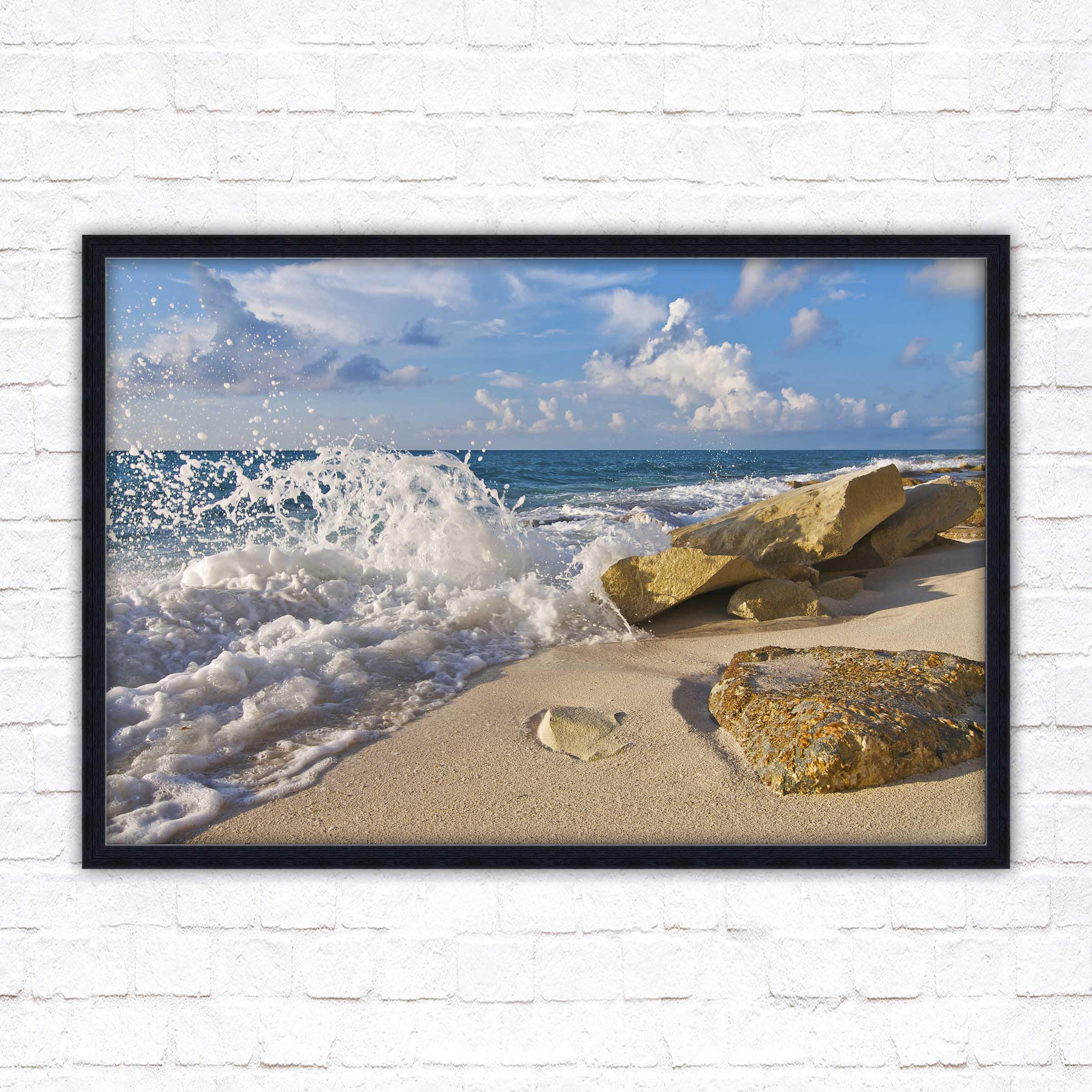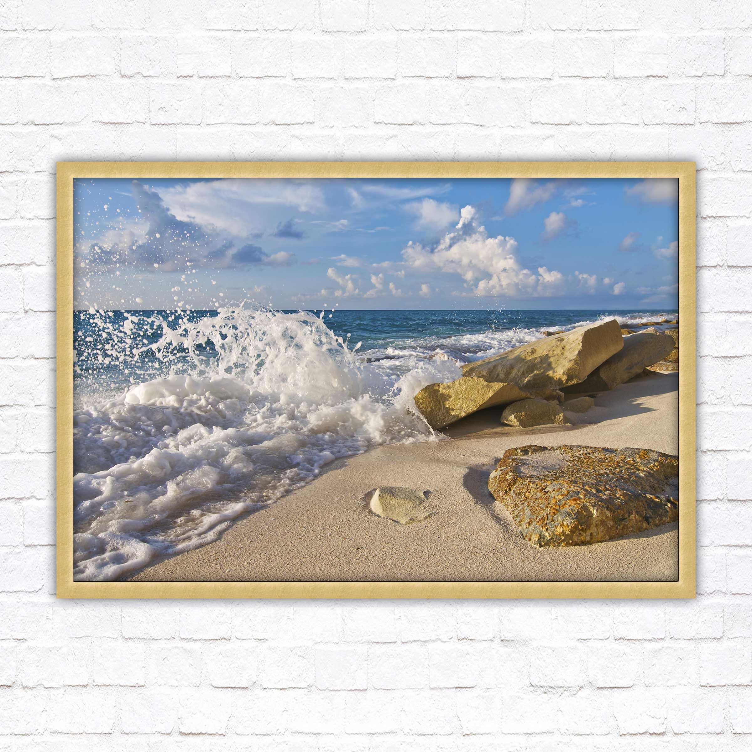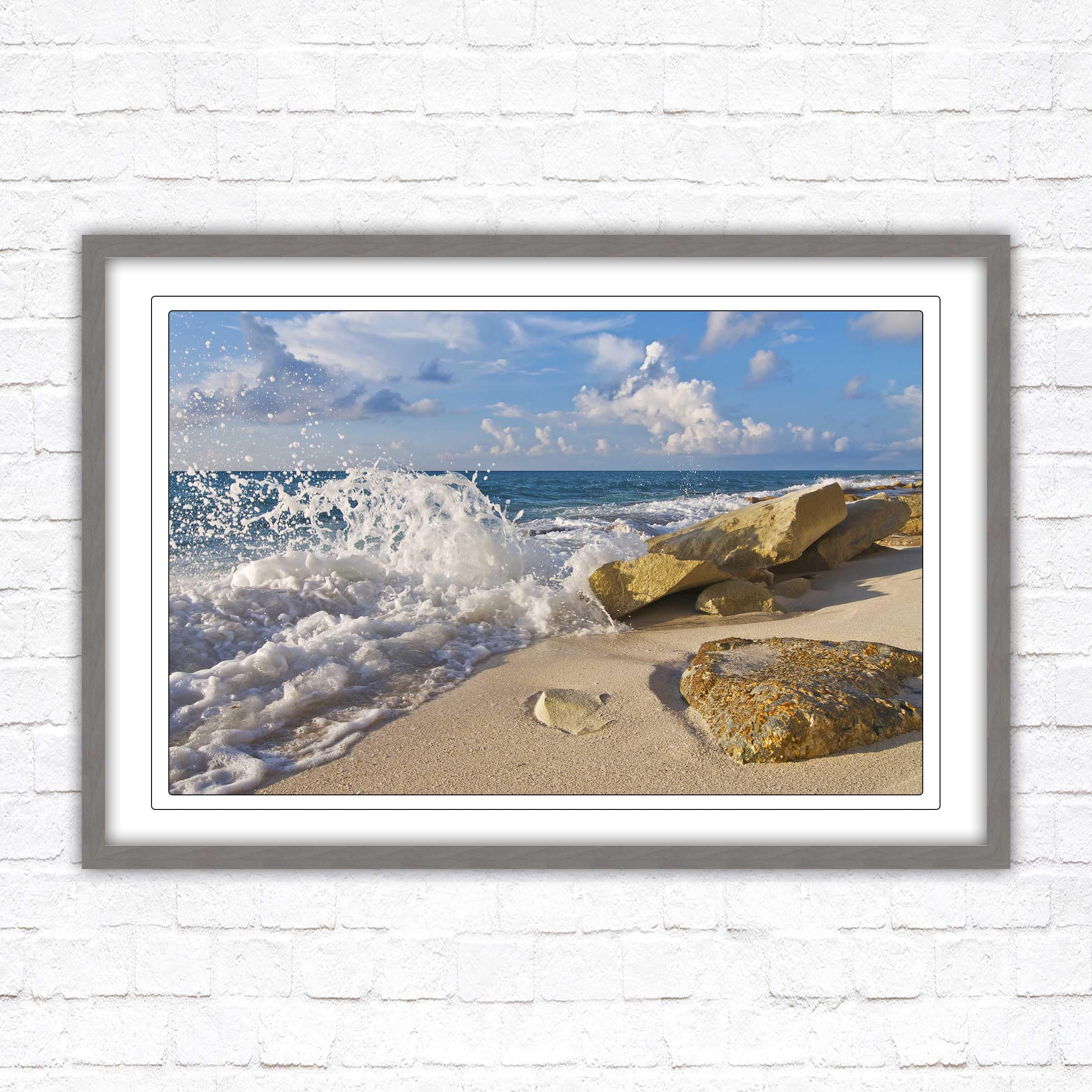 Transform your space with the timeless beauty of the Caribbean! This stunning picture captures the crystal-clear waves crashing over rugged rocks, with golden sands stretching beneath a vibrant, sun-kissed sky. The perfect blend of nature’s power and serene tranquility, this piece transports you straight to paradise.