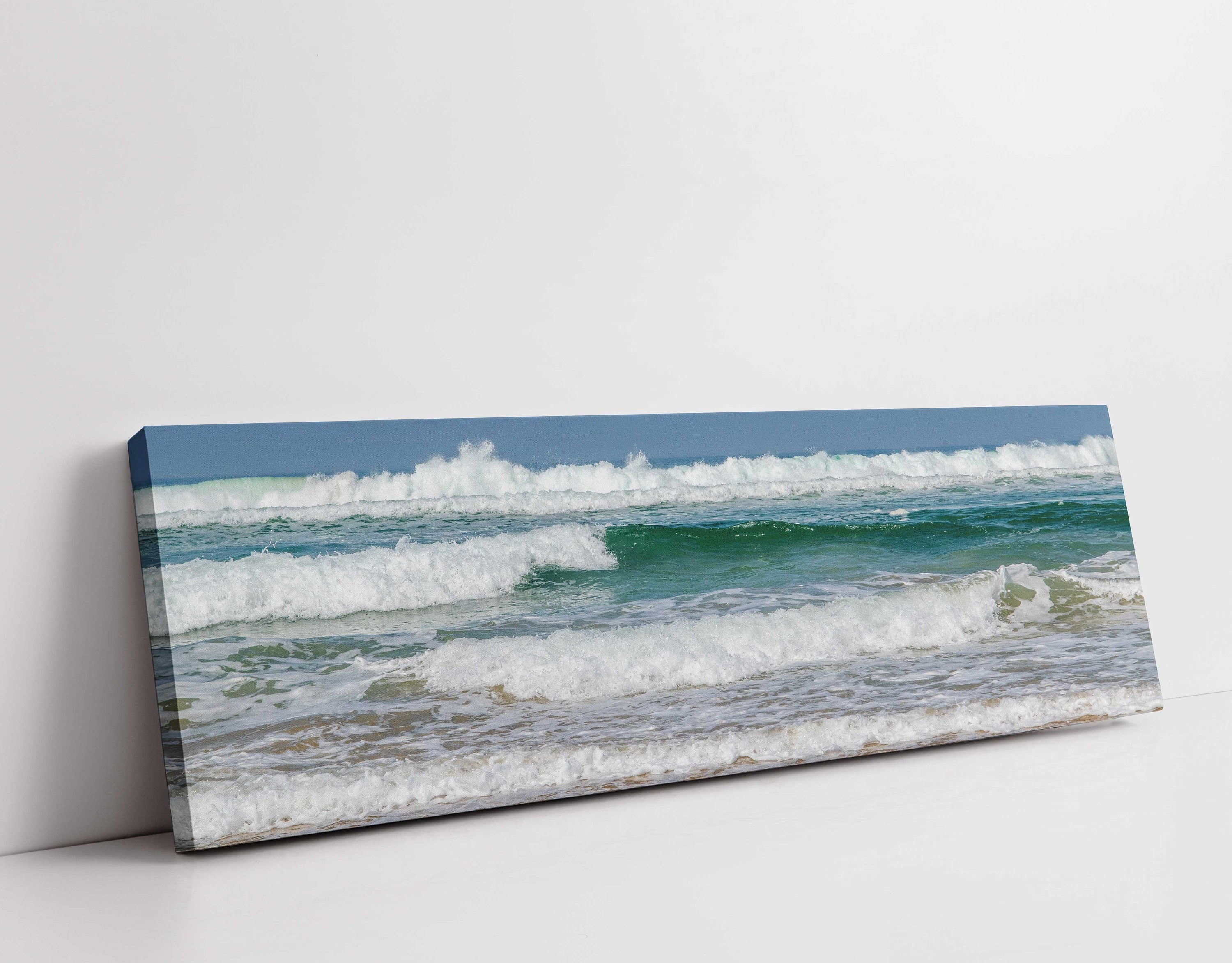 Stunning panoramic of crashing waves in Cornwall. Panoramic canvas picture print. ideal gift. Beautiful colours. Available in a choice of sizes to order.