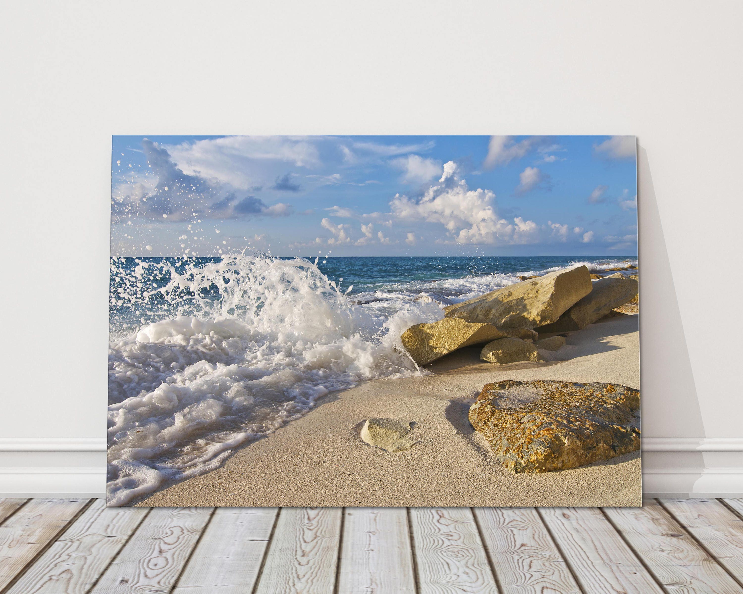 Waves splashing on beach Canvas Print Wall sunny day bright vibrant seascape