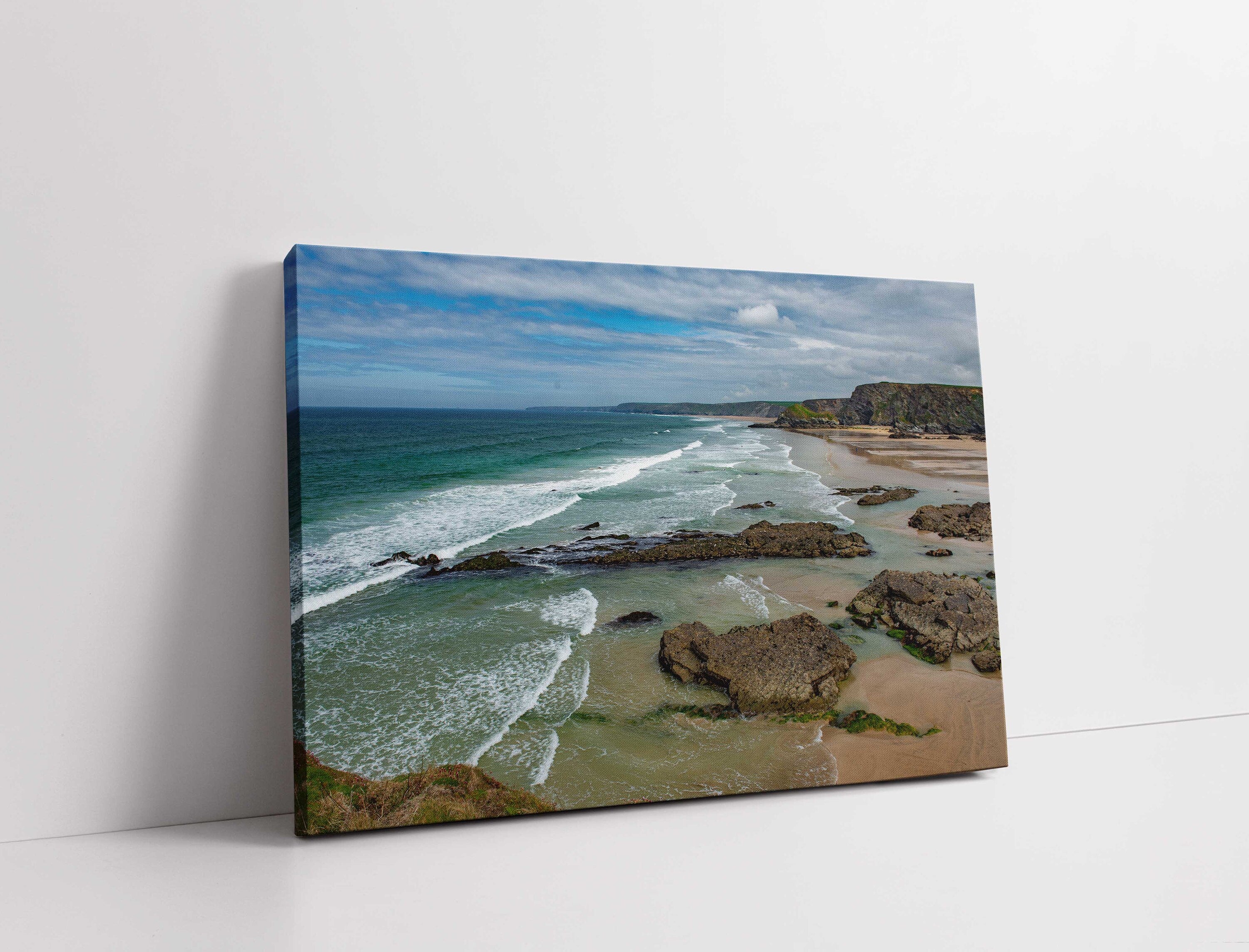 Whipsiderry Beach and Watergate Bay, North Cornwall. Canvas picture print. Available in a choice of sizes to order.