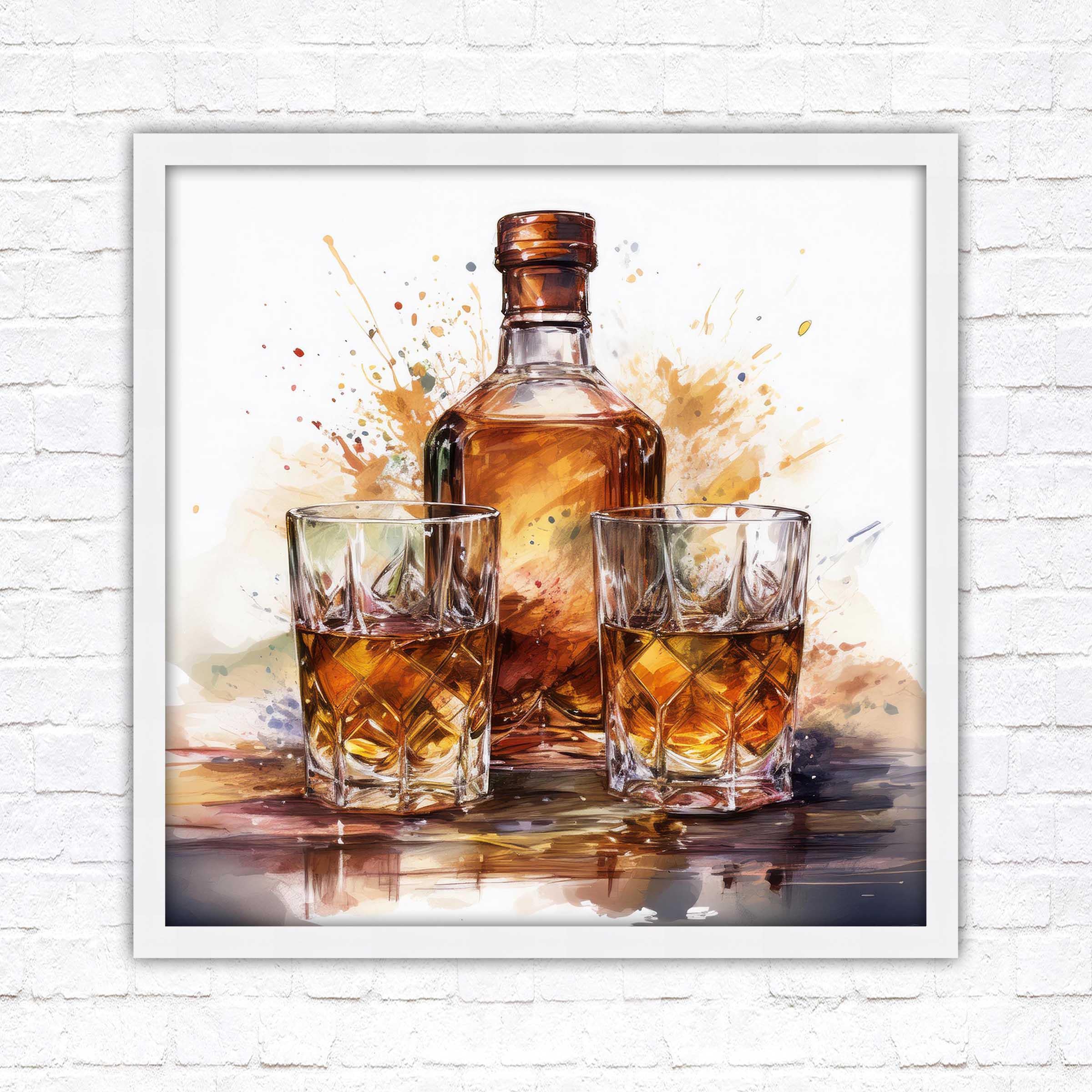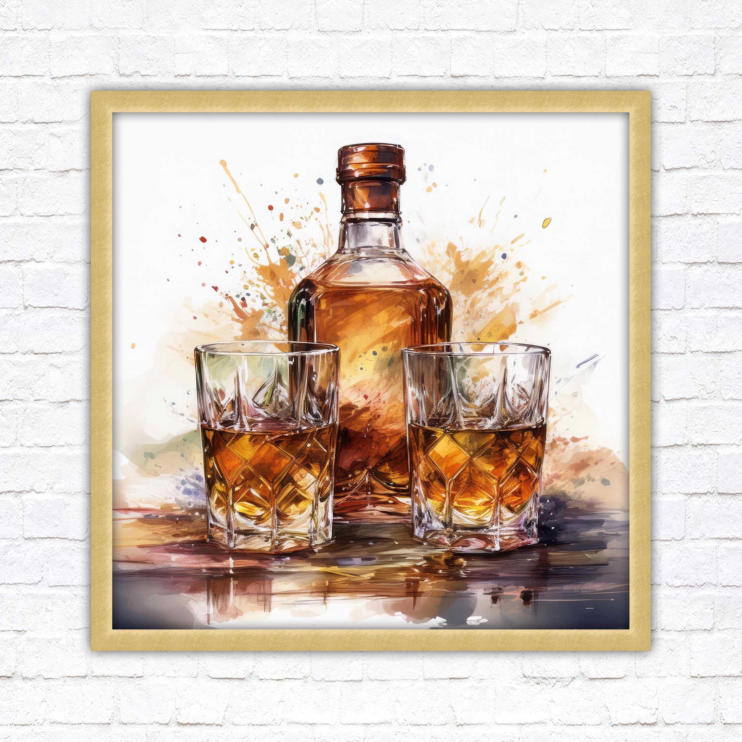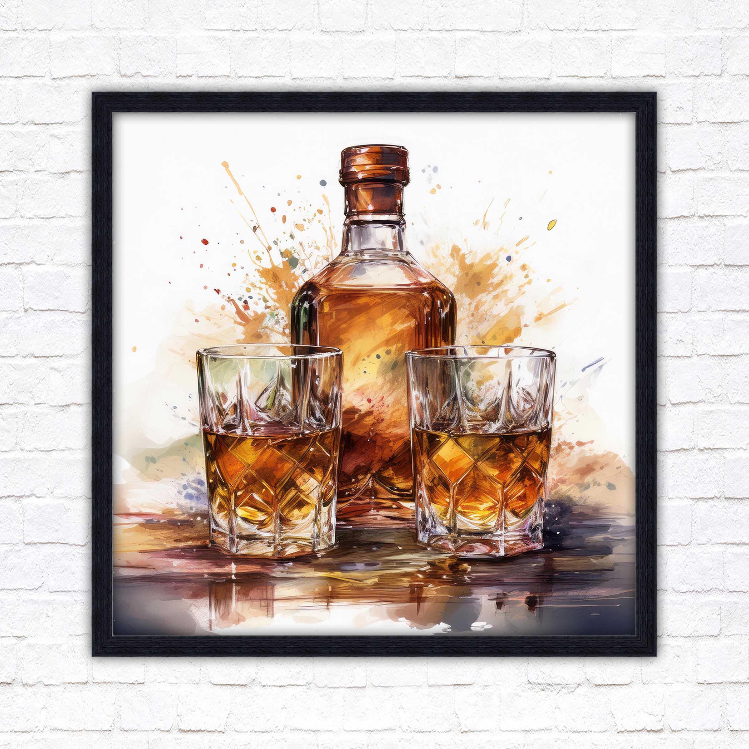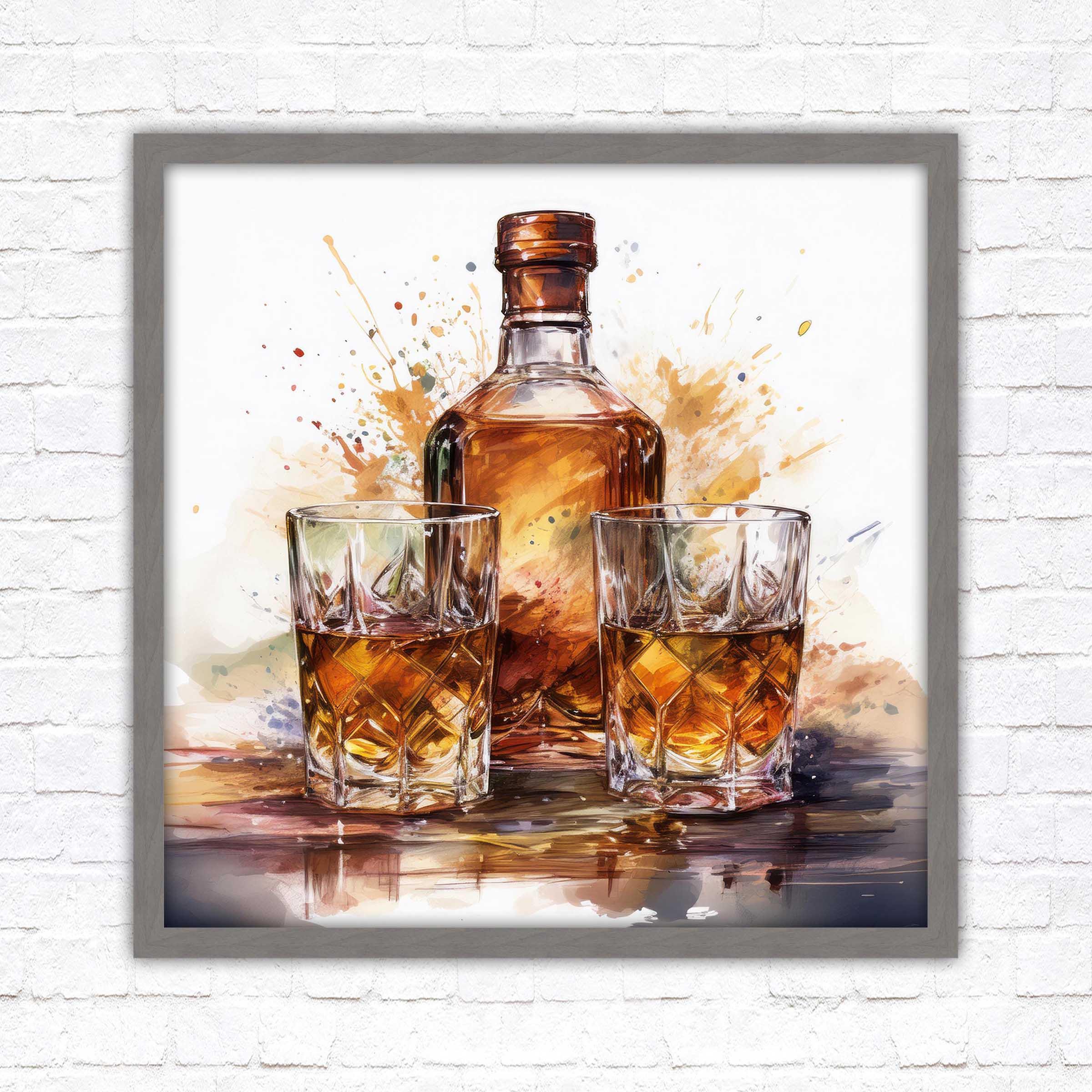 Timeless Elegance: The rich, vibrant tones of the whiskey bottle and glasses evoke warmth and charm, making it a statement piece that blends seamlessly with both modern and classic décor.