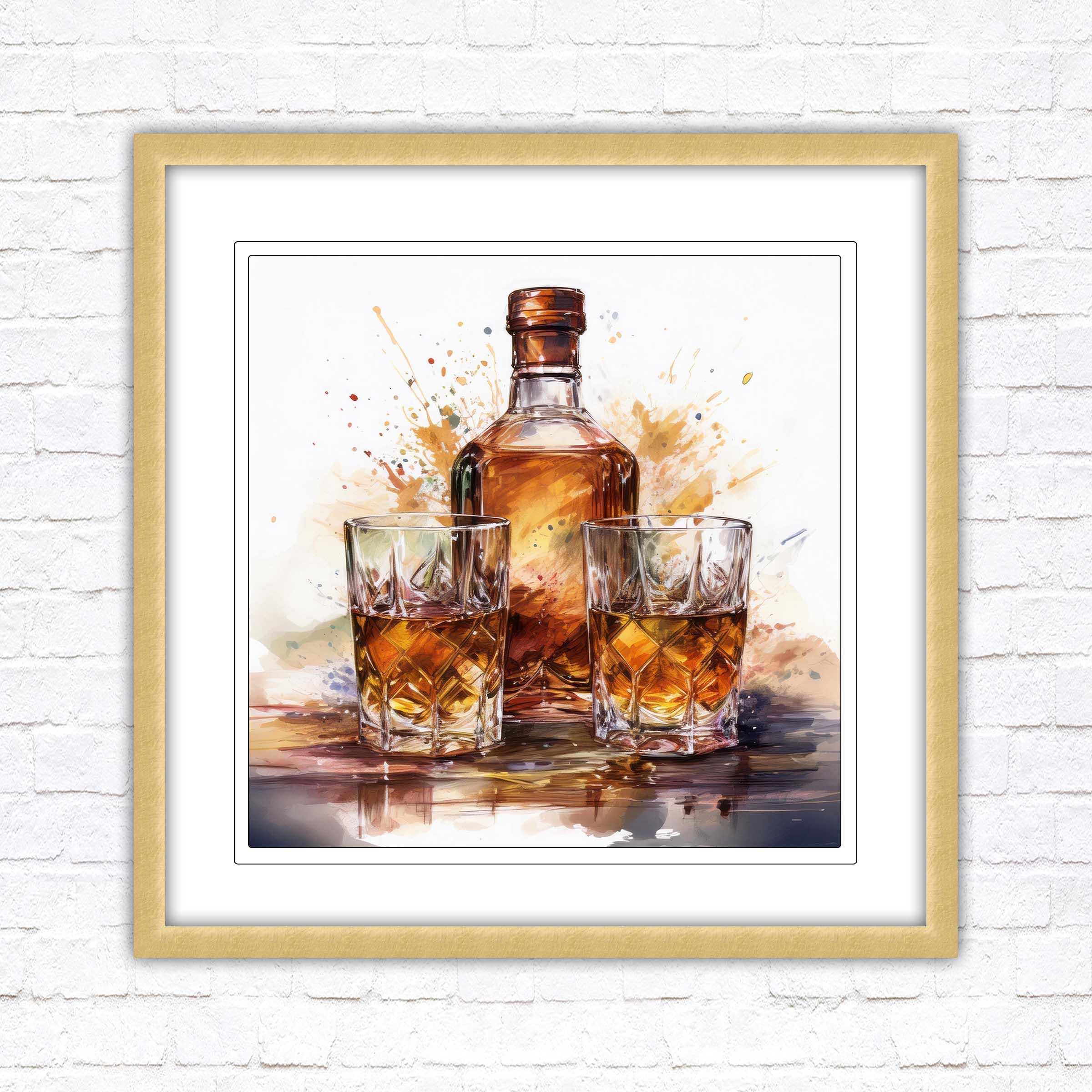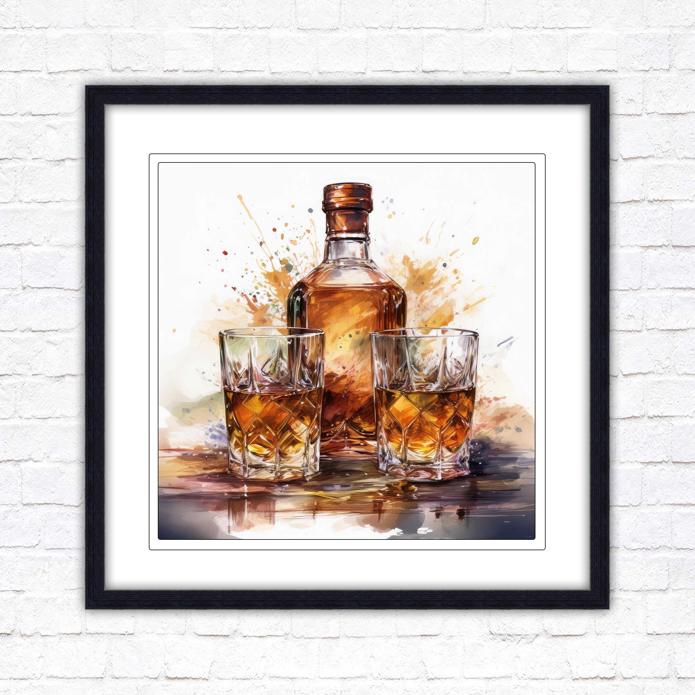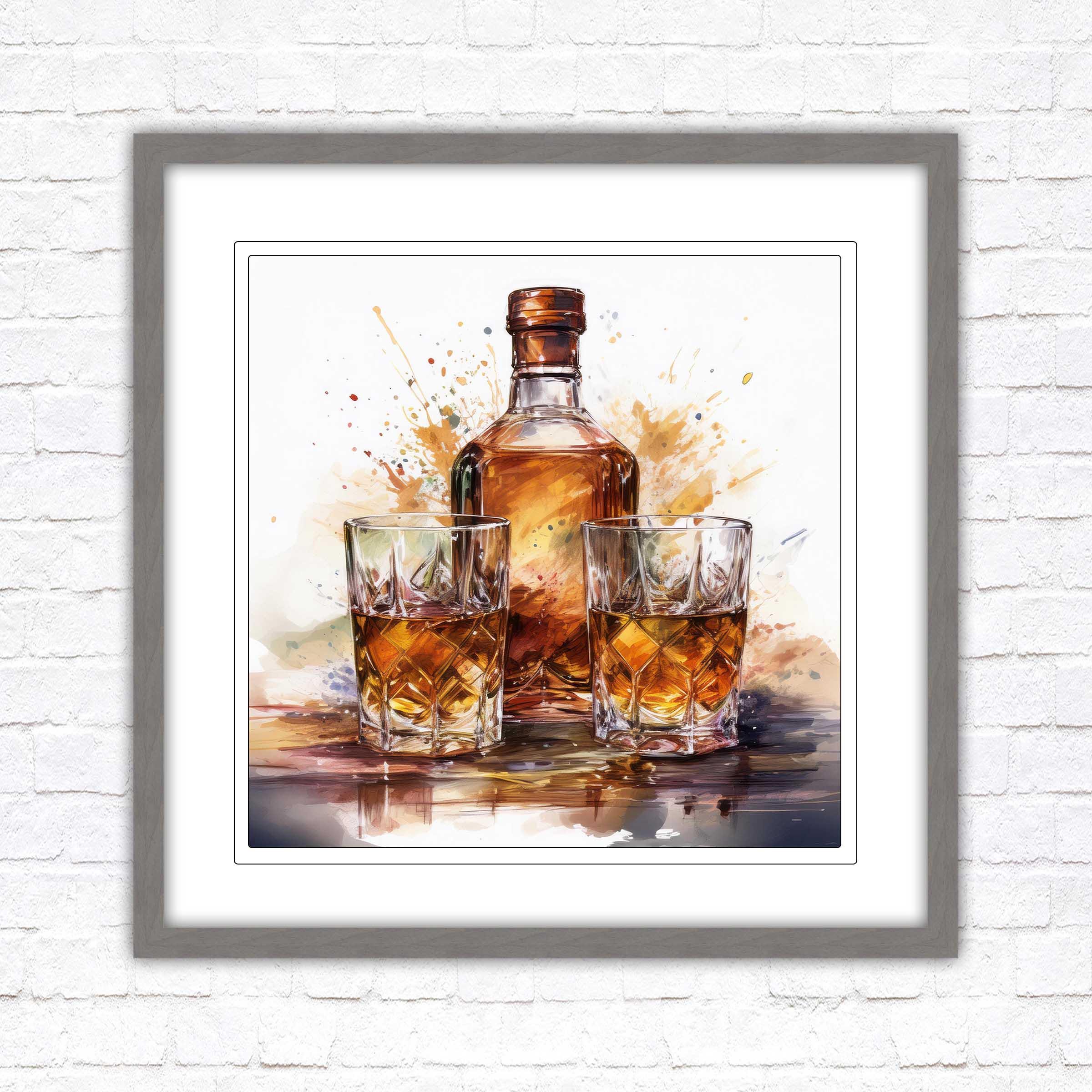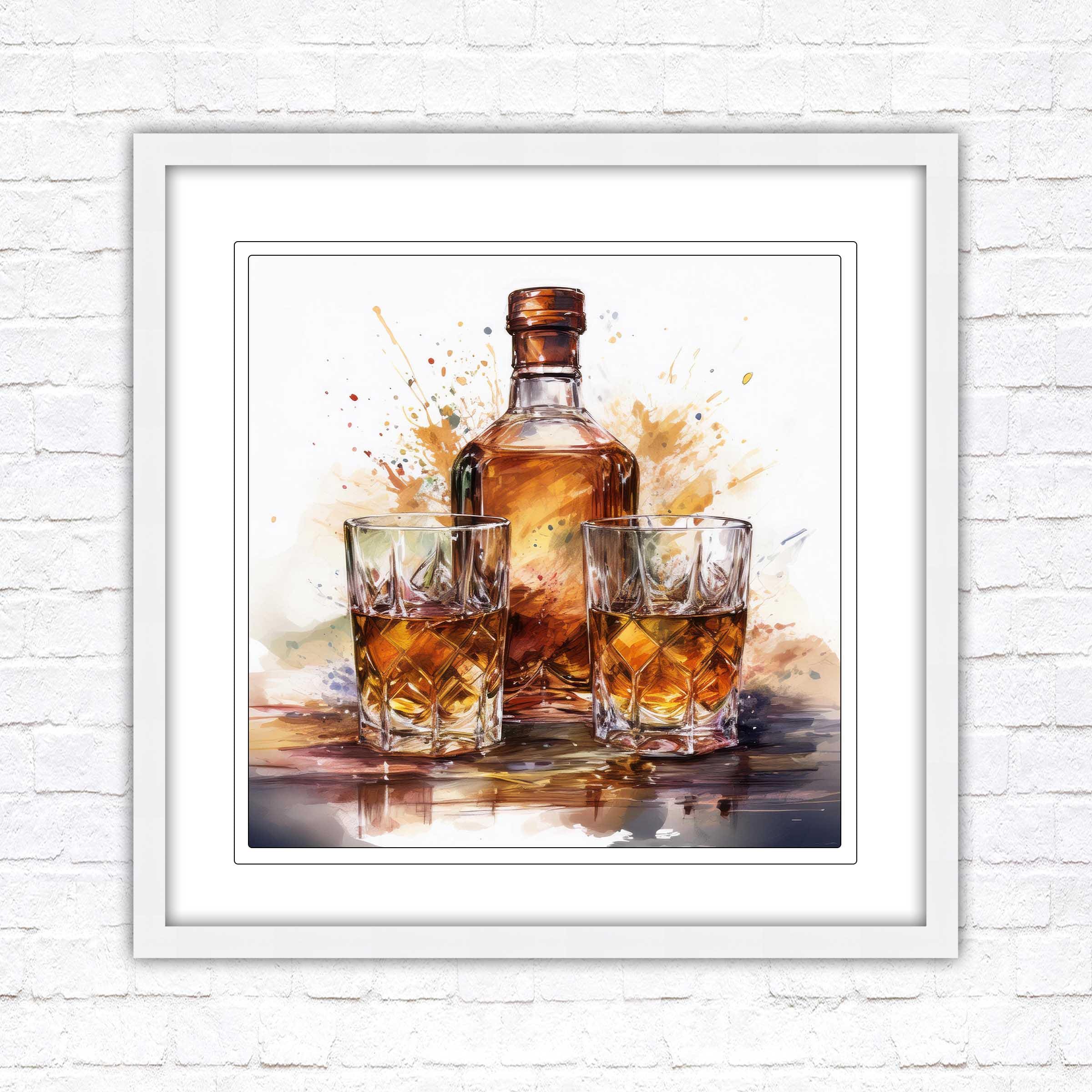 Timeless Elegance: The rich, vibrant tones of the whiskey bottle and glasses evoke warmth and charm, making it a statement piece that blends seamlessly with both modern and classic décor.