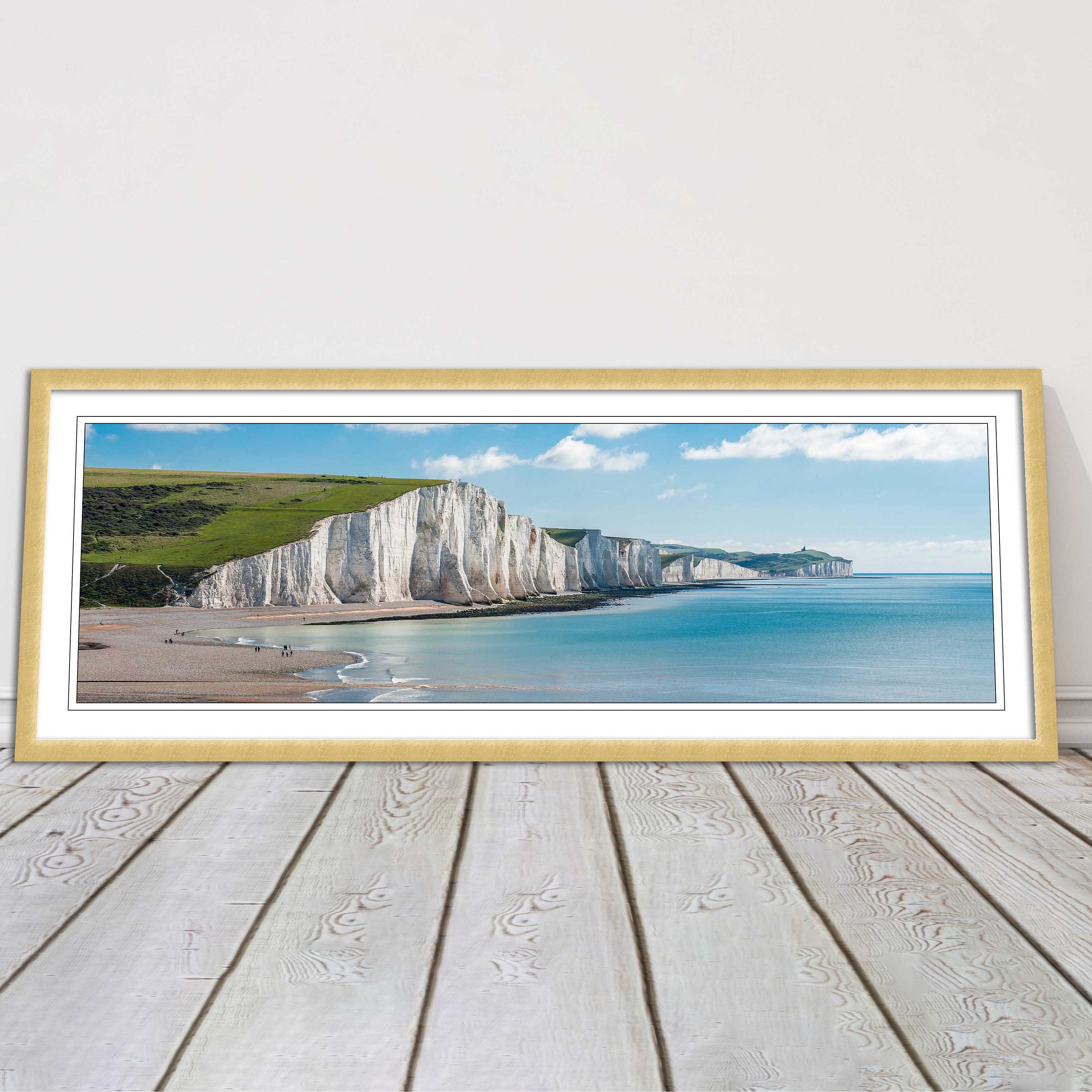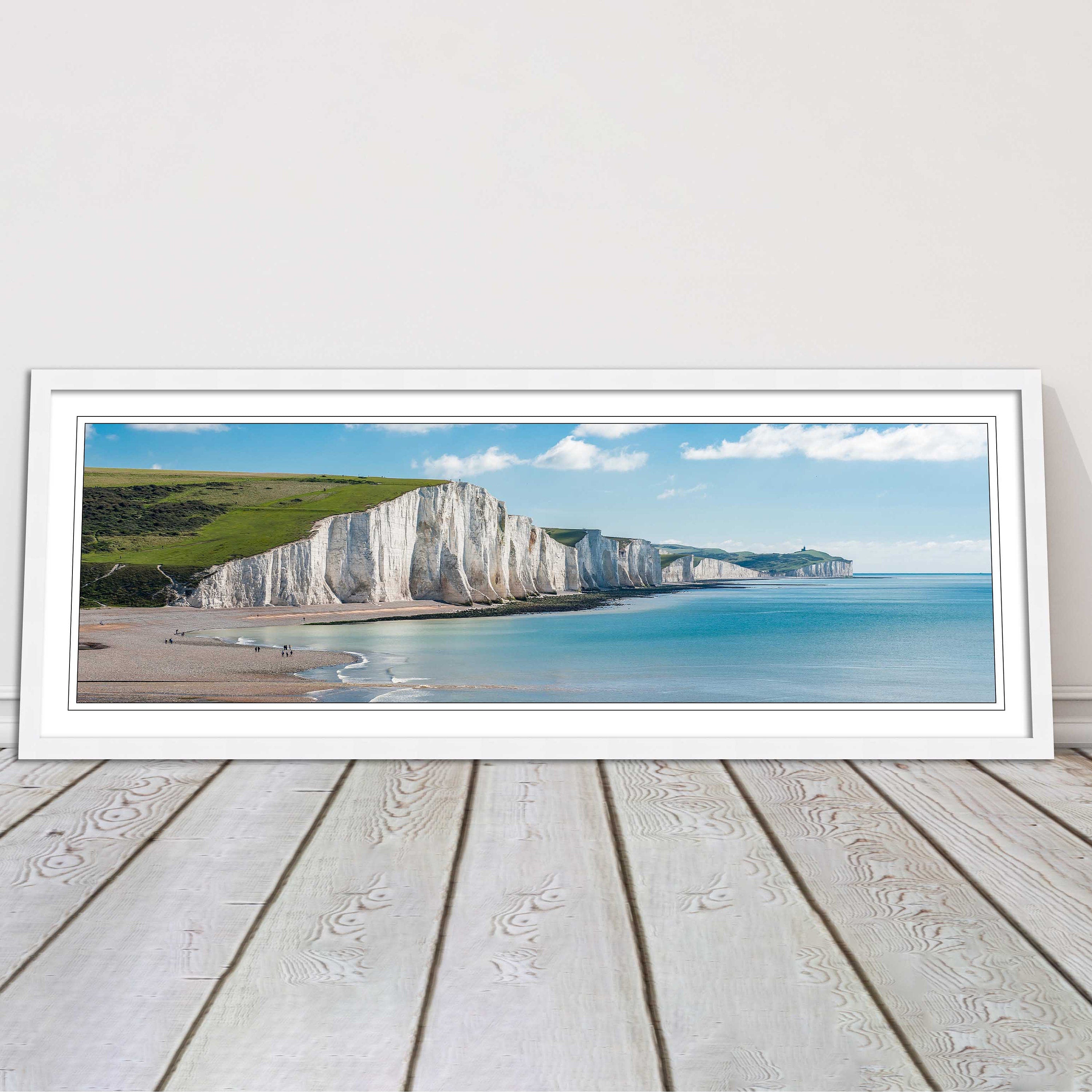 A beautiful panoramic framed picture of White Cliffs. Seven Sisters National Park.