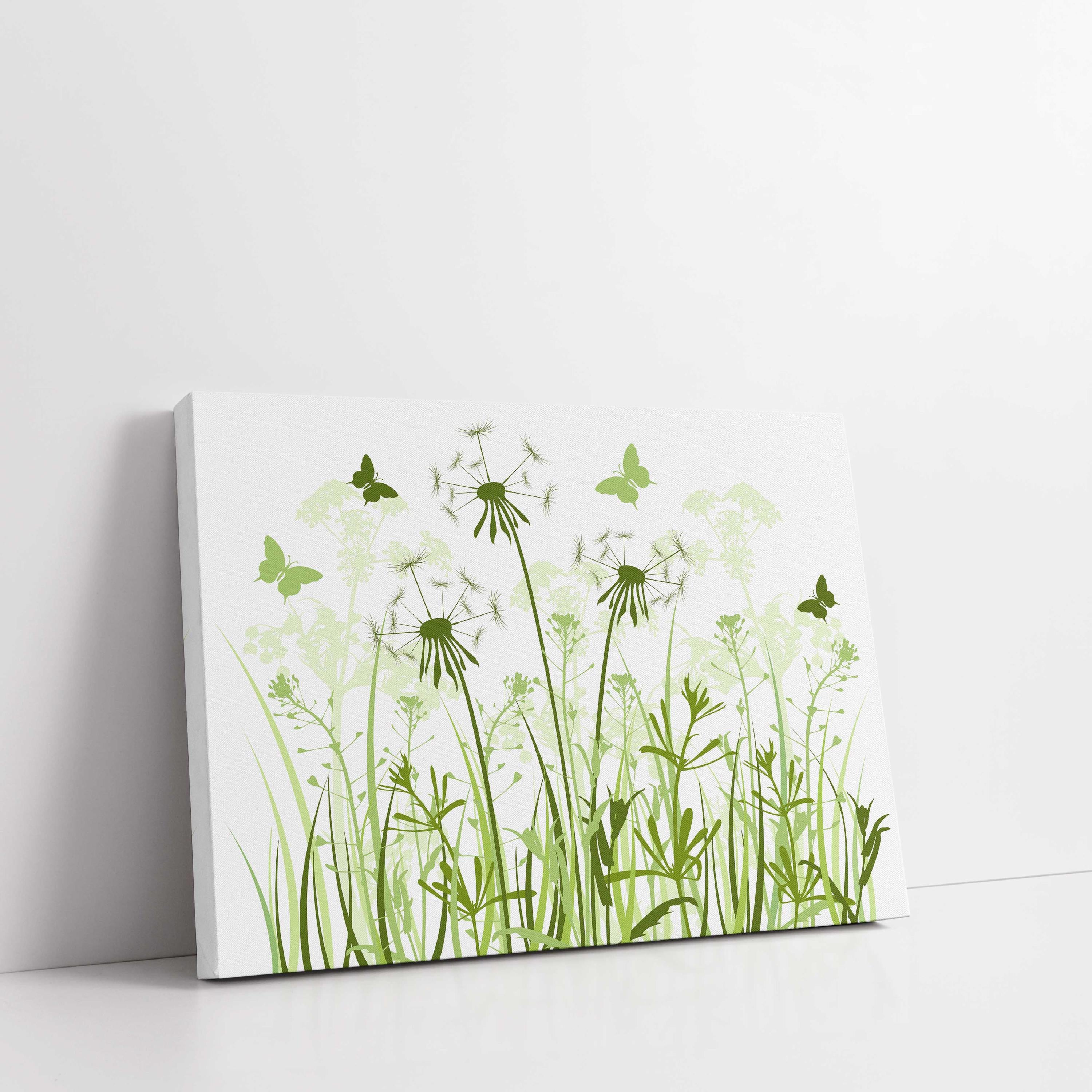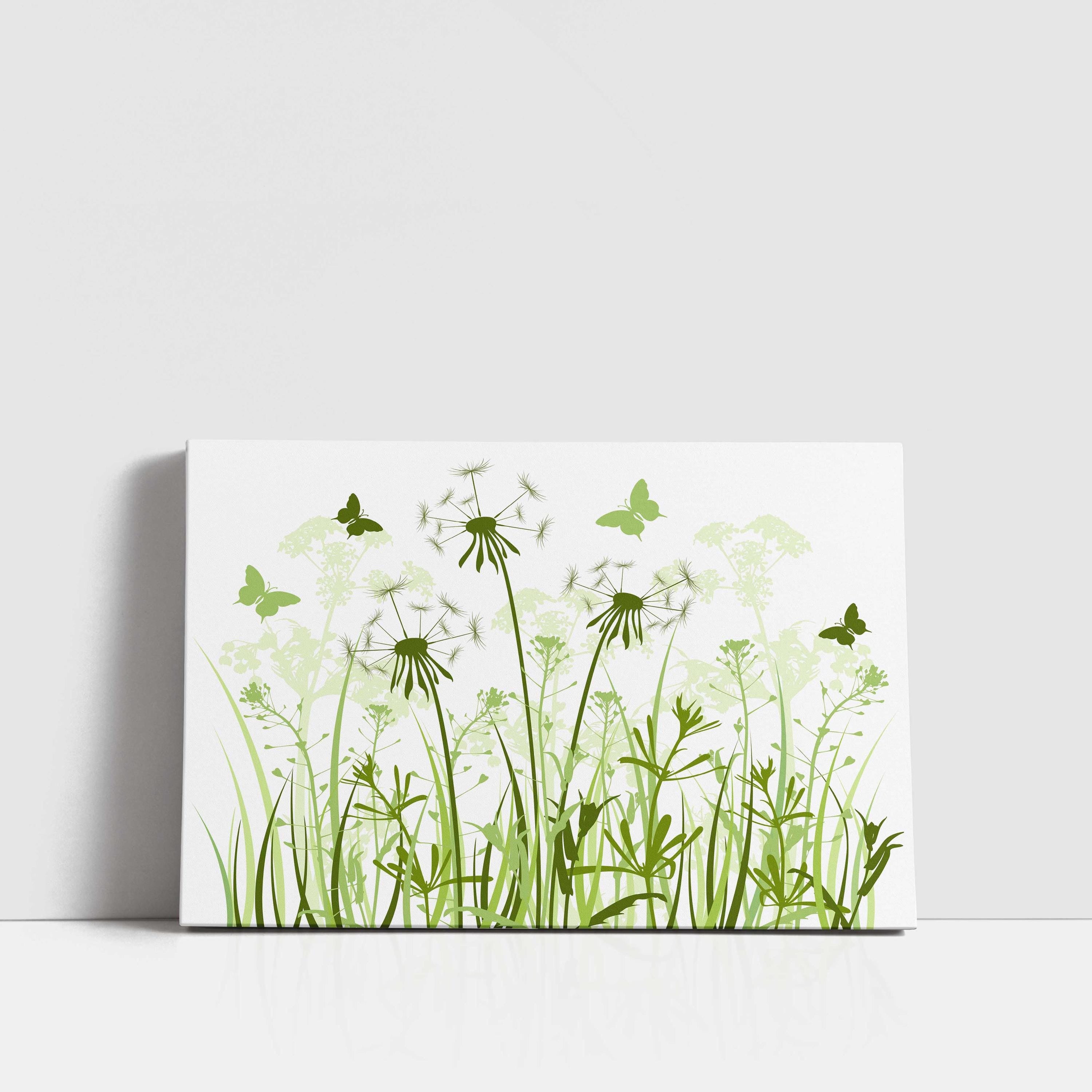 Wild flowers and butterflies, green grasses. Canvas Print, Wall art for home or office (Interior Decor) green. Ideal gift. Image 1.