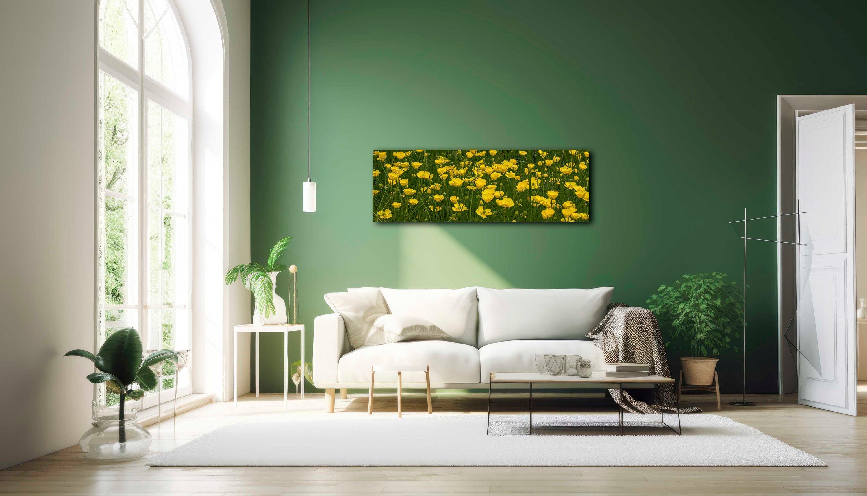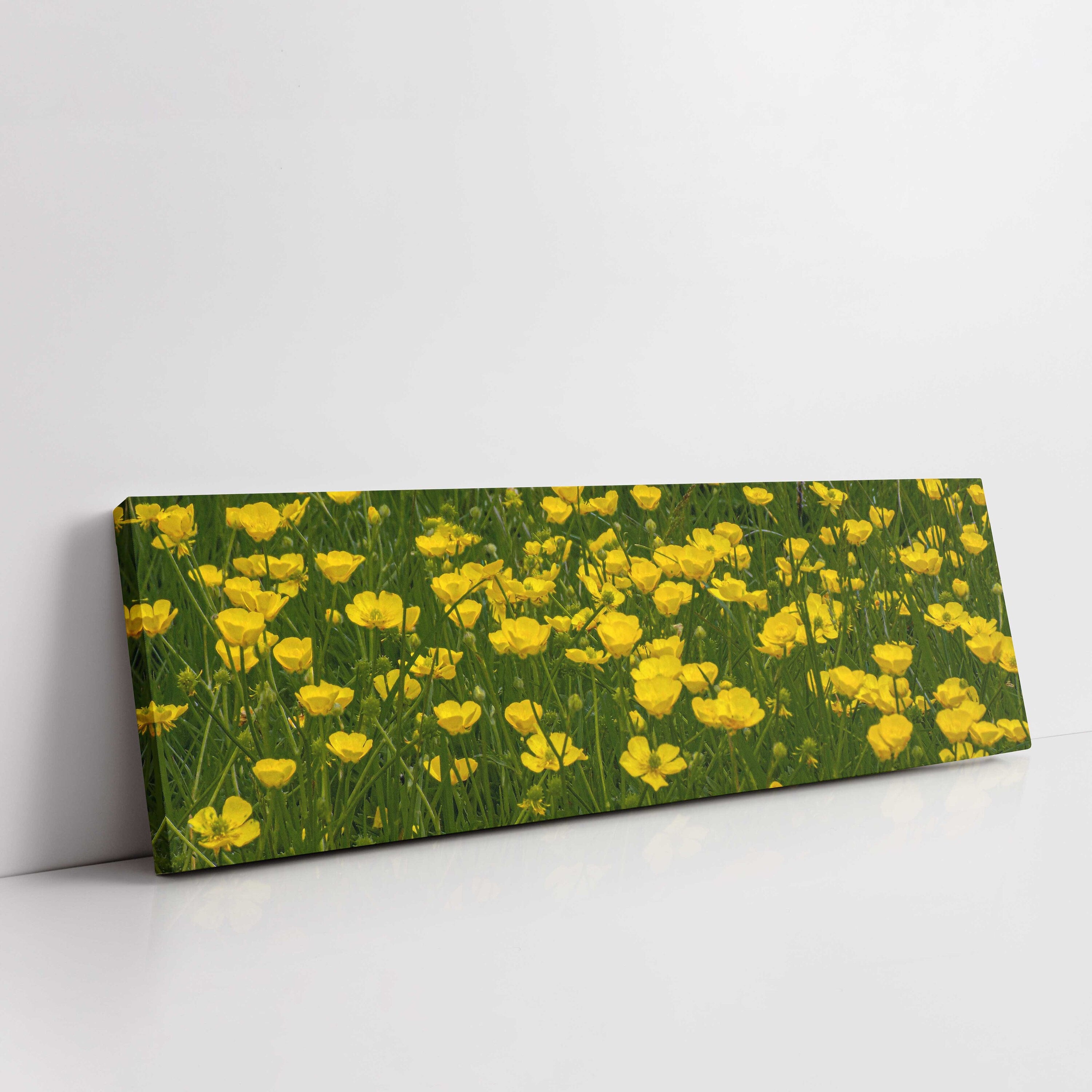 Wild Flowers, yellow buttercups. Panoramic canvas picture print. Sizes available suit any home decor. Bright spring/summer colours.