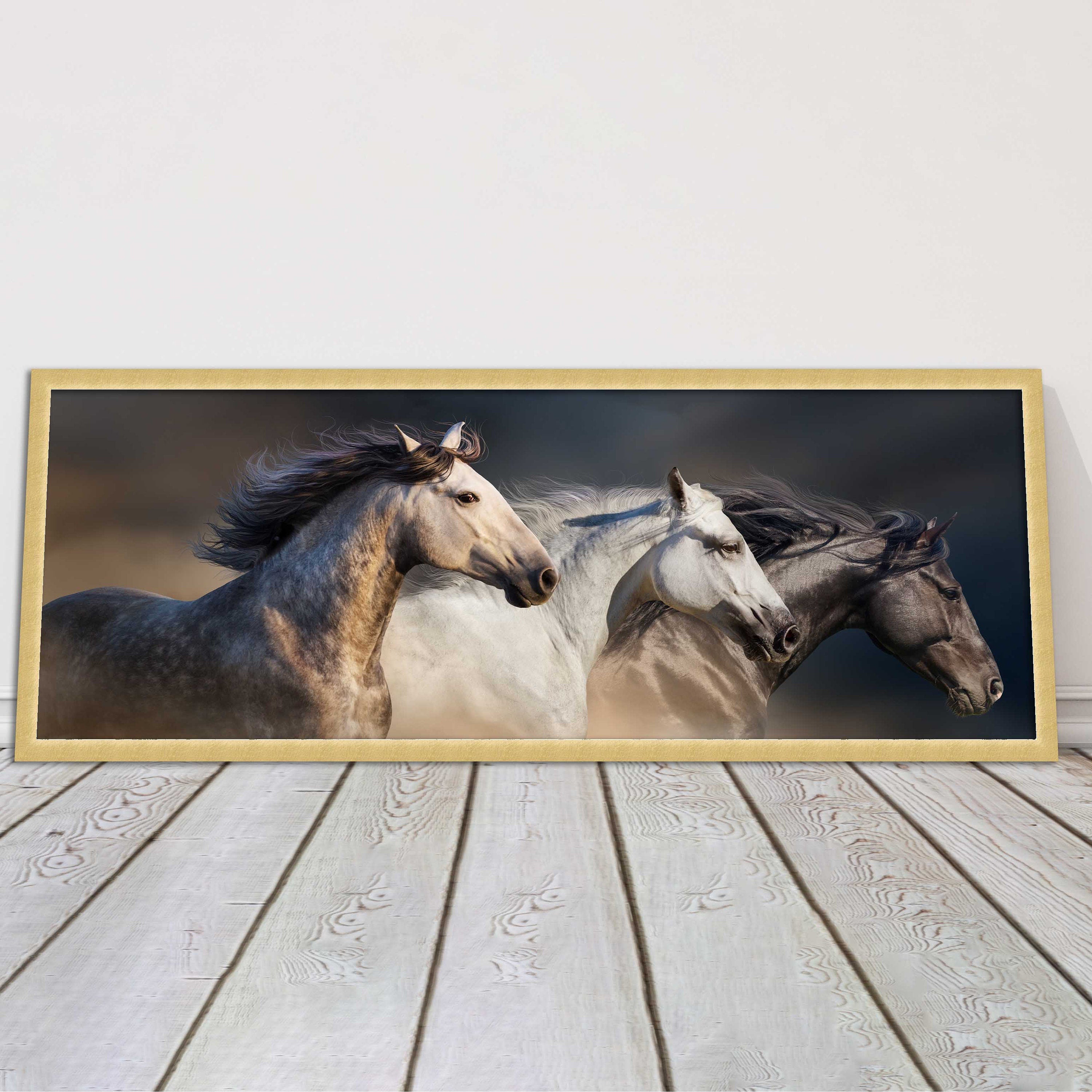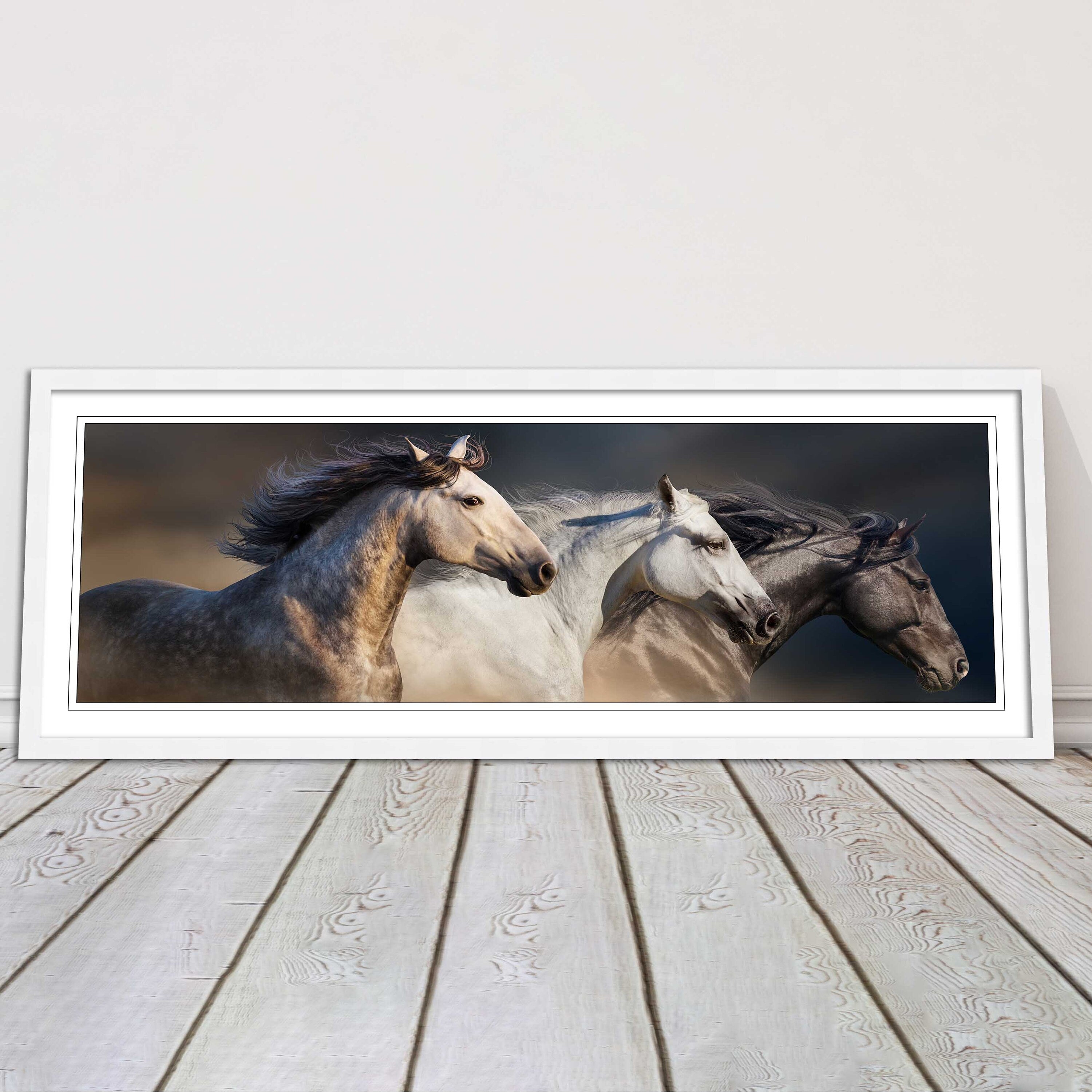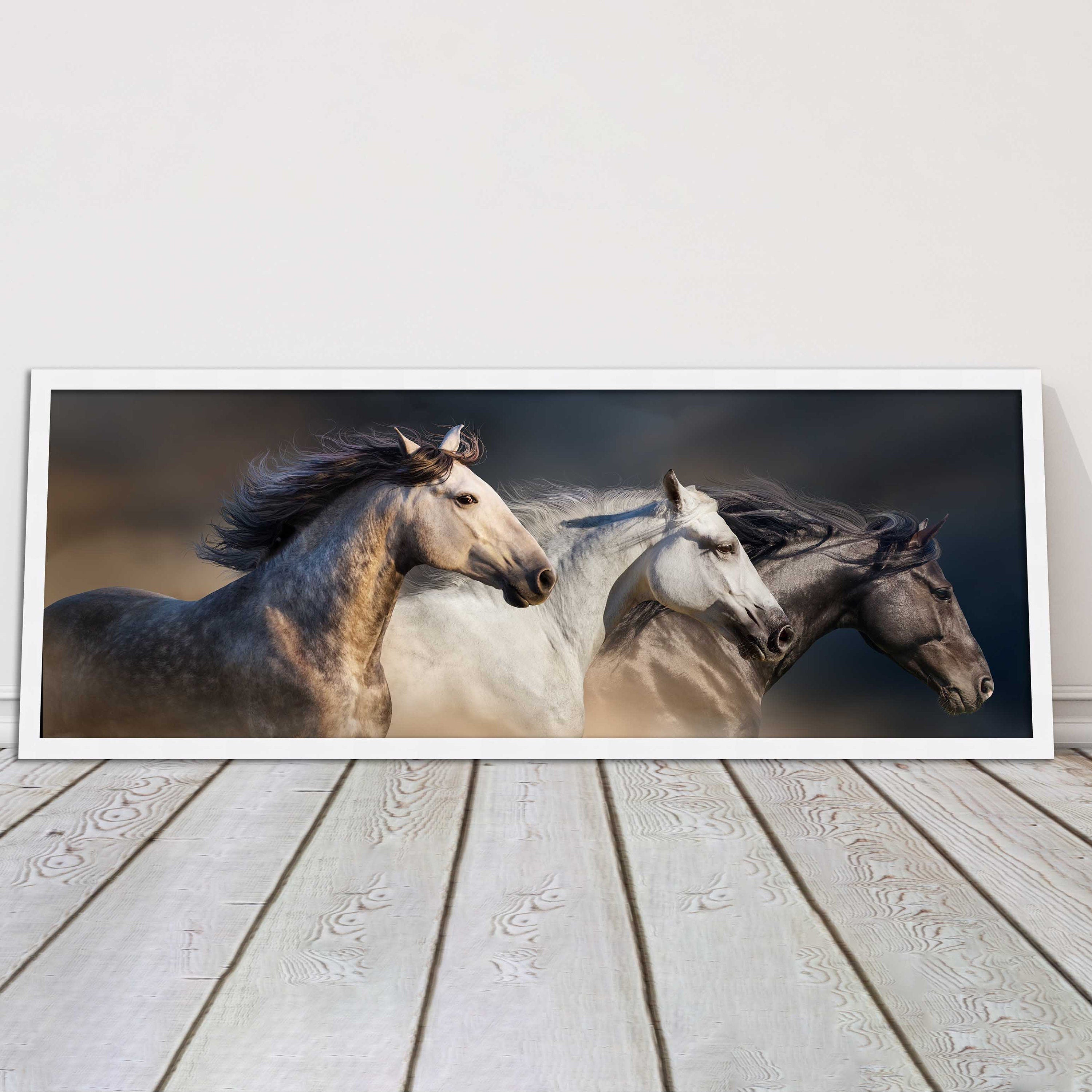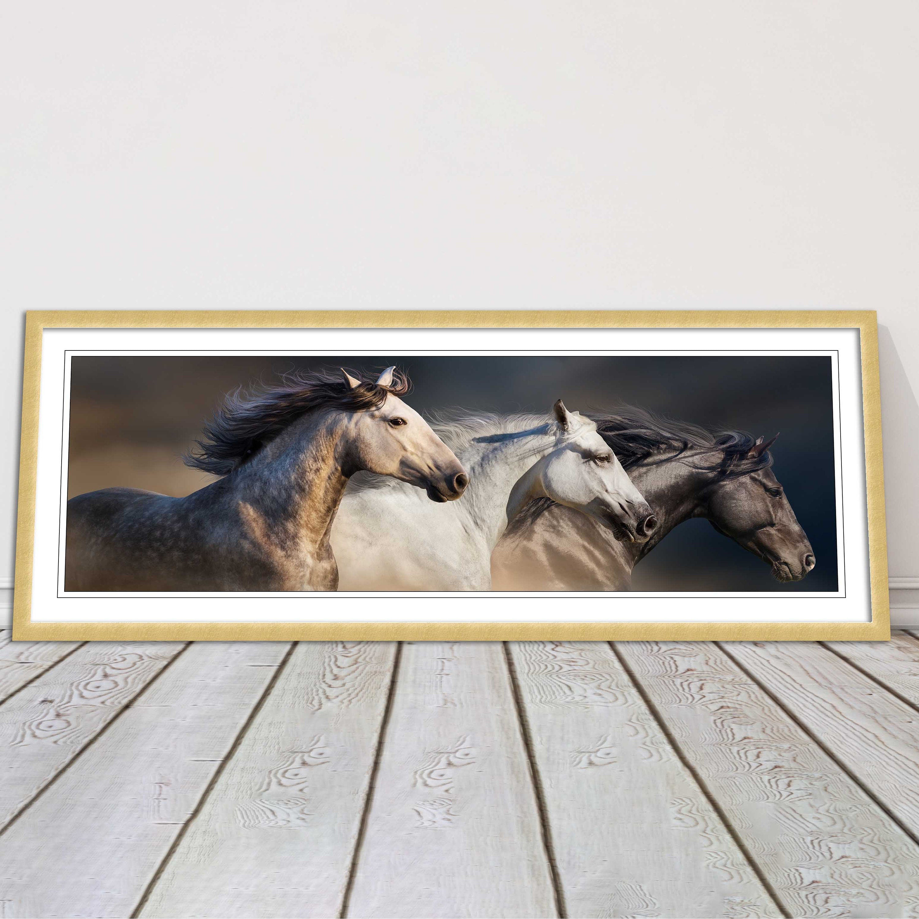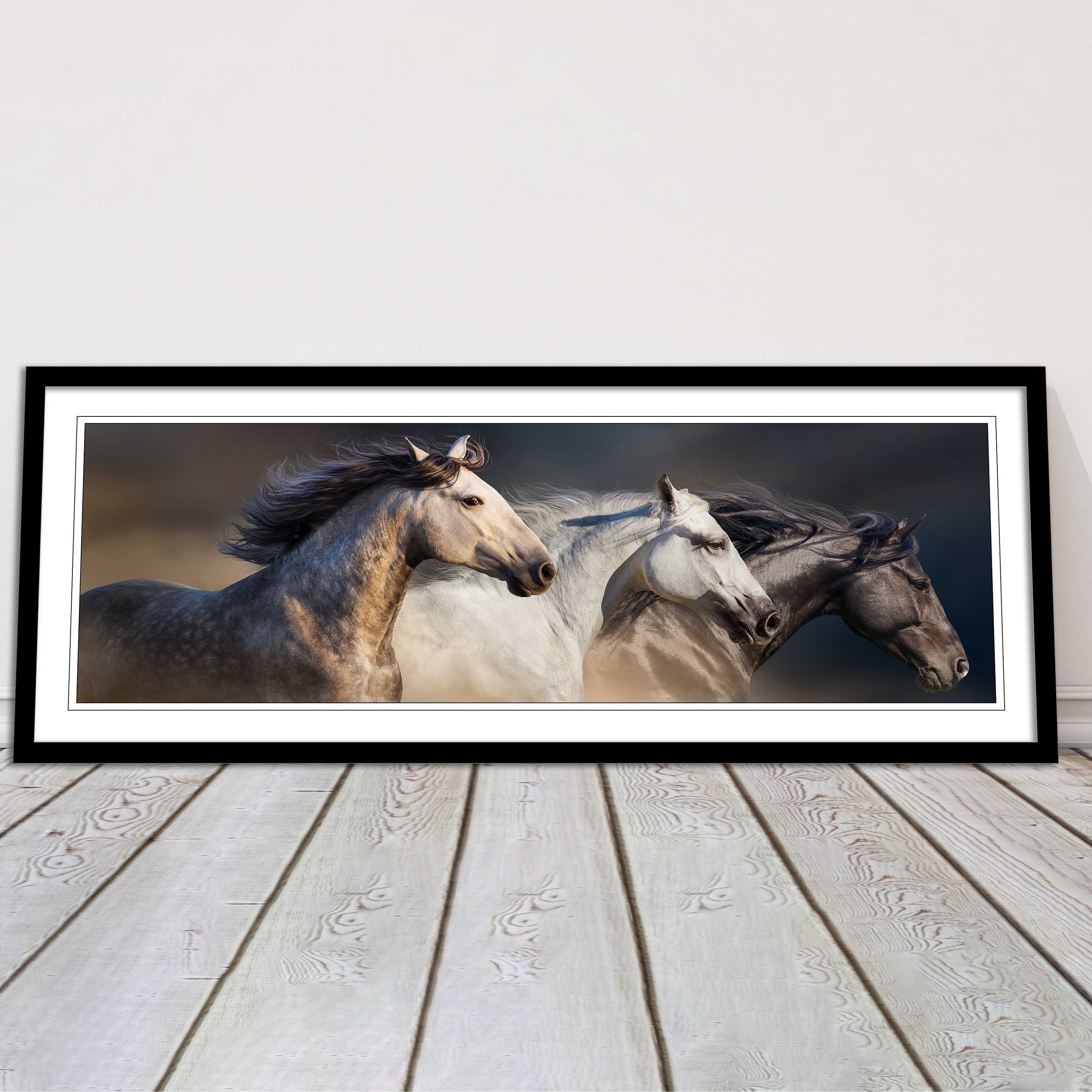 A beautiful panoramic framed picture of 3 Wild Horses. A choice of frames available.