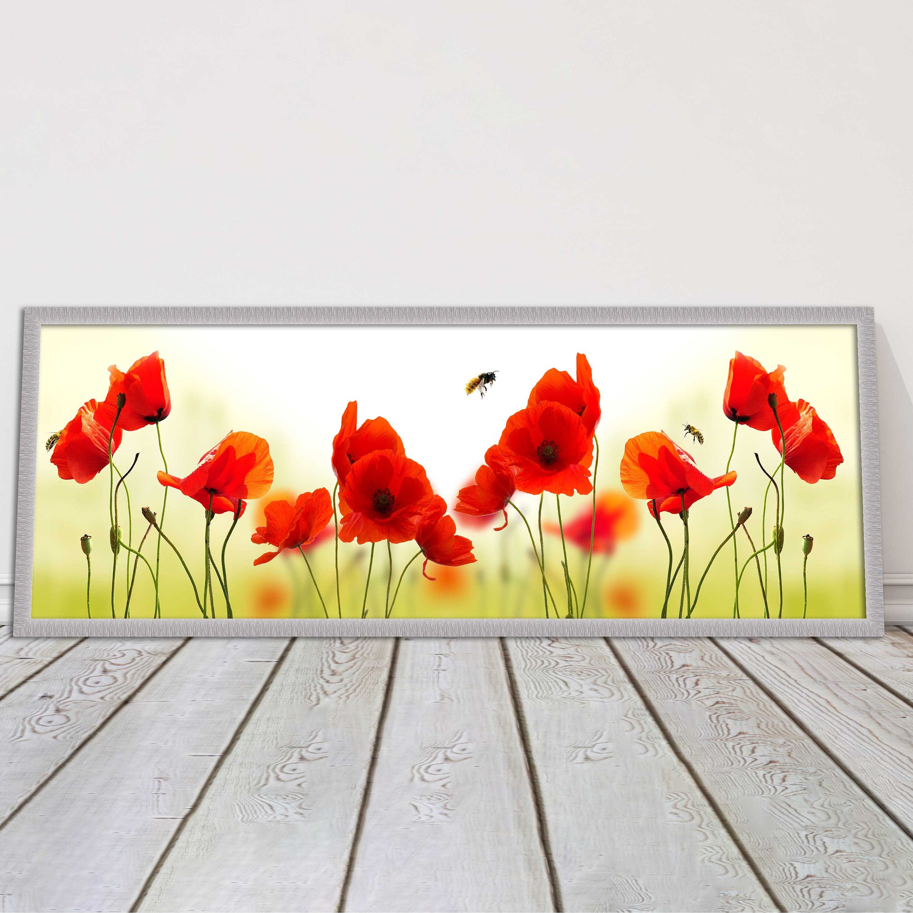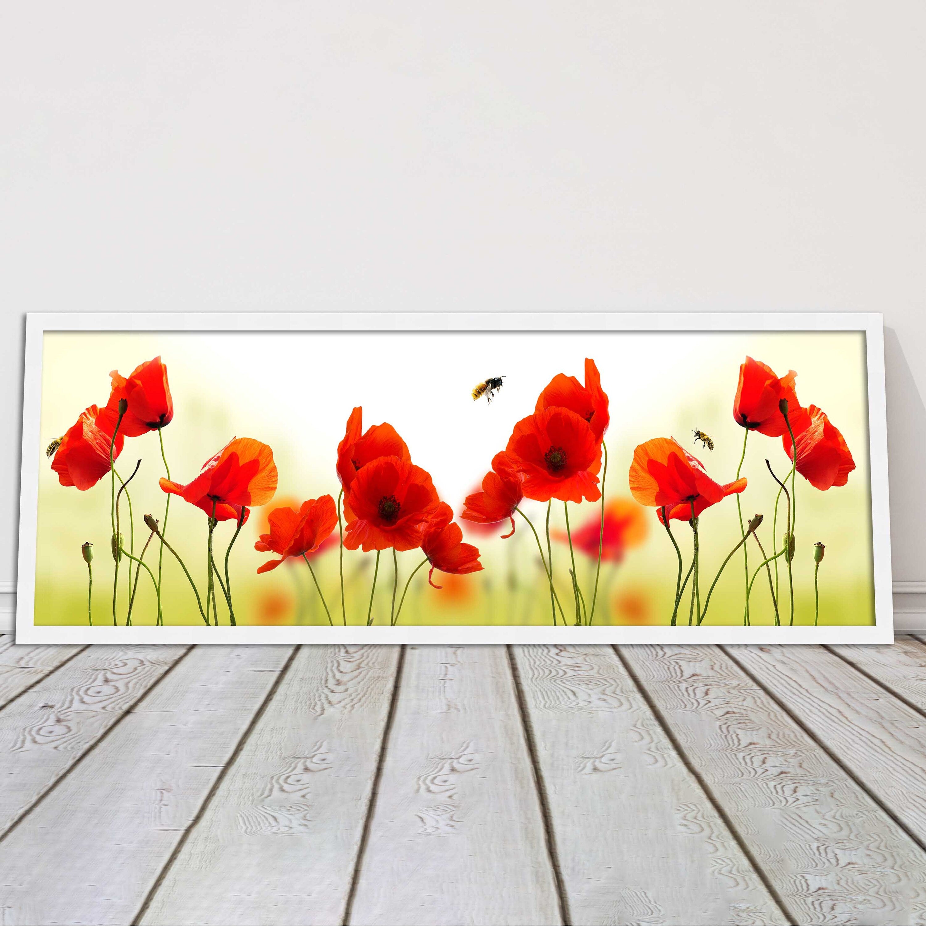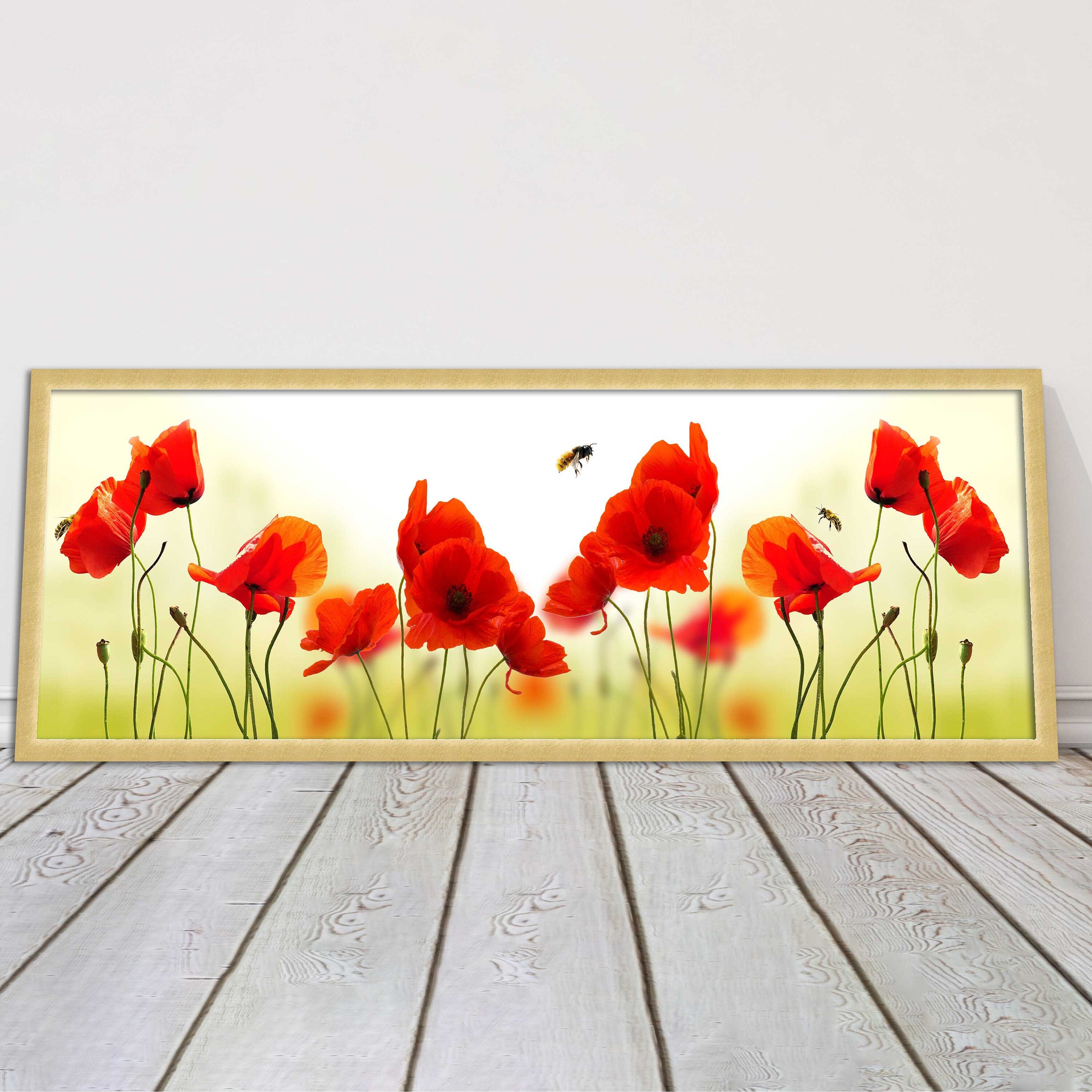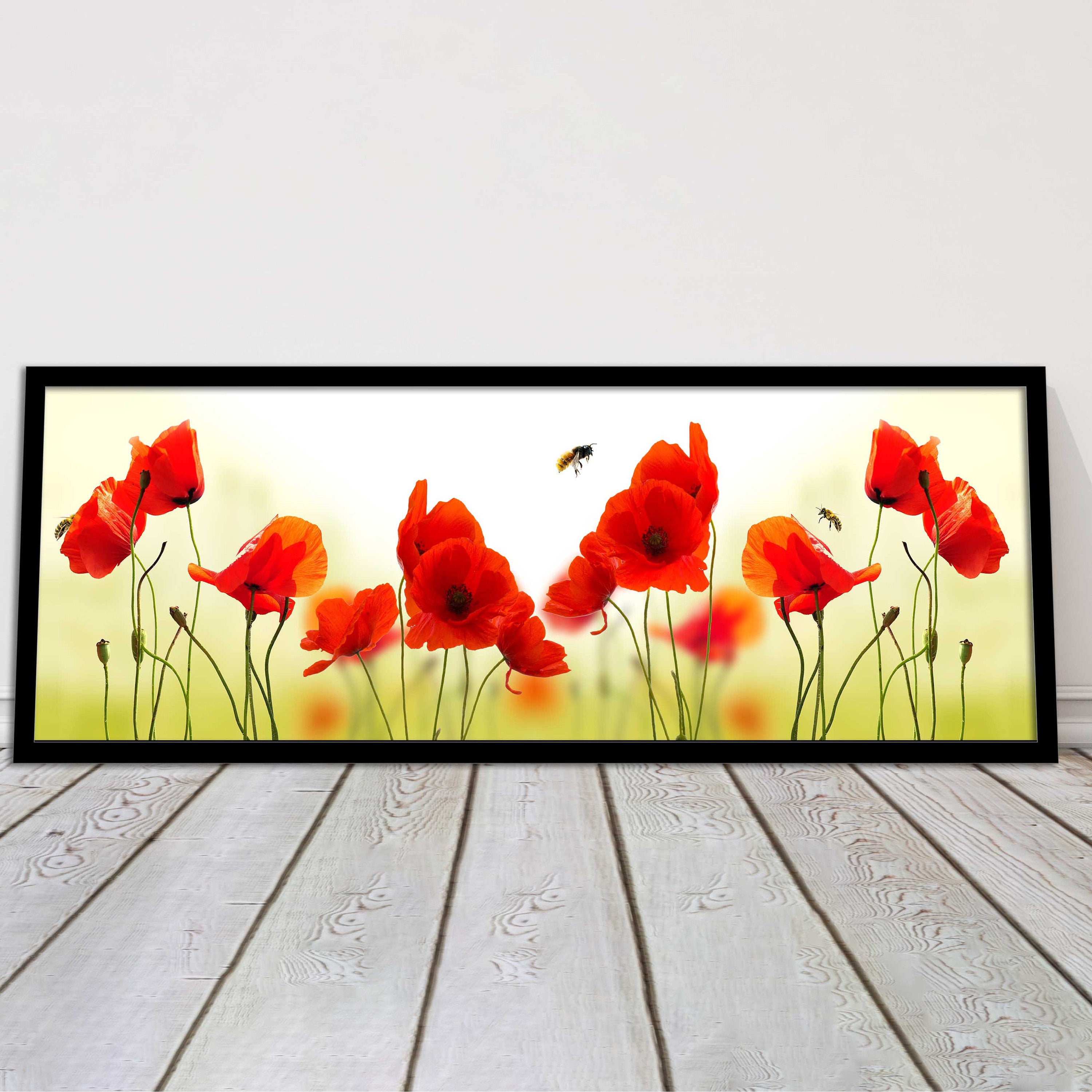 Wild Poppies and Bees. A beautiful bright, panoramic framed picture print. Choice of size, frame colours and borders.