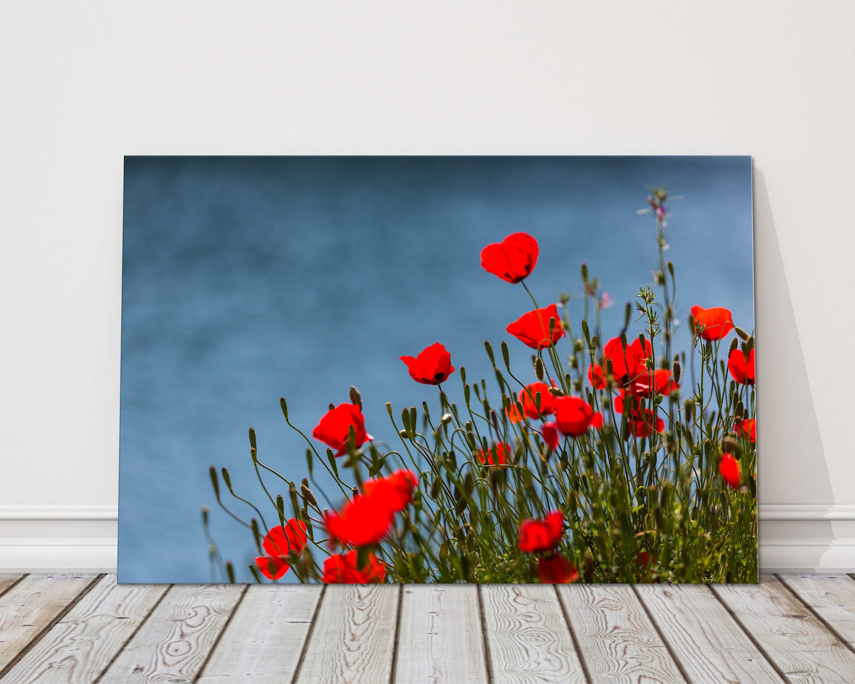 DESCRIPTION Wild Red Poppies in the meadow by the sea. Picture printed and framed as a canvas print. Available in... Read more