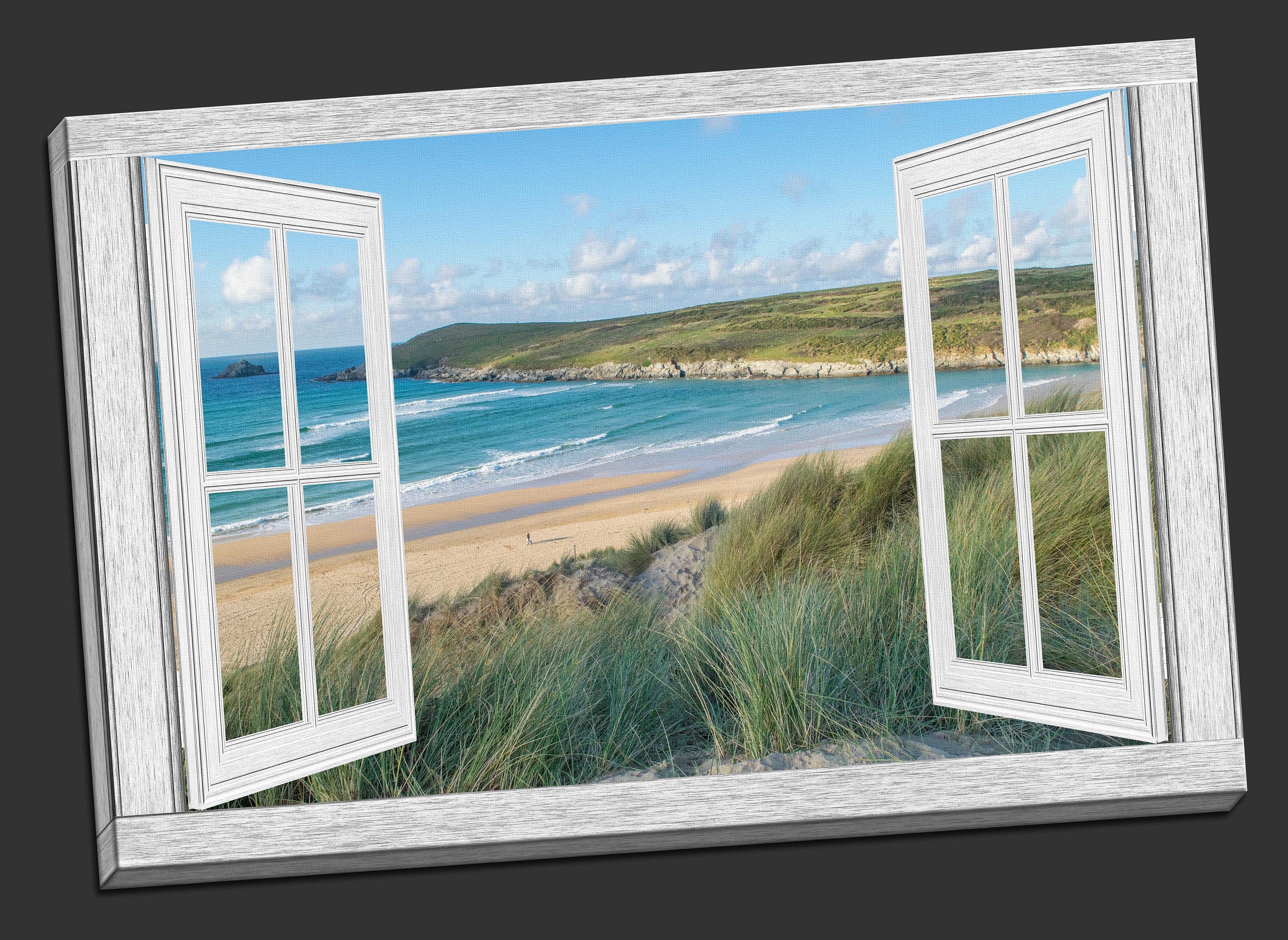 Window frame Canvas picture Print. Crantock beach, Newquay.