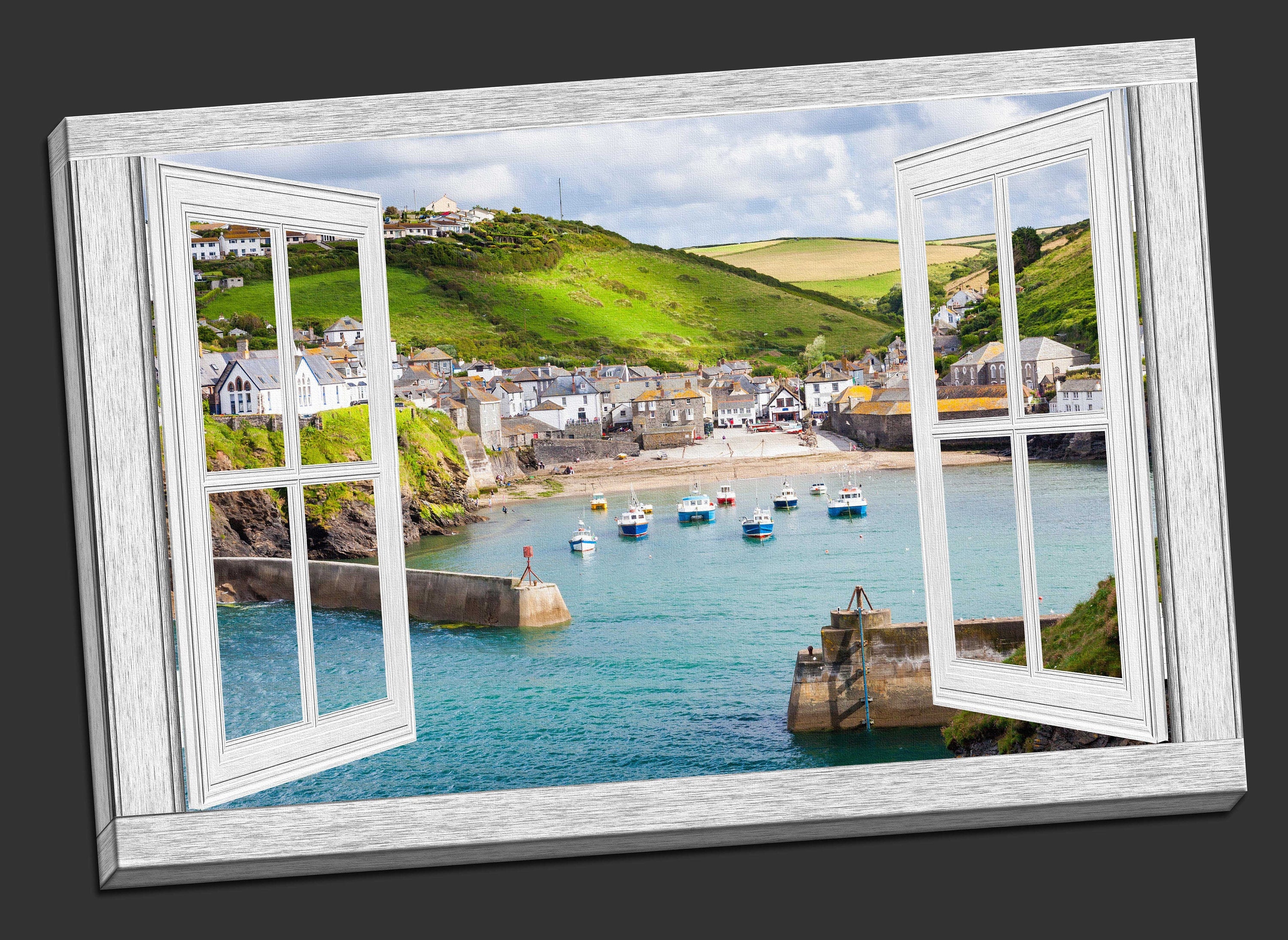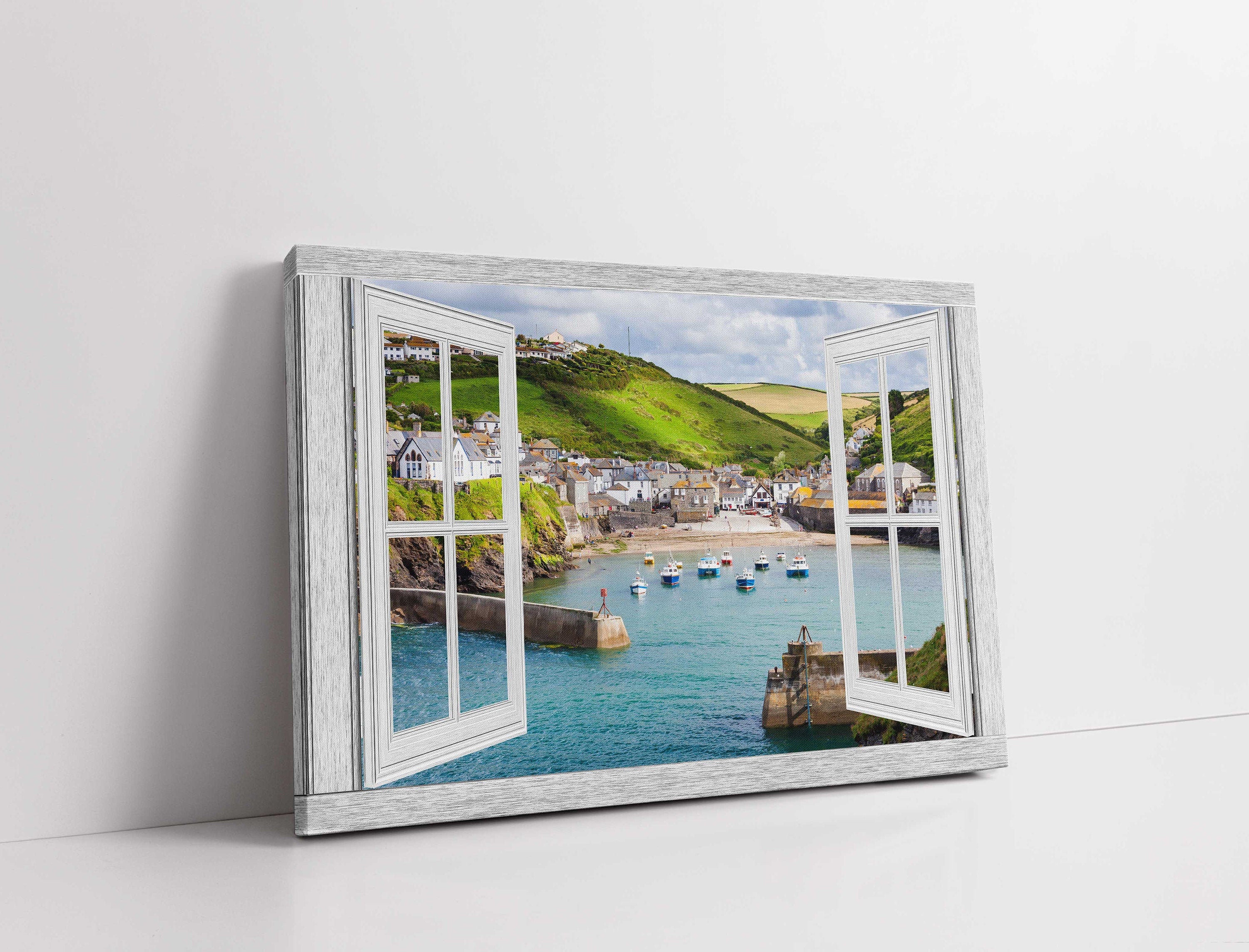 Window frame style canvas picture. Port Isaac, Cornwall, printed and framed as a canvas print. A choice of sizes available... Read more