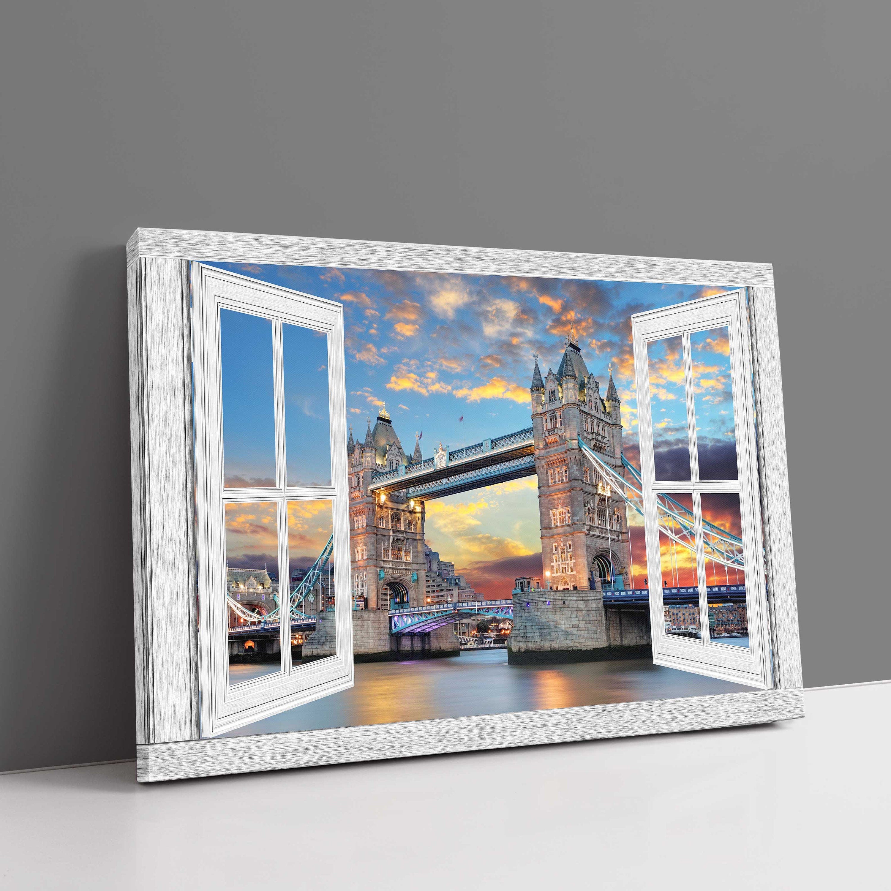 Window frame style Canvas picture. London Bridge at sunset. Famous landmark. Printed and framed as a canvas print. Coastal. Ideal... Read more