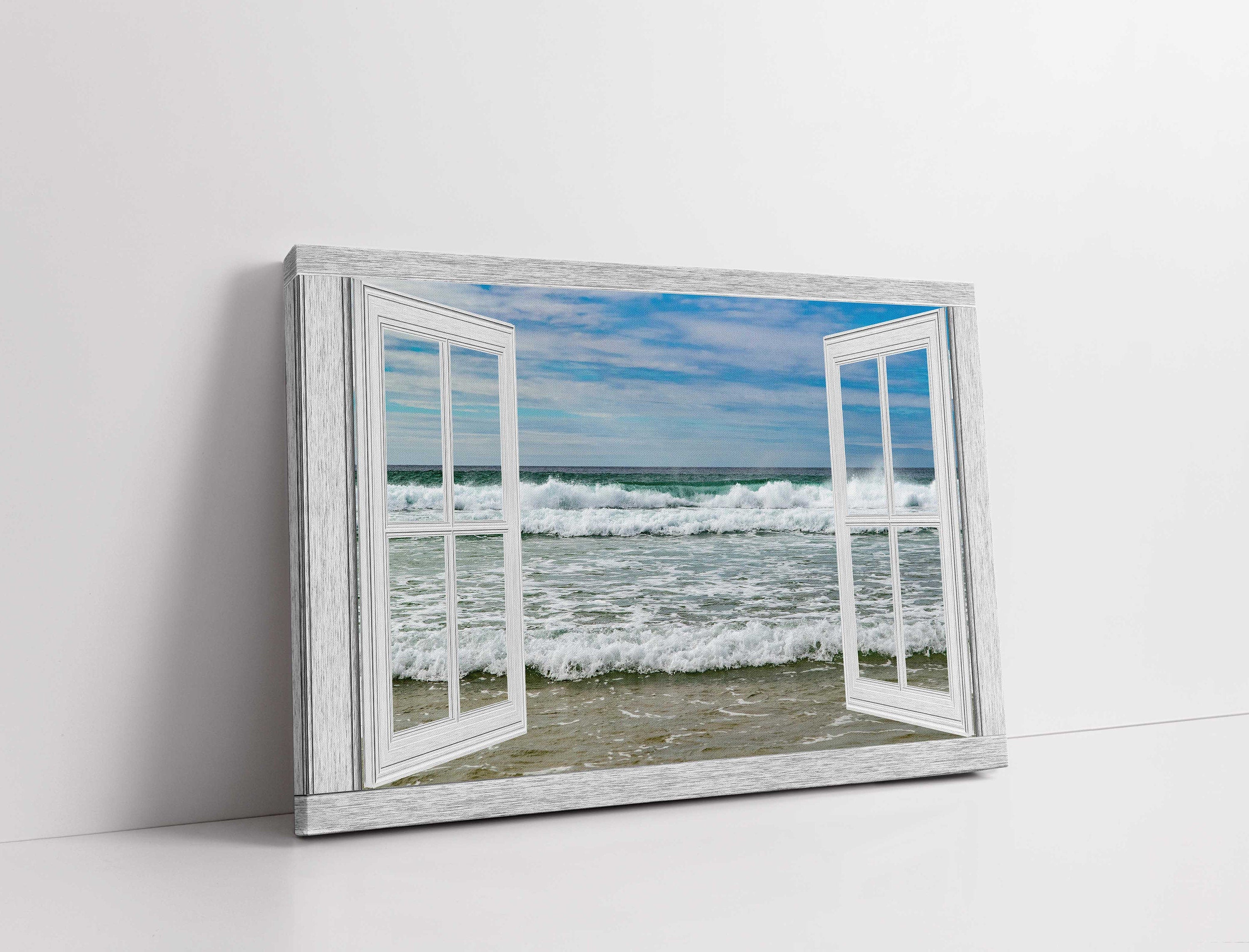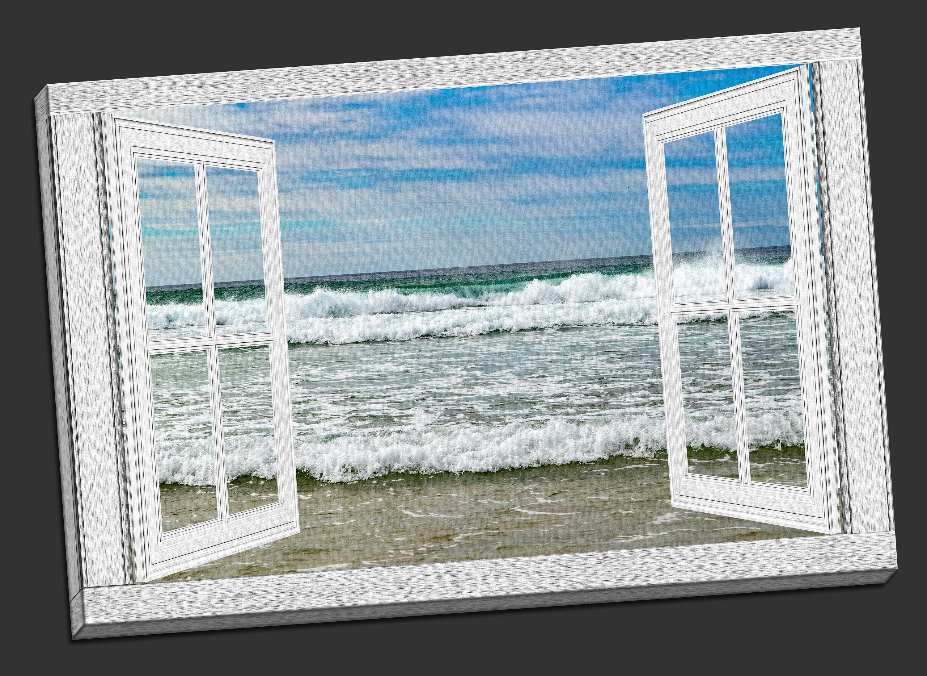 DESCRIPTION Window frame style. Canvas picture. Rolling waves, North Cornwall beach, printed and framed as a canvas print. Landscape view.... Read more