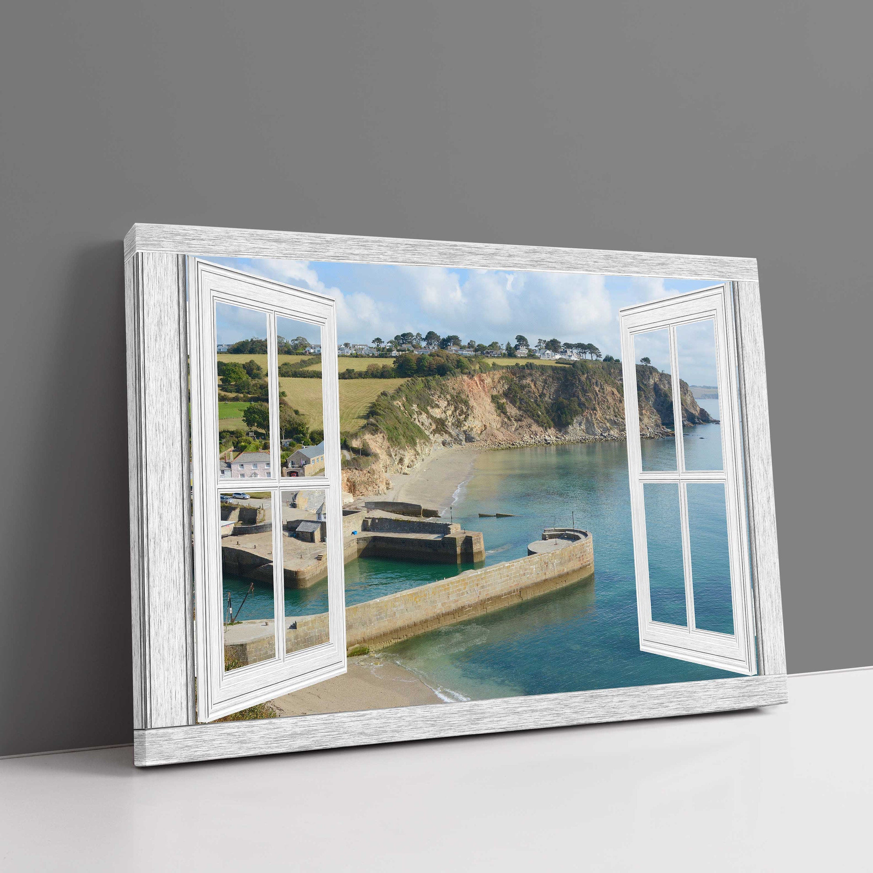 window frame view Charlestown harbour, Cornwall canvas picture print