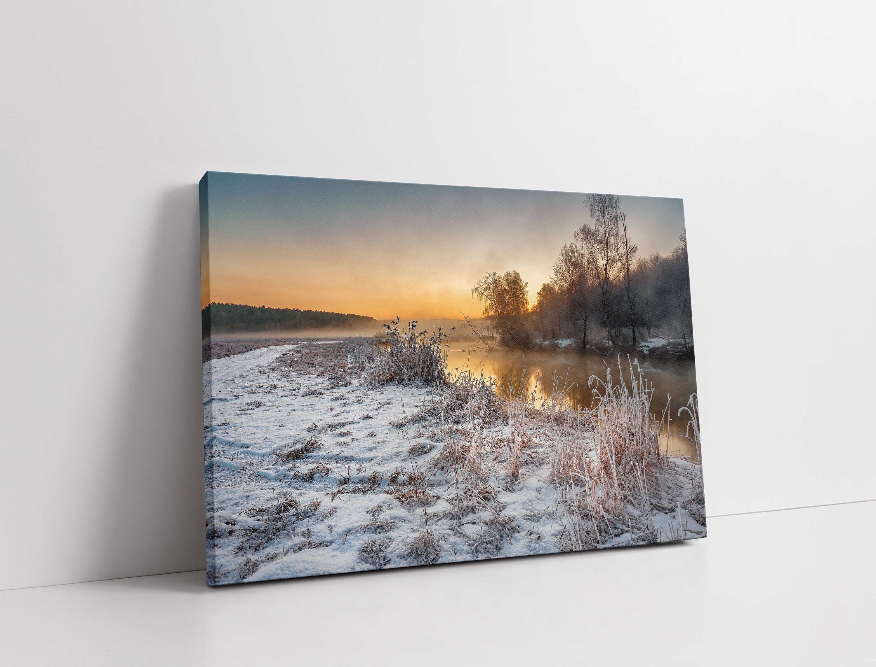 DESCRIPTION Winter scene by the river. Beautiful scenic image, Printed and framed as a canvas picture print. Beautiful nature image.... Read more
