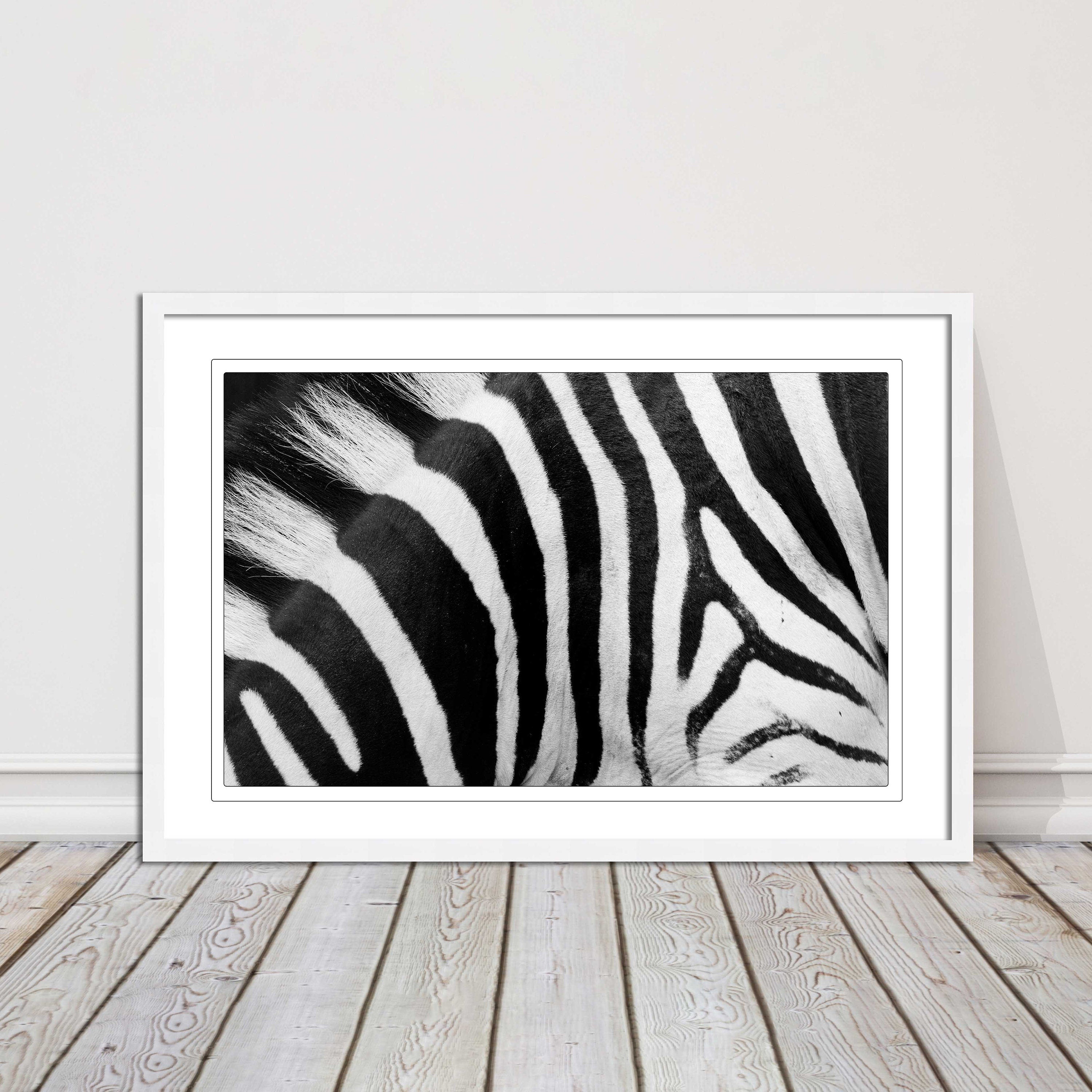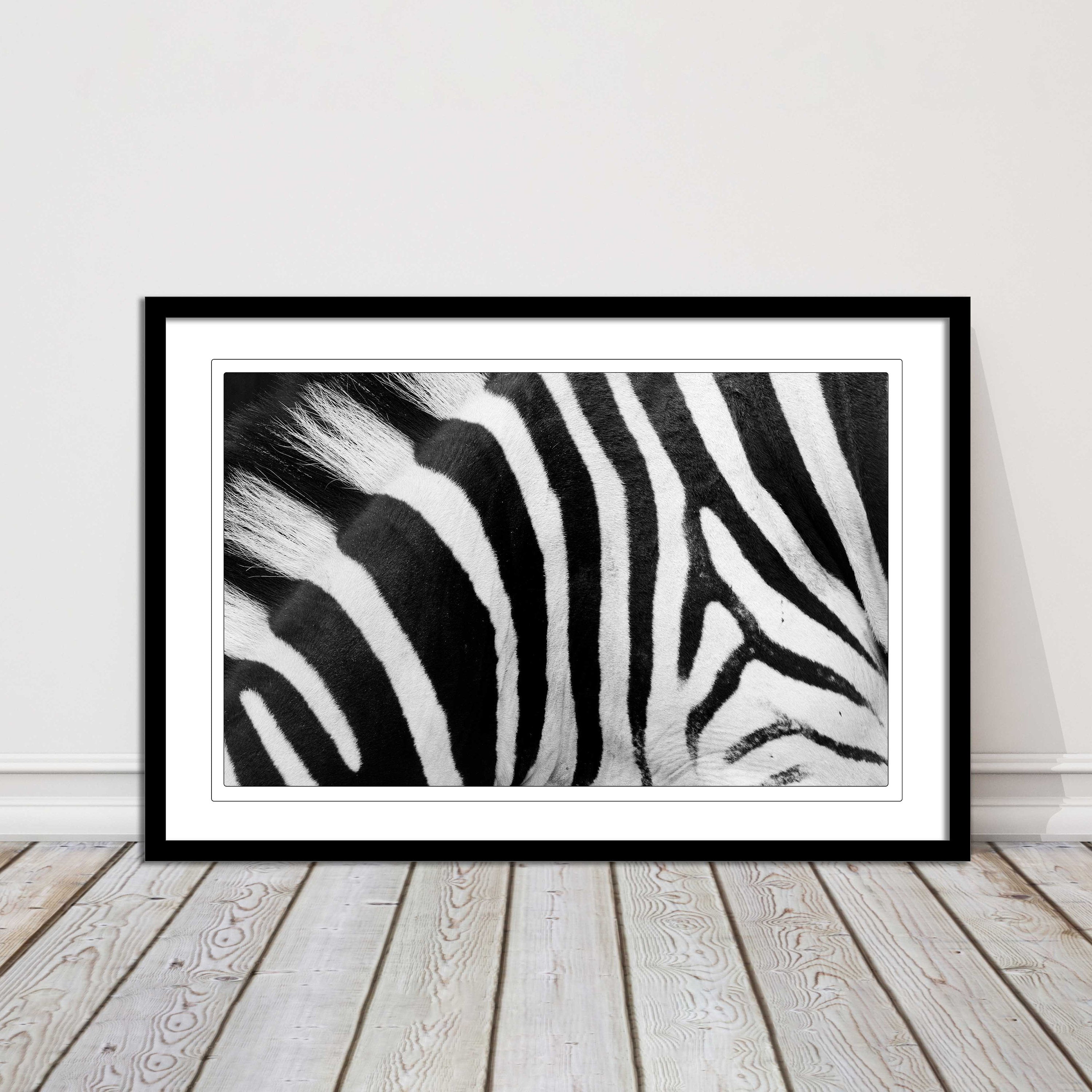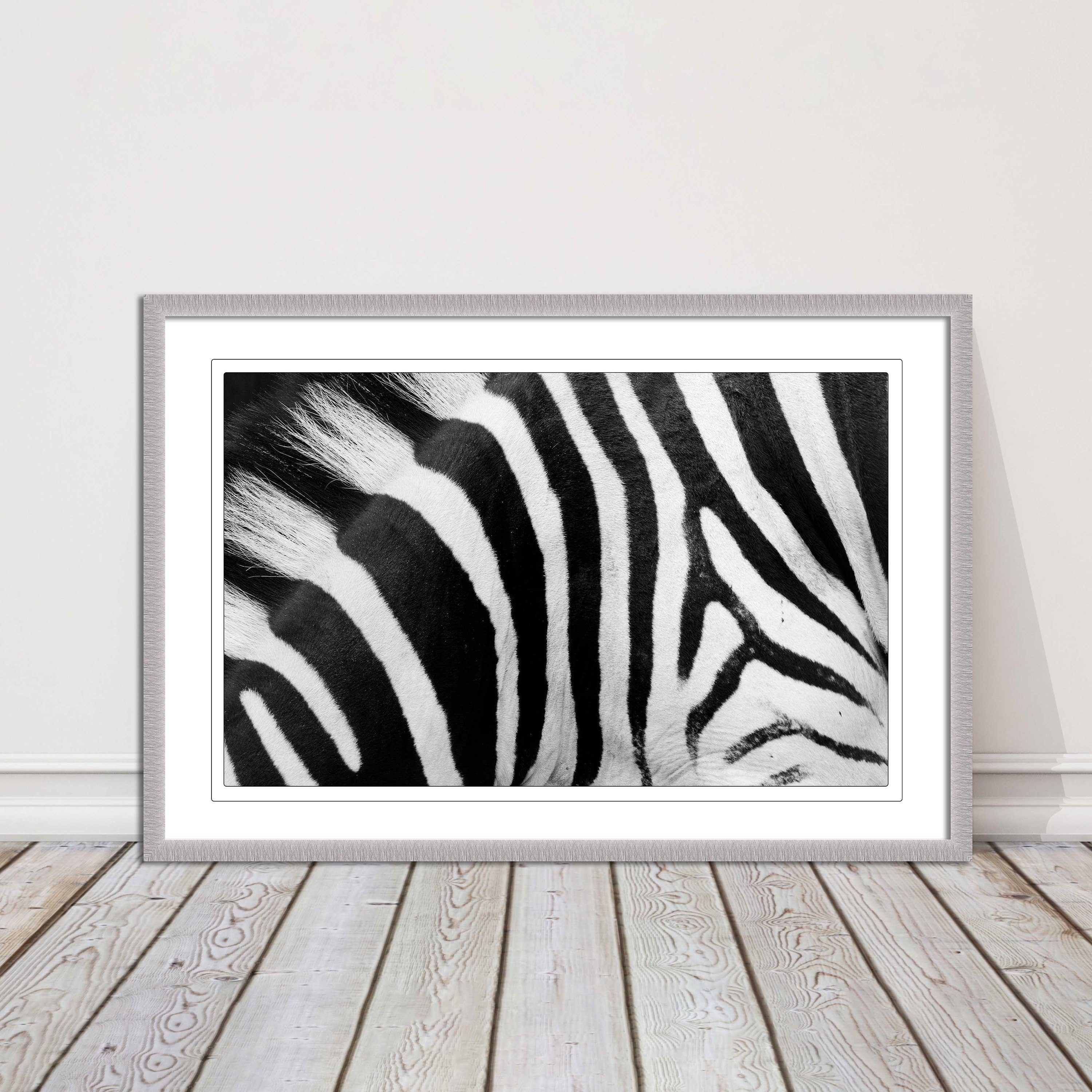 Zebra close up. Wildlife image. A choice of frame styles, colour and borders. Black and white print. Gift/birthday/present.